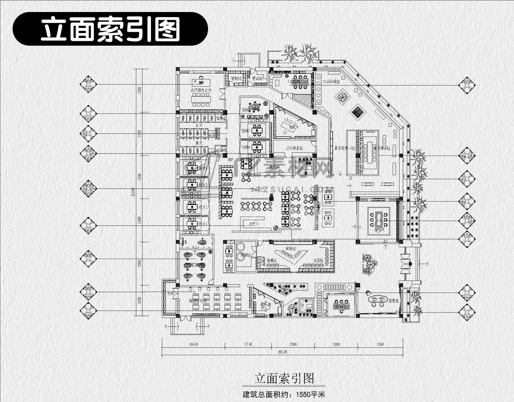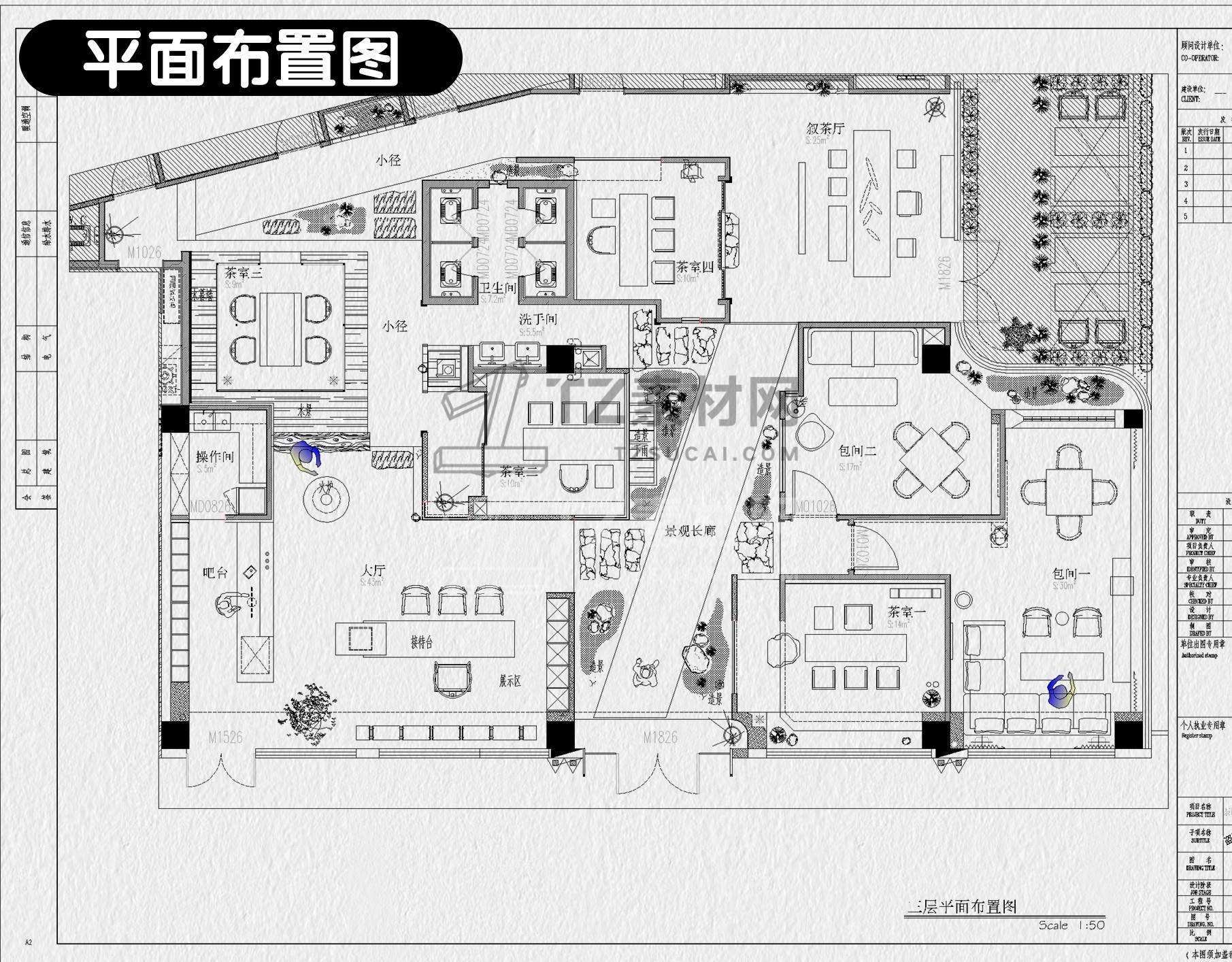 茶楼CAD施工图 茶室CAD 新中式茶馆CAD 茶楼效果图 茶楼施工图CAD