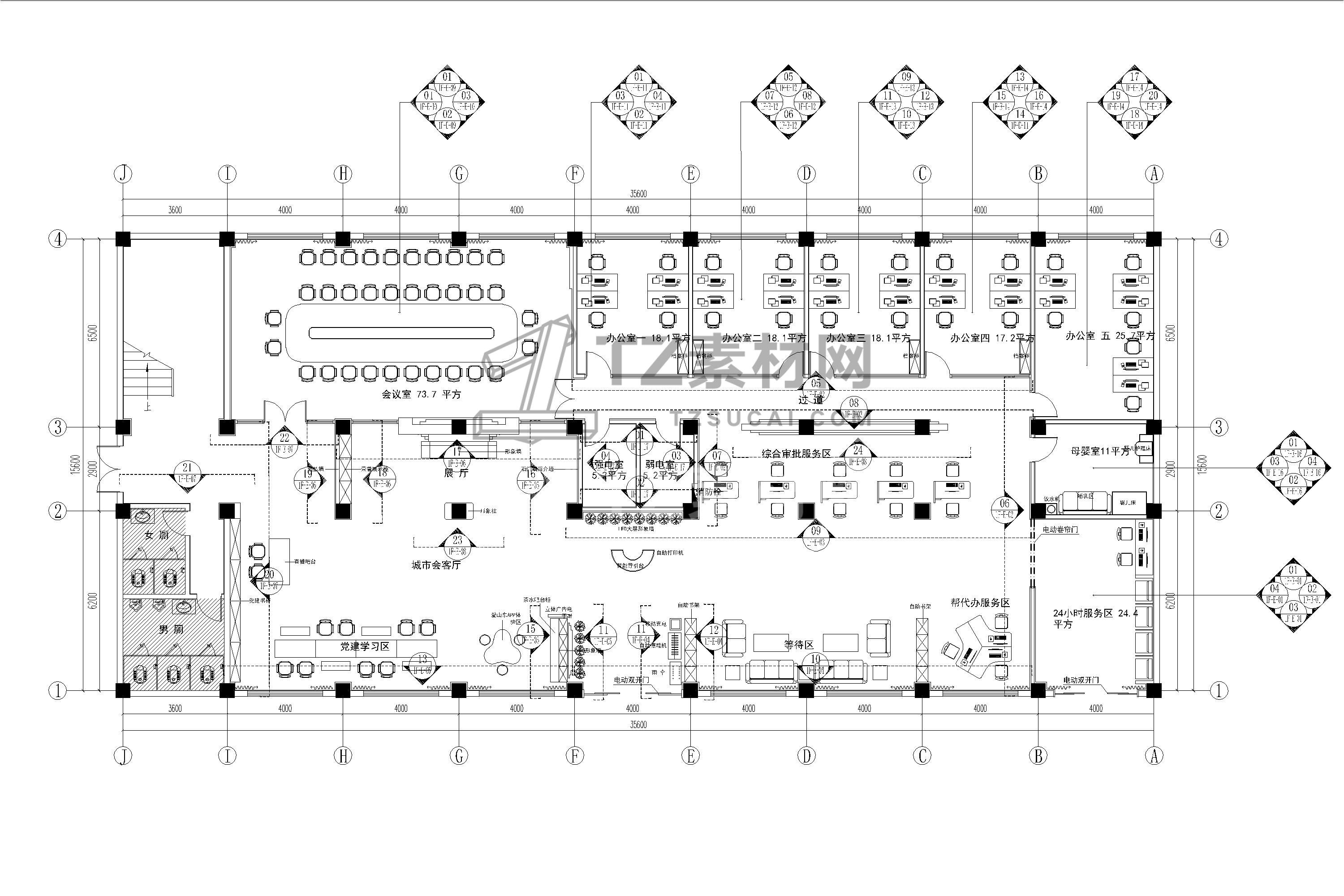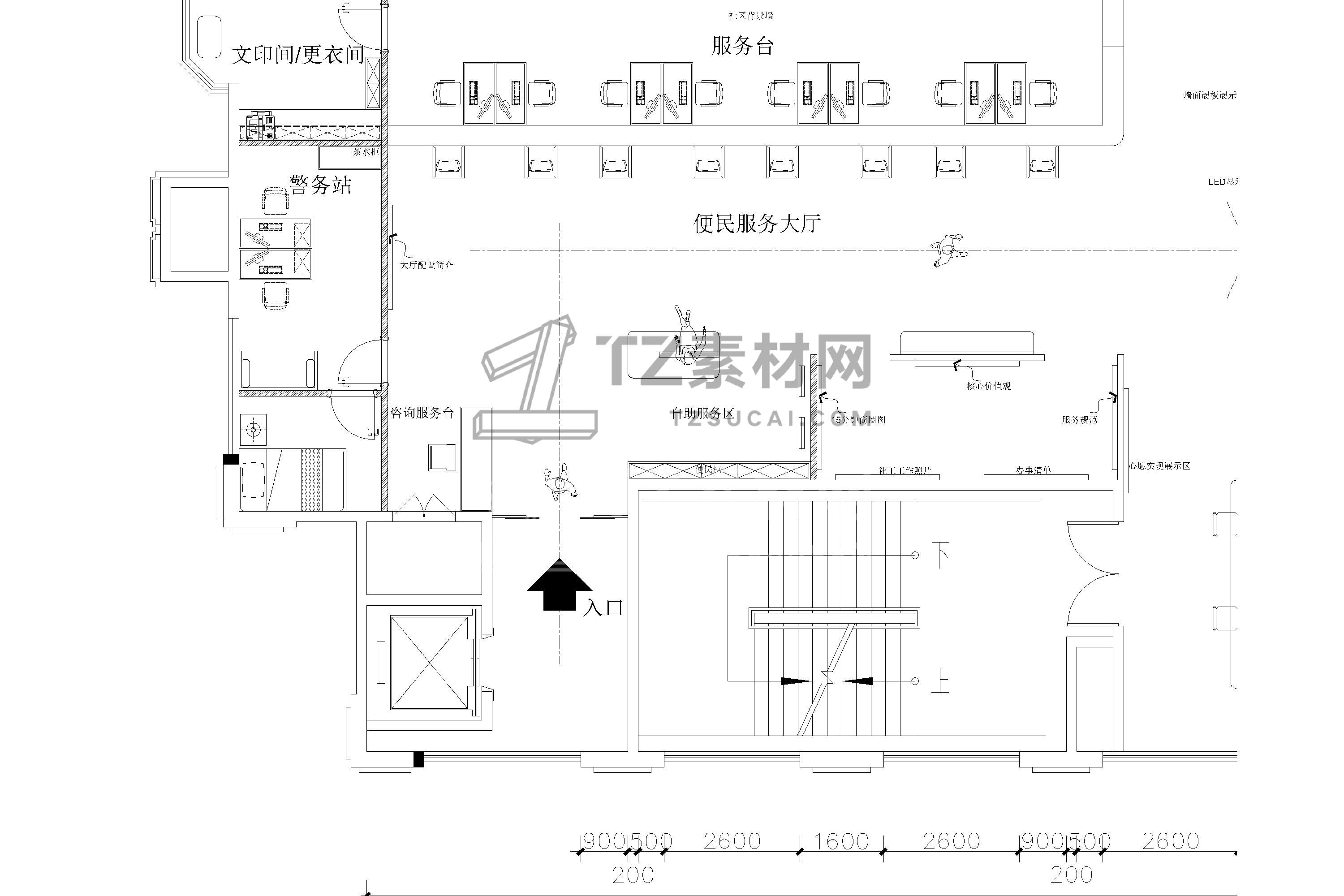 社区党群服务中心CAD施工图 社区便民中心CAD 社区便民大厅CAD