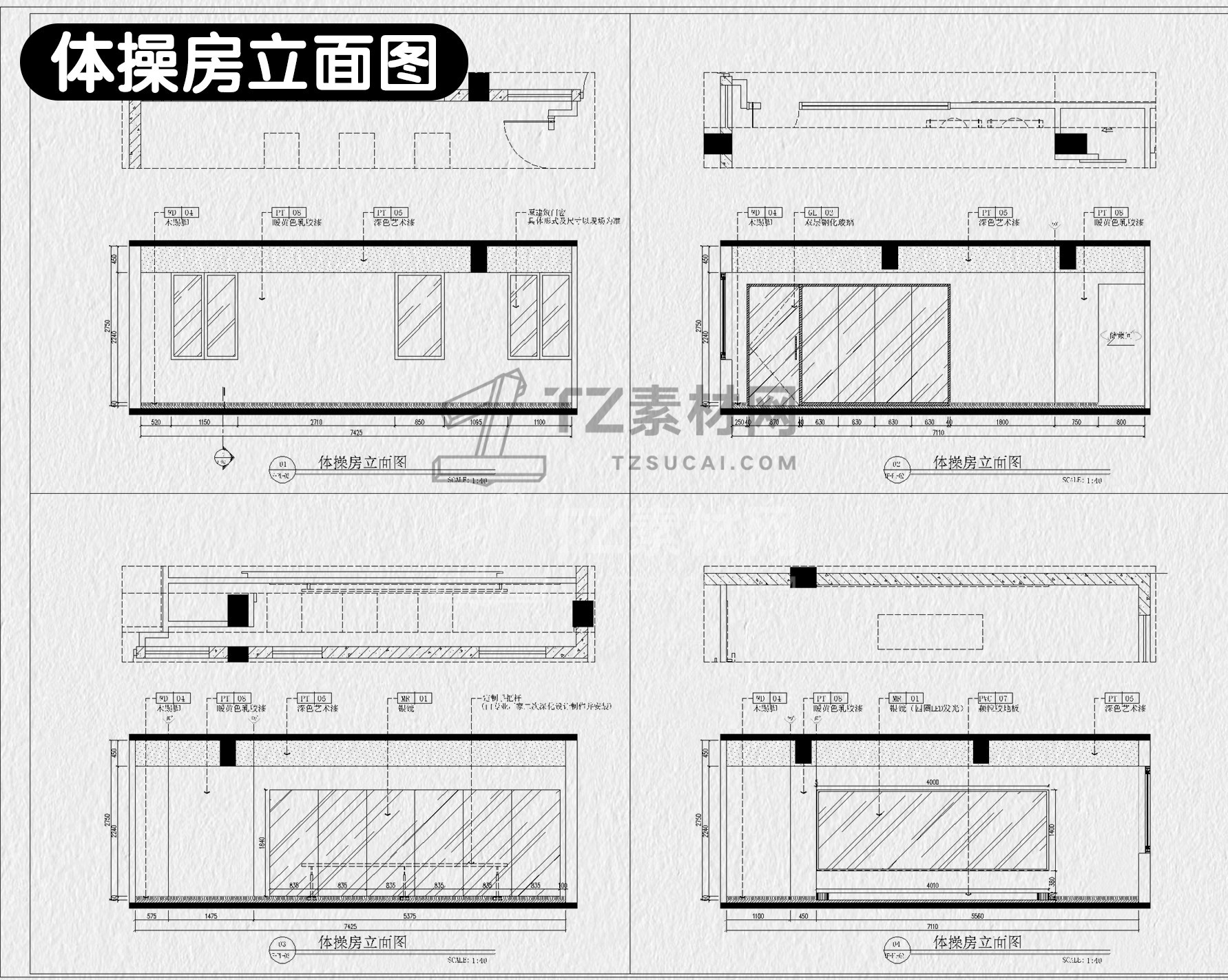 健身房CAD施工图 瑜伽室CAD 健身器材CAD 健身器械CAD 健身房效果图
