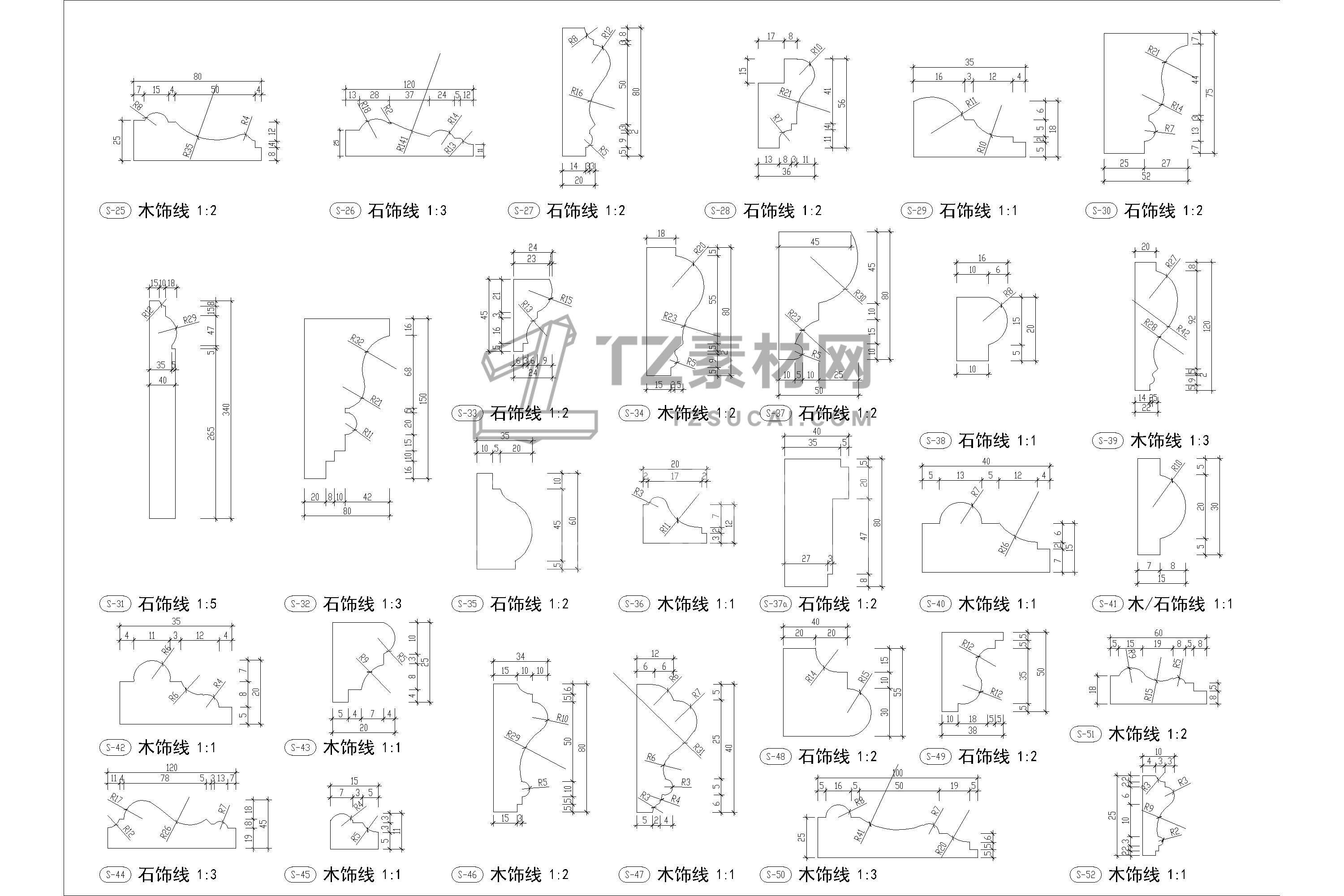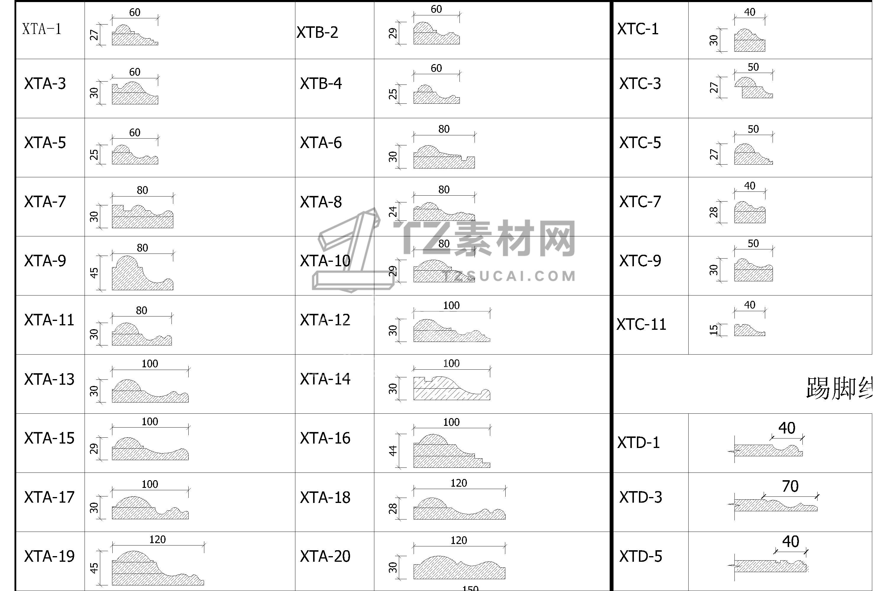 角线CAD 线条CAD 石膏线CAD 踢脚线CAD 装饰线CAD 门套线CAD