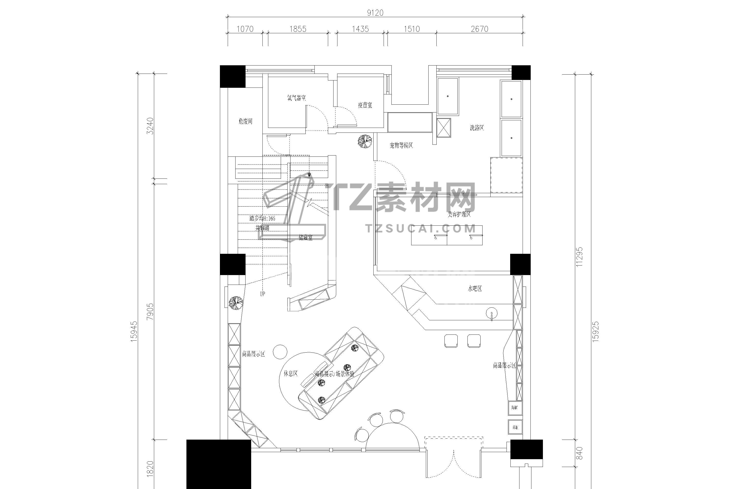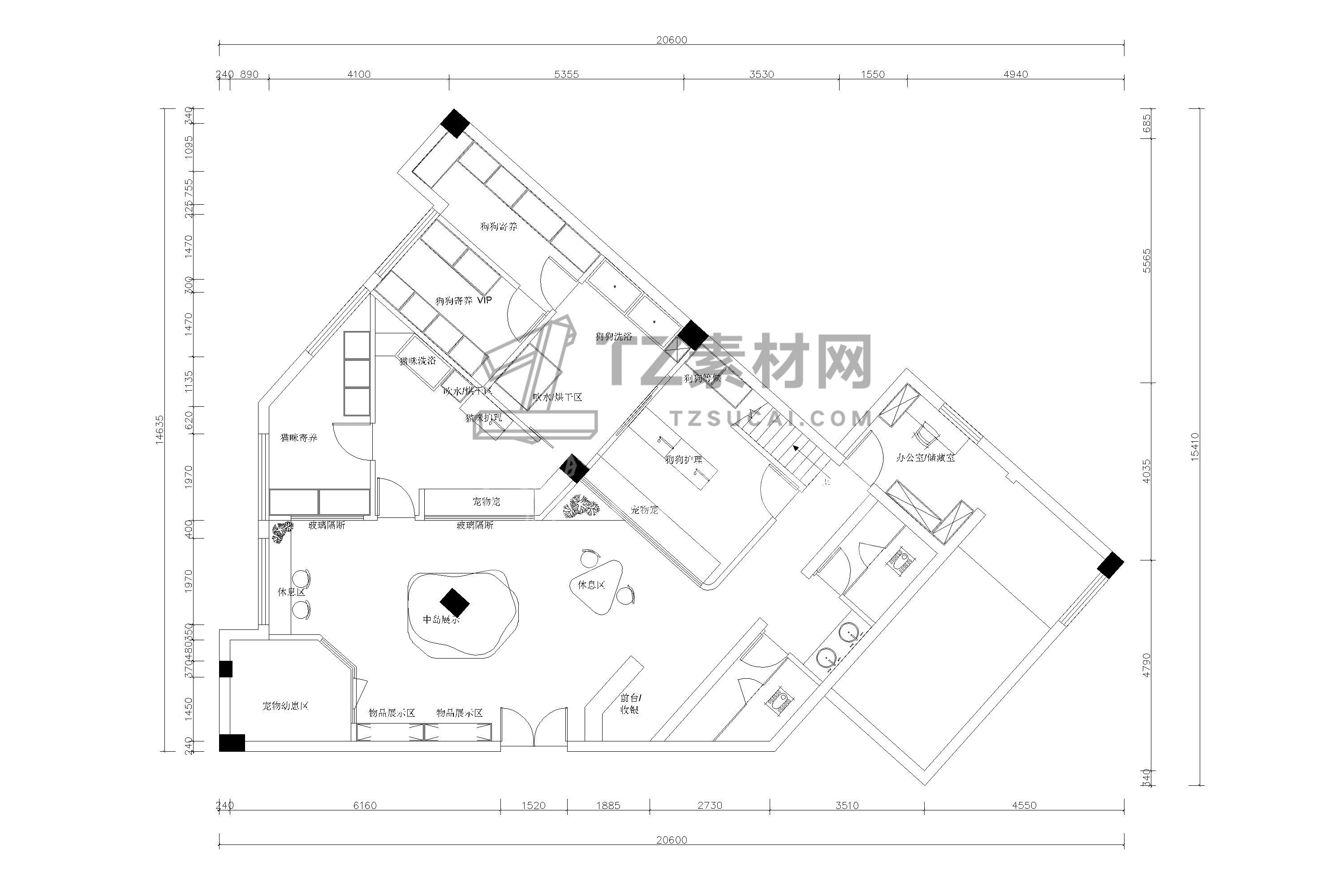 宠物店CAD平面布置图 猫咖CAD 狗屋CAD 猫舍CAD 猫狗店CAD