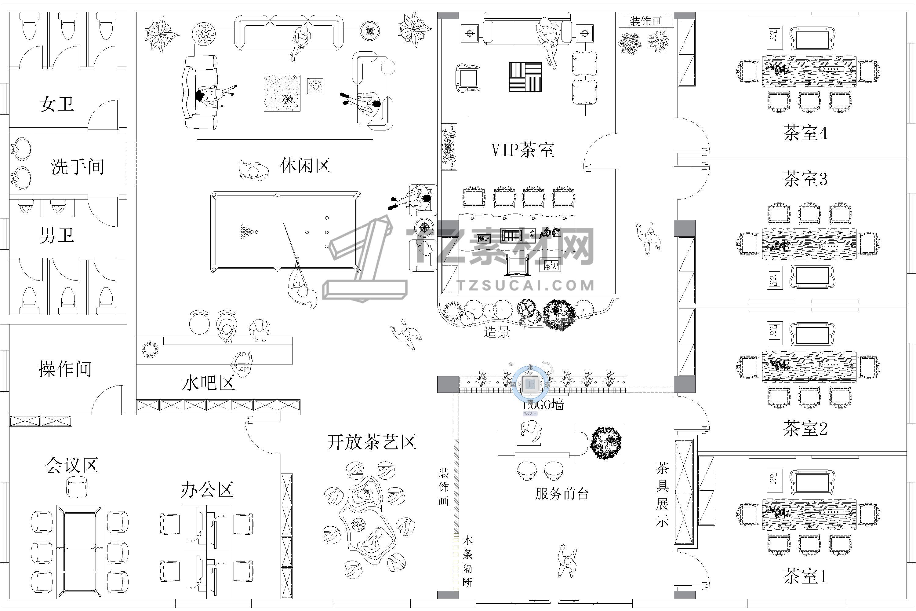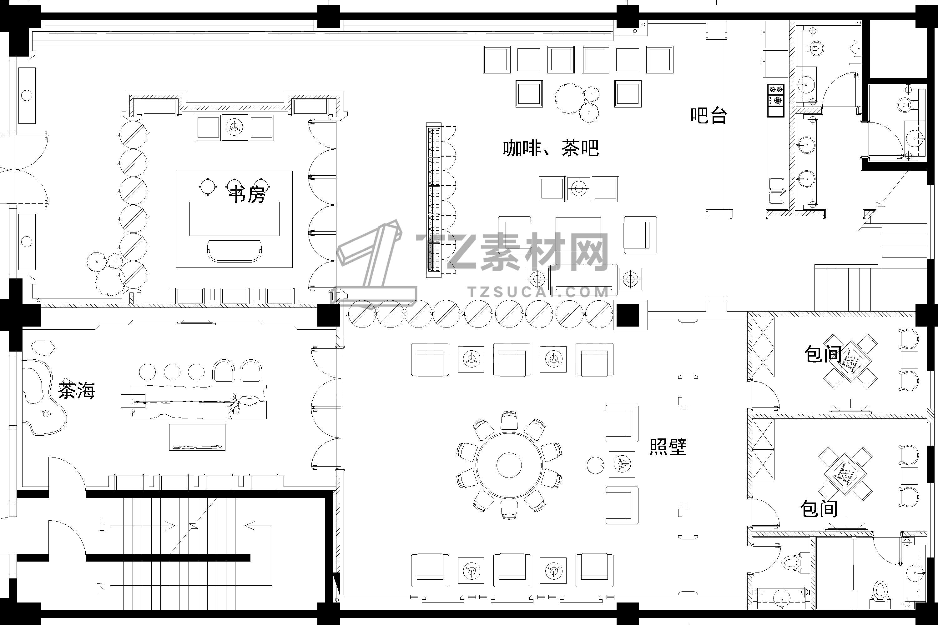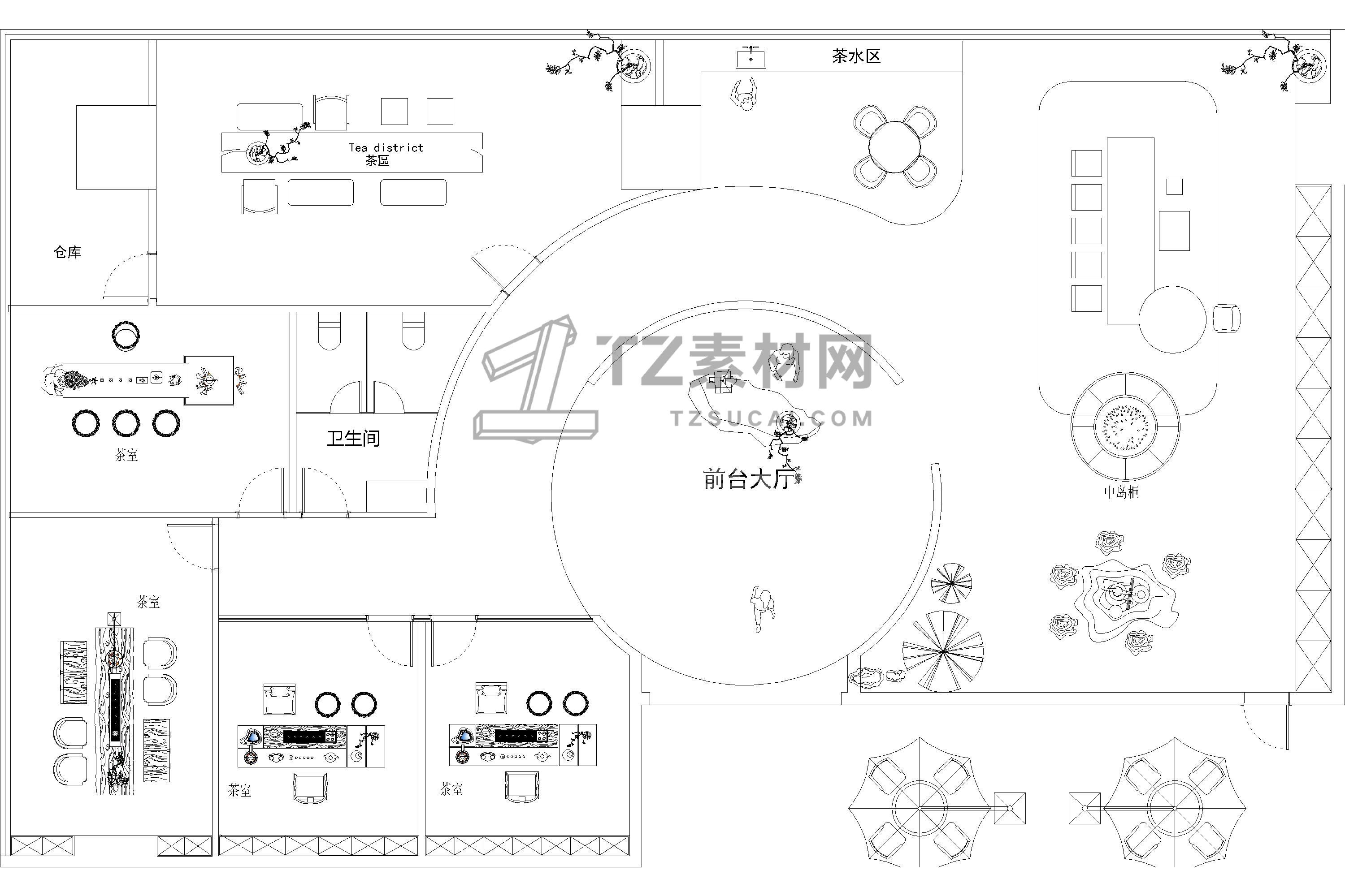 茶室CAD平面布置图 茶楼CAD 茶馆CAD 茶社CAD