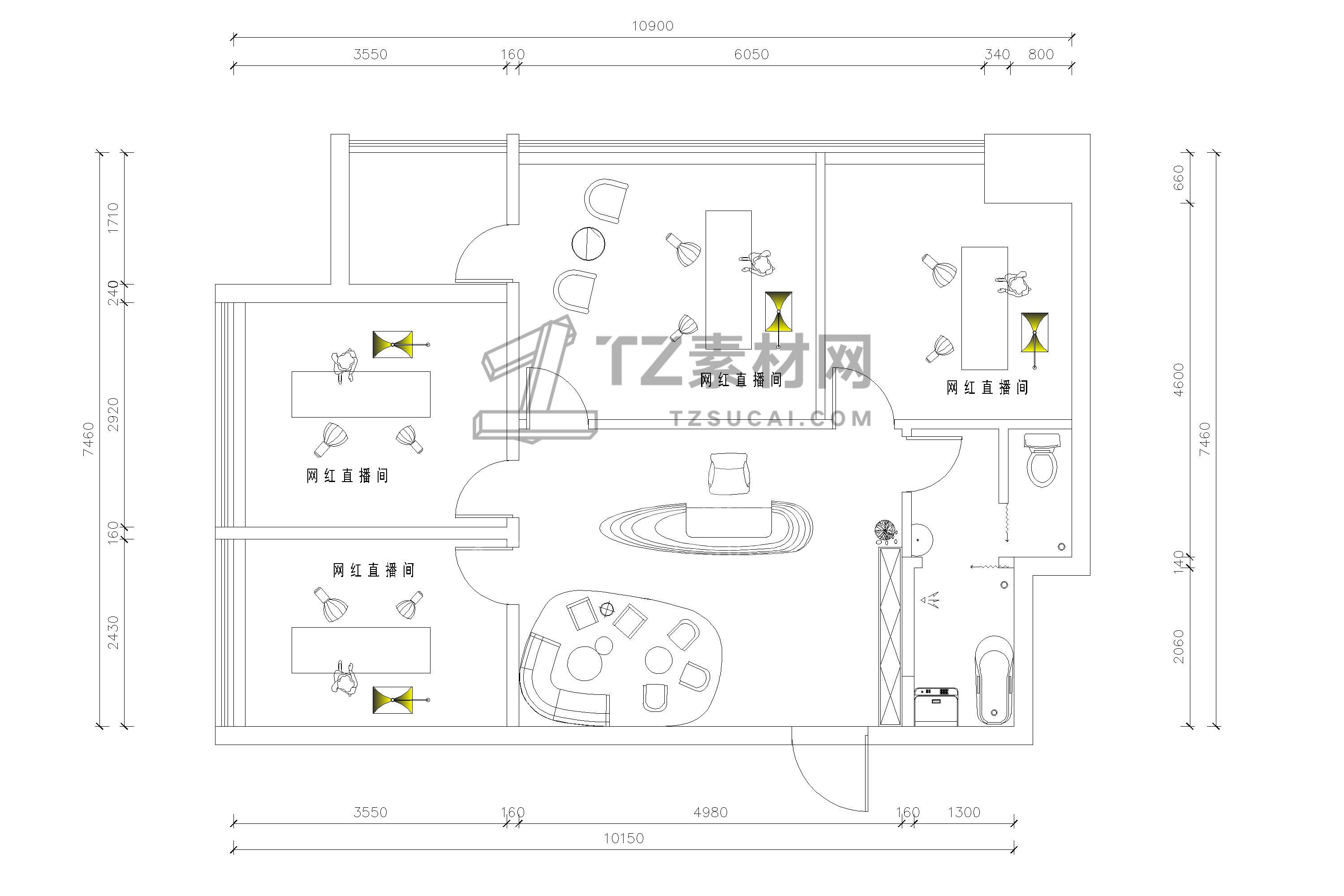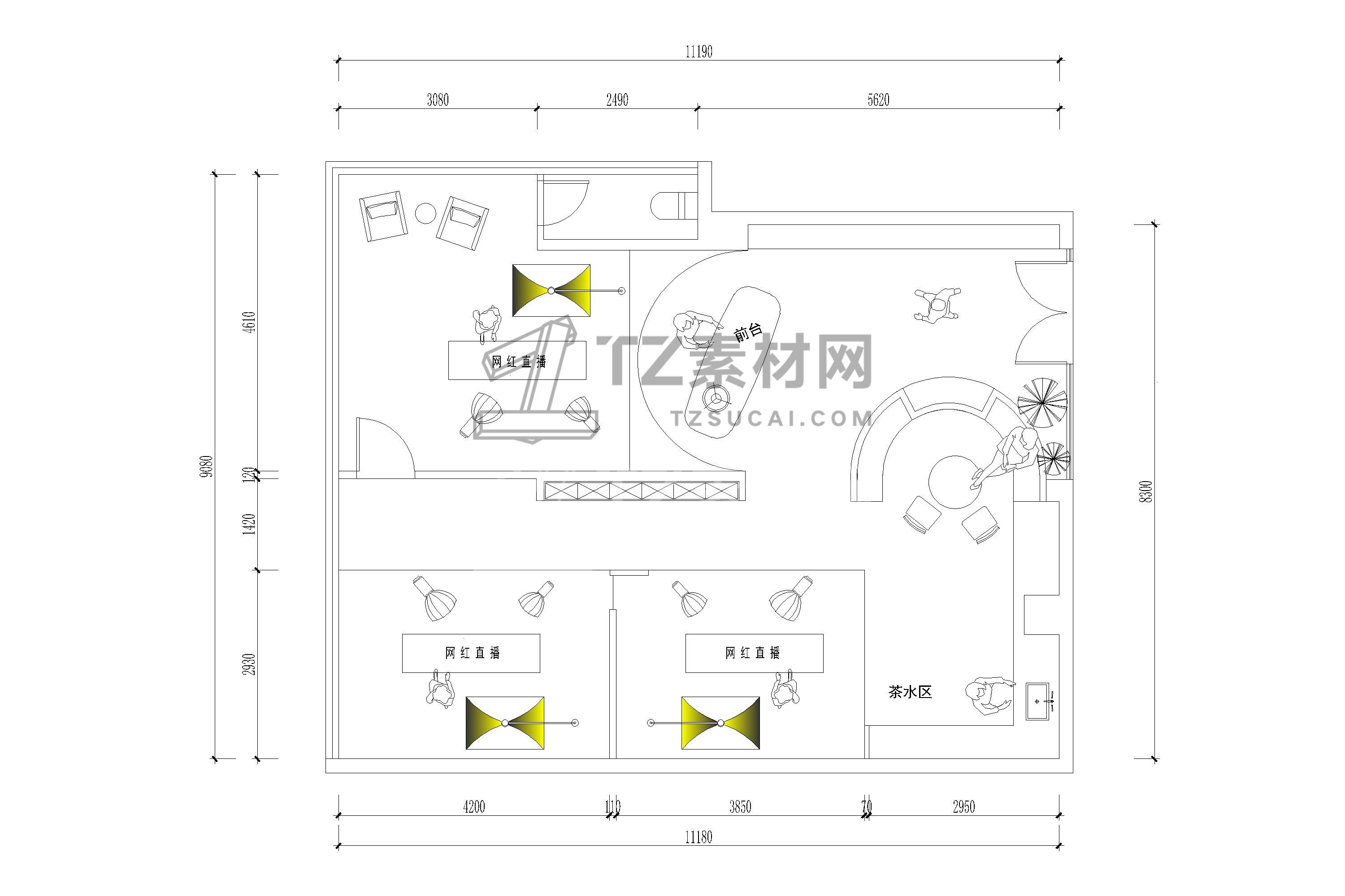网红直播间CAD平面布置图 传媒公司CAD 网络传媒CAD 直播CAD 直播公司CAD 演播室CAD
