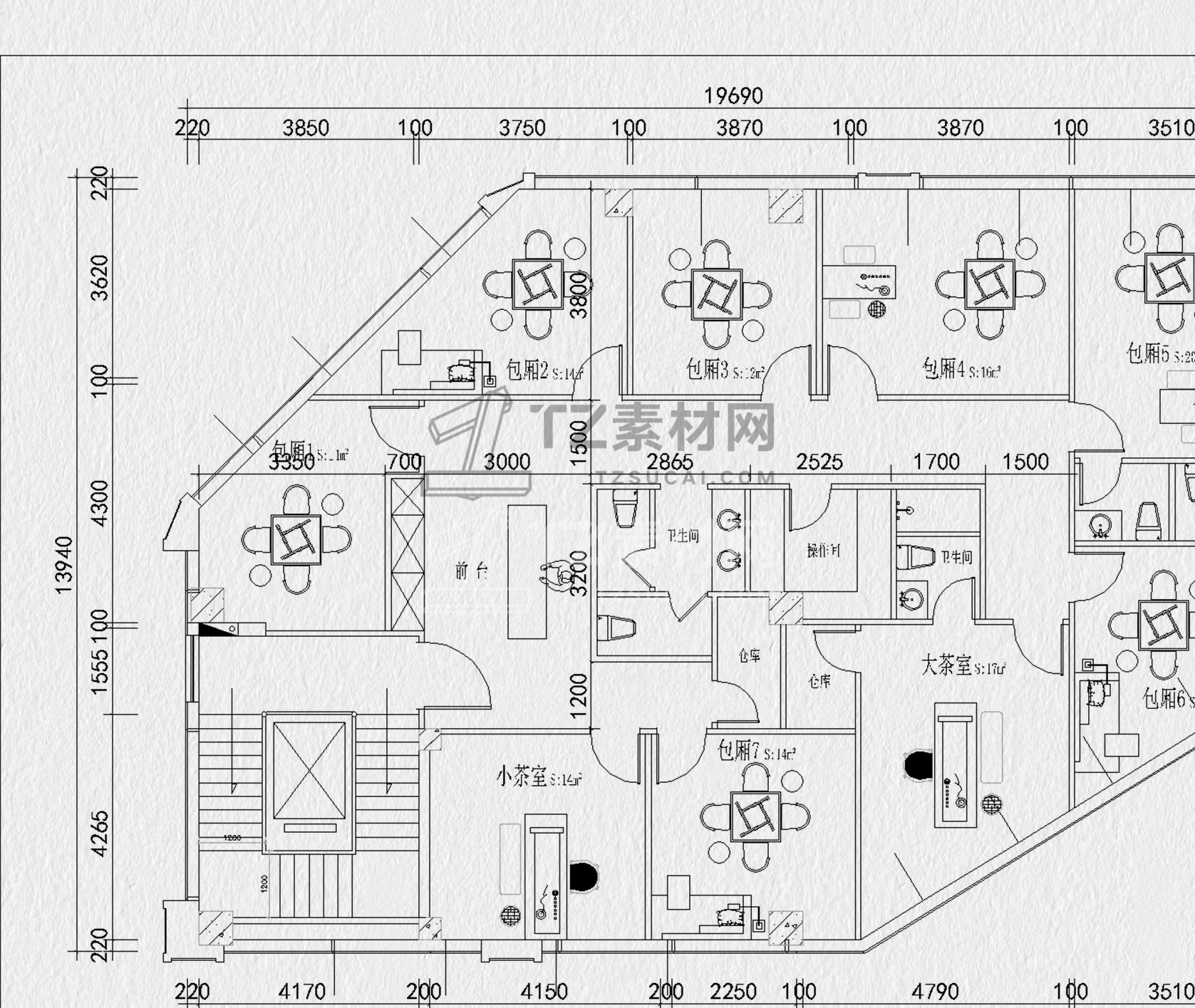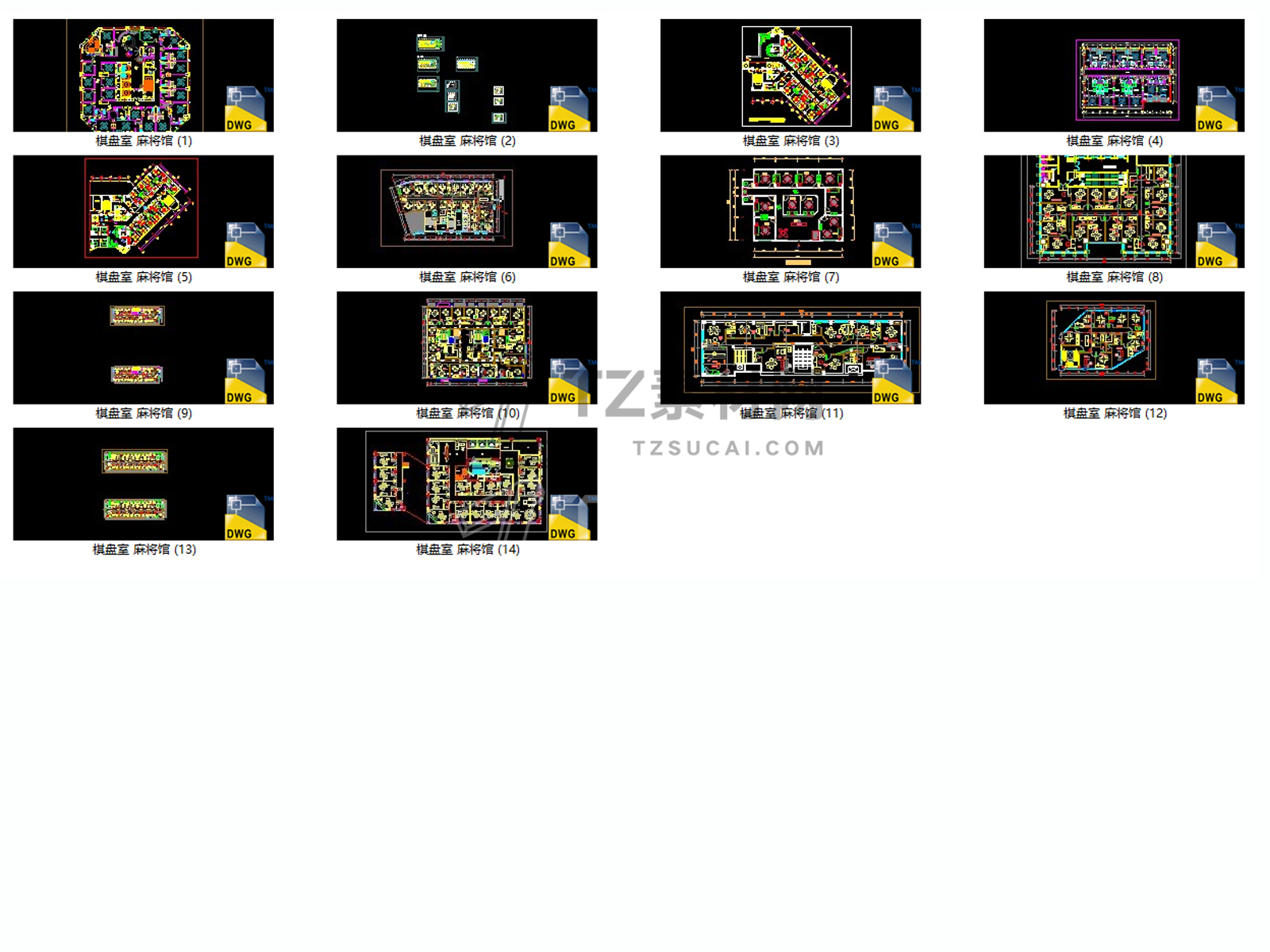 棋牌室CAD平面布置图 麻将室CAD 麻将馆CAD 娱乐会所CAD