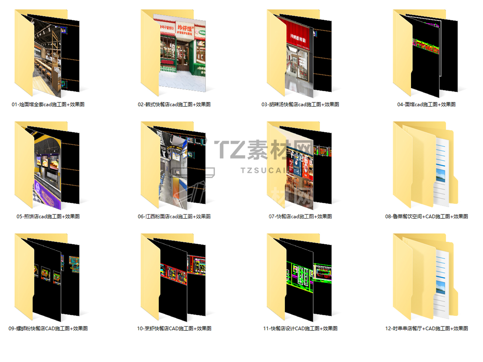快餐店CAD施工图 快餐厅CAD 餐饮空间CAD 餐饮CAD 快餐店效果图 面馆CAD