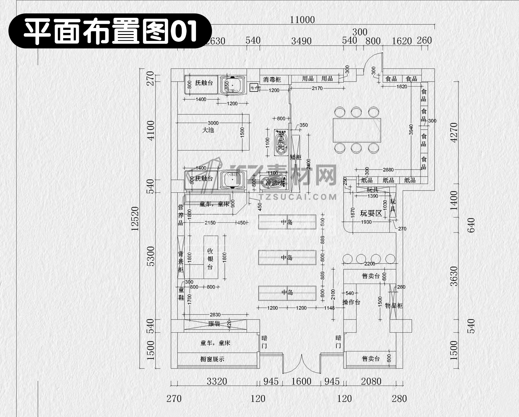 母婴店CAD施工图 婴儿生活馆CAD 母婴店效果图