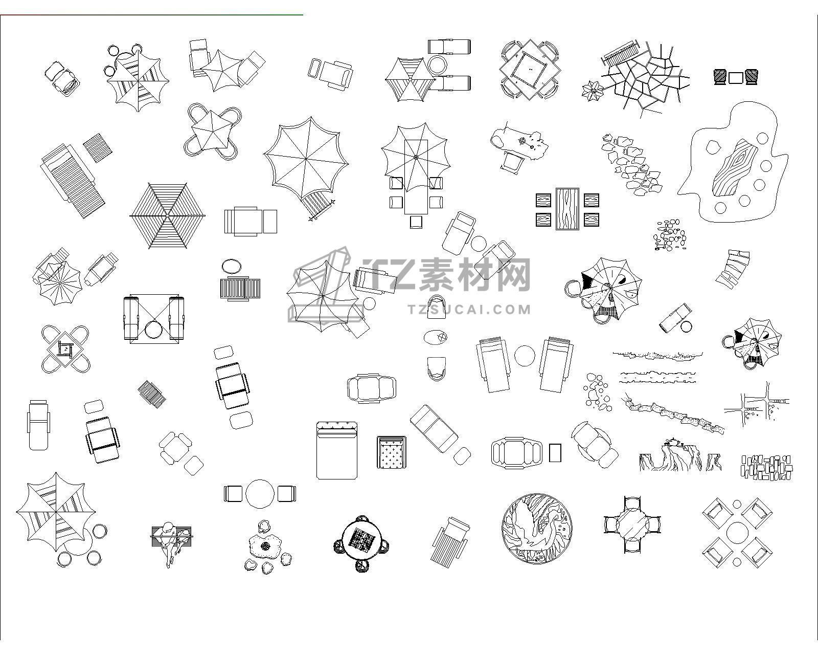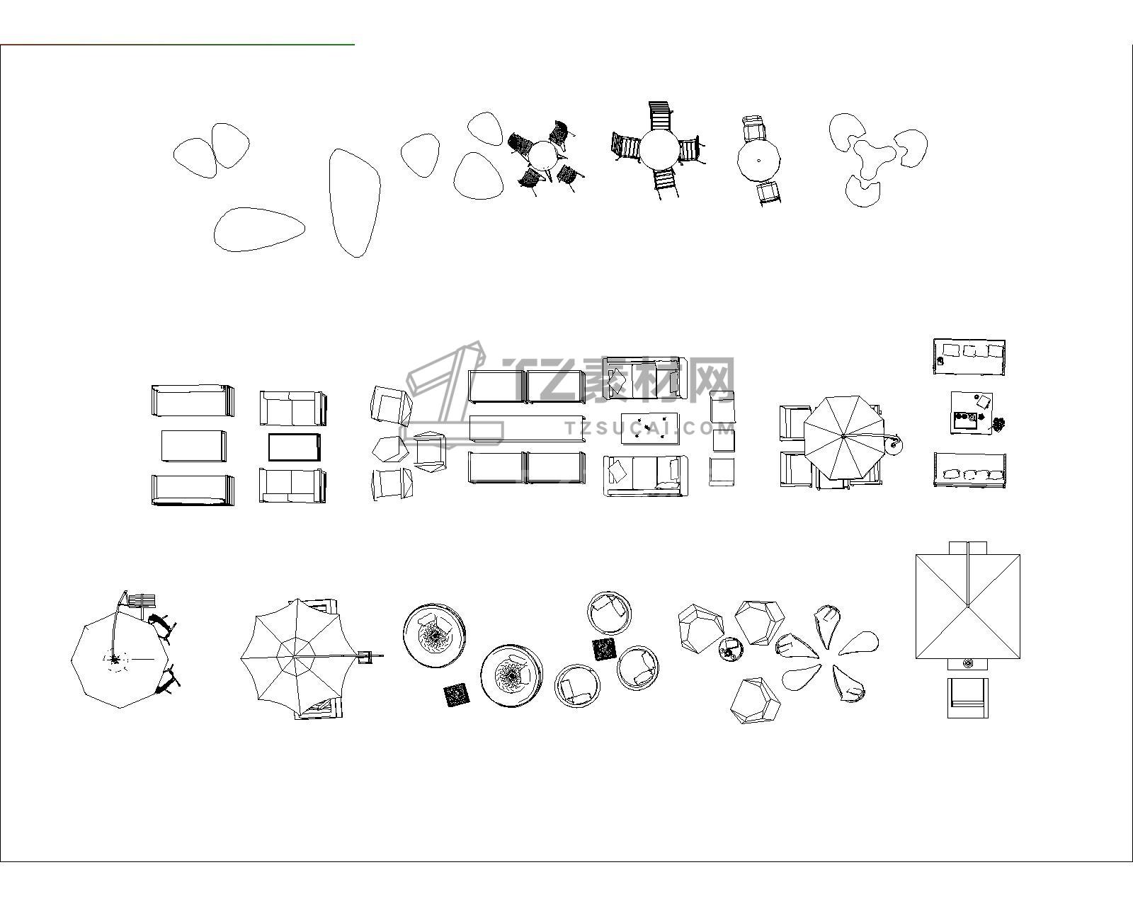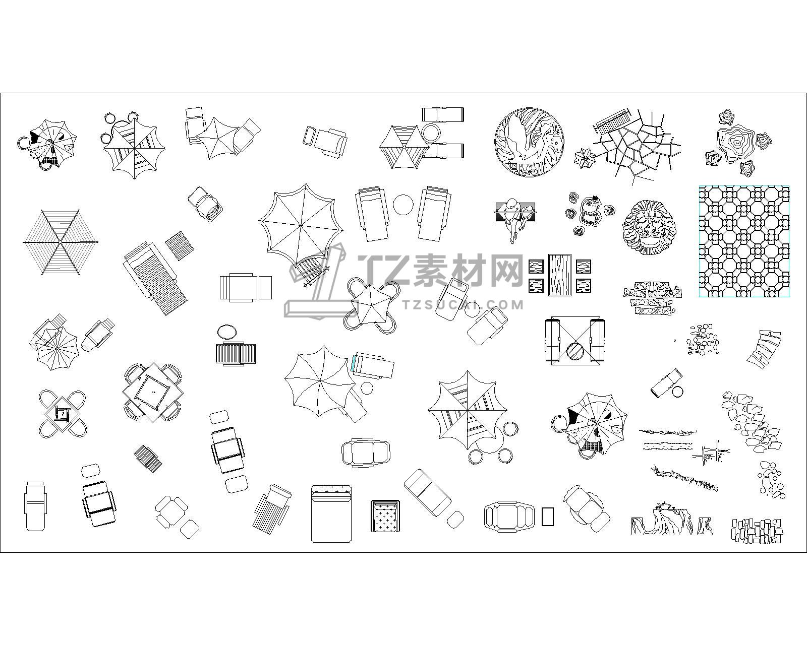 户外桌椅CAD图库 座椅坐凳CAD 户外家具CAD 太阳伞CAD 景观小品CAD