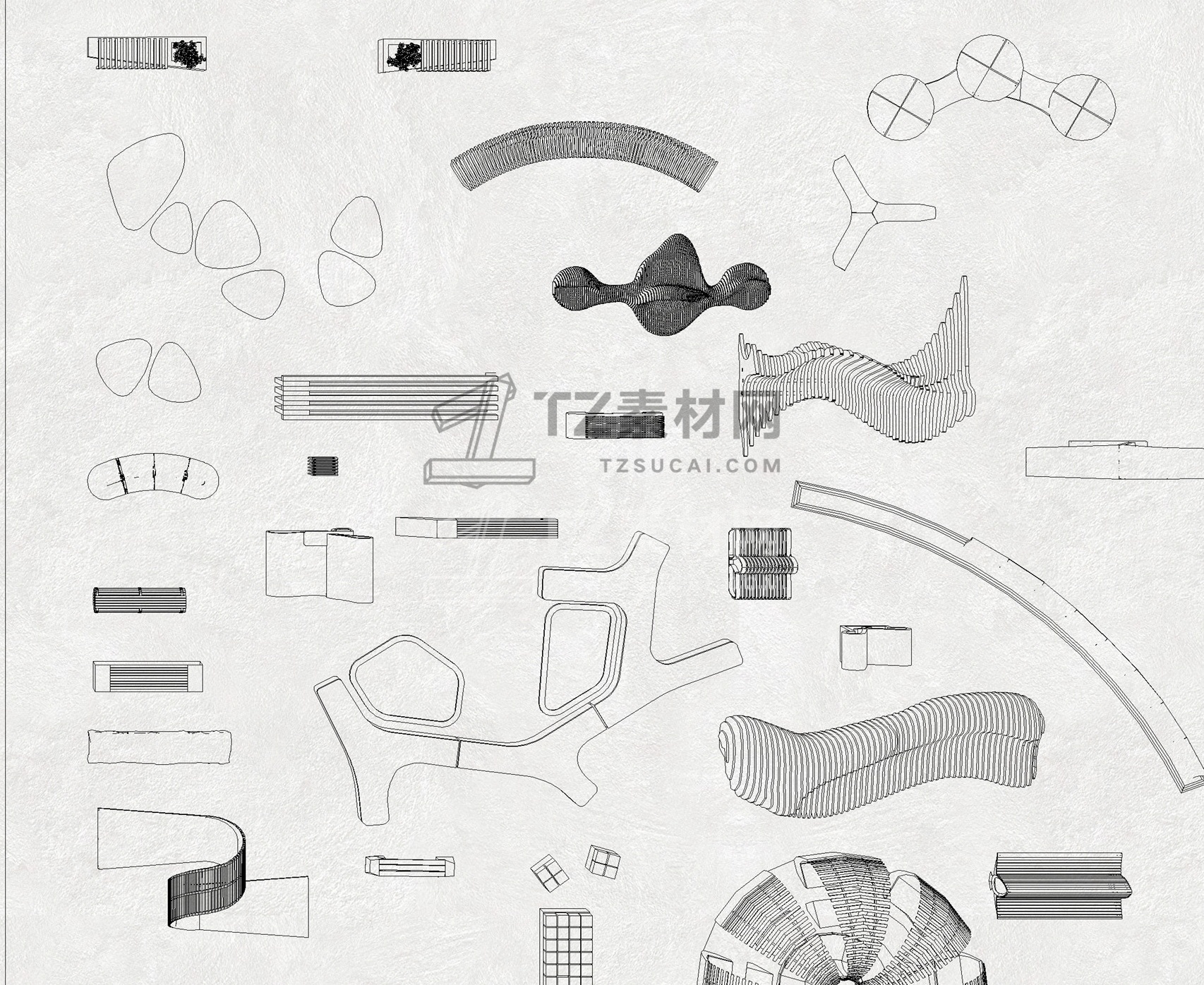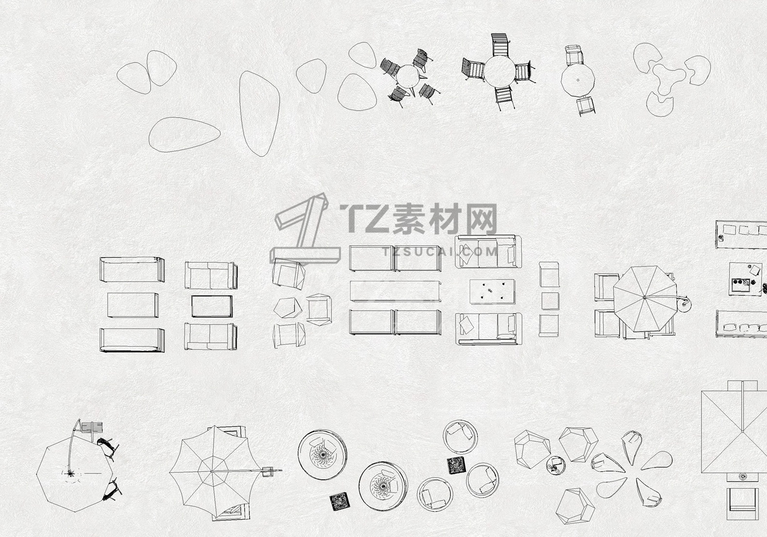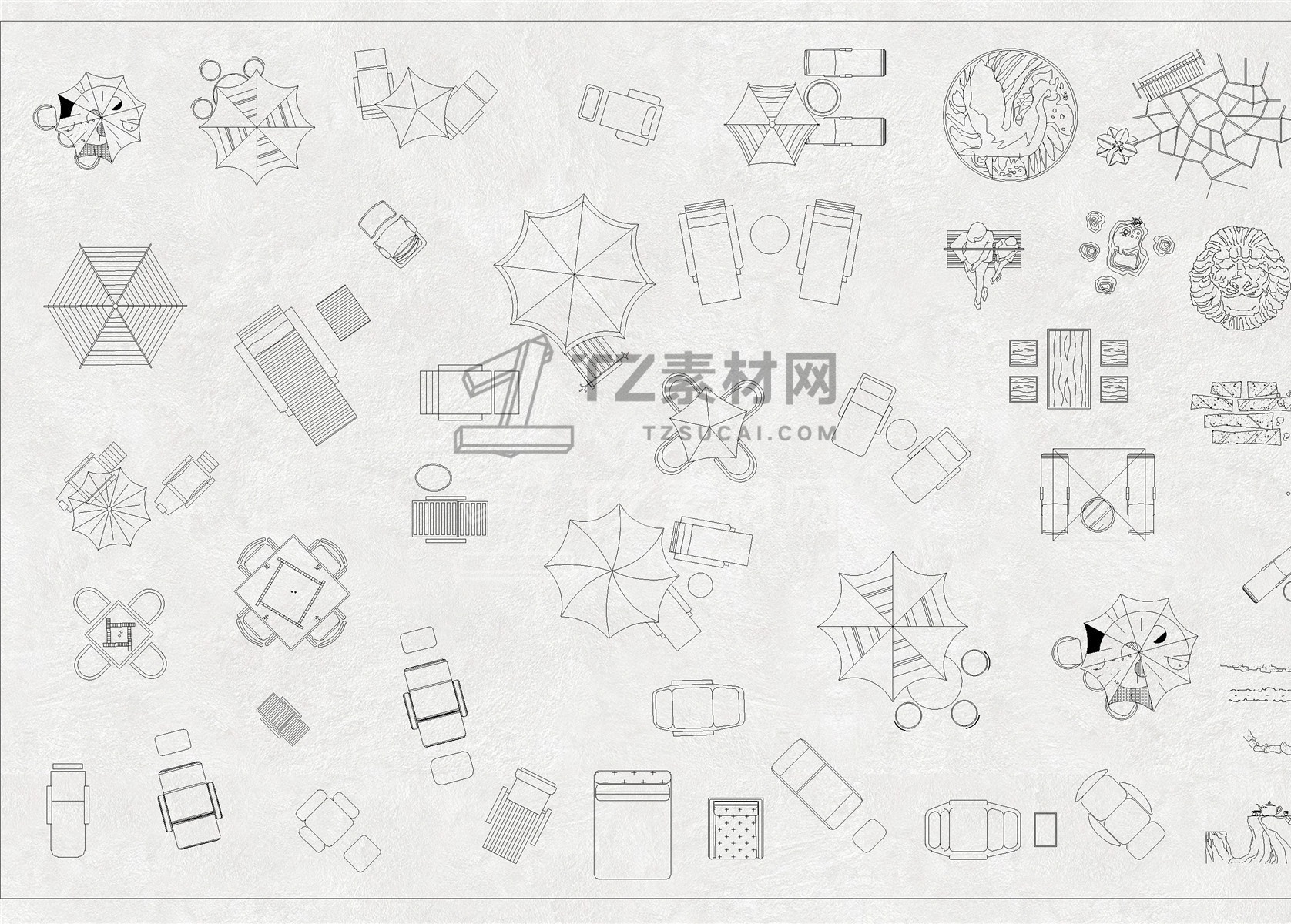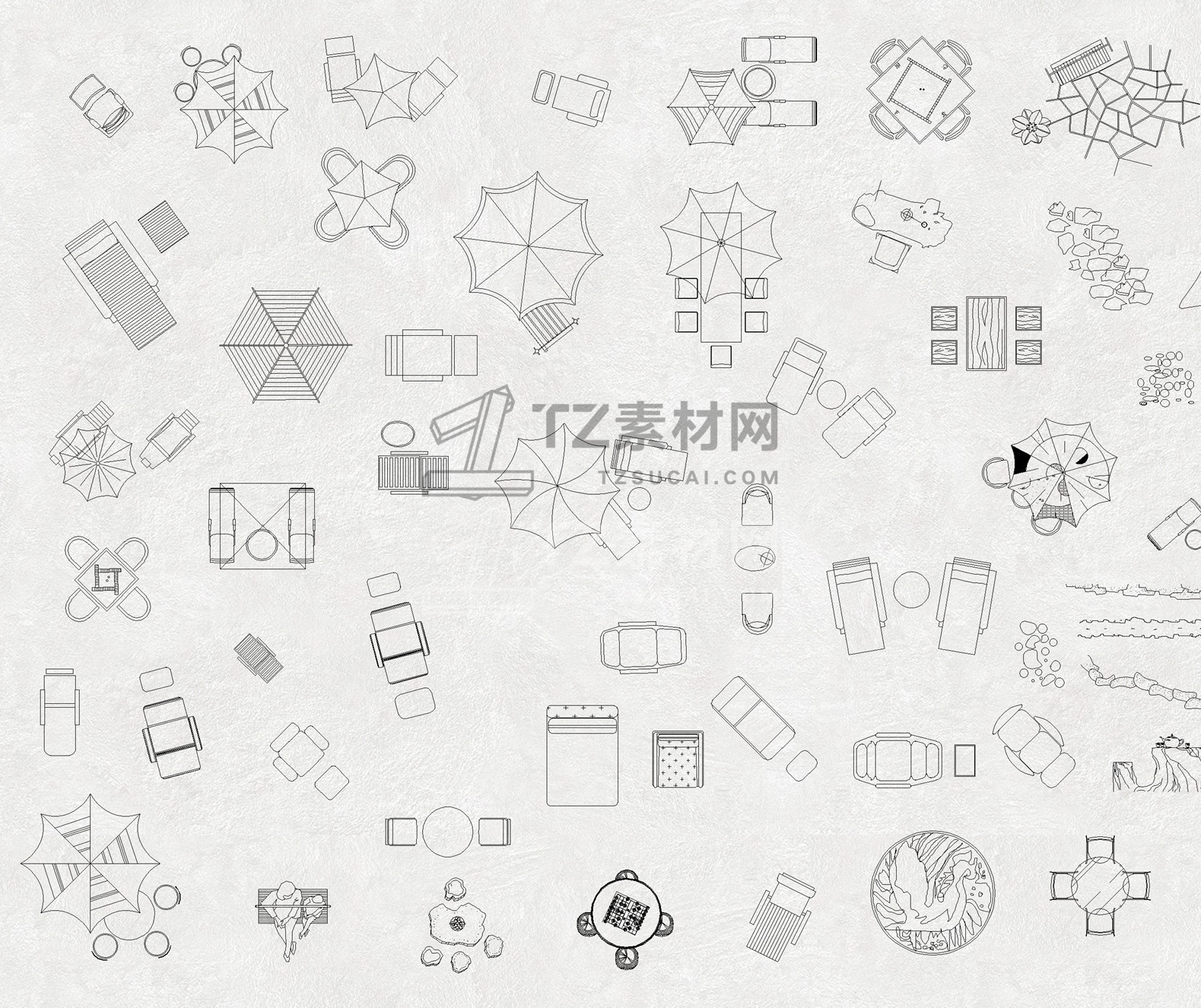 户外桌椅CAD图库 座椅坐凳CAD 户外家具CAD 太阳伞CAD 景观小品CAD