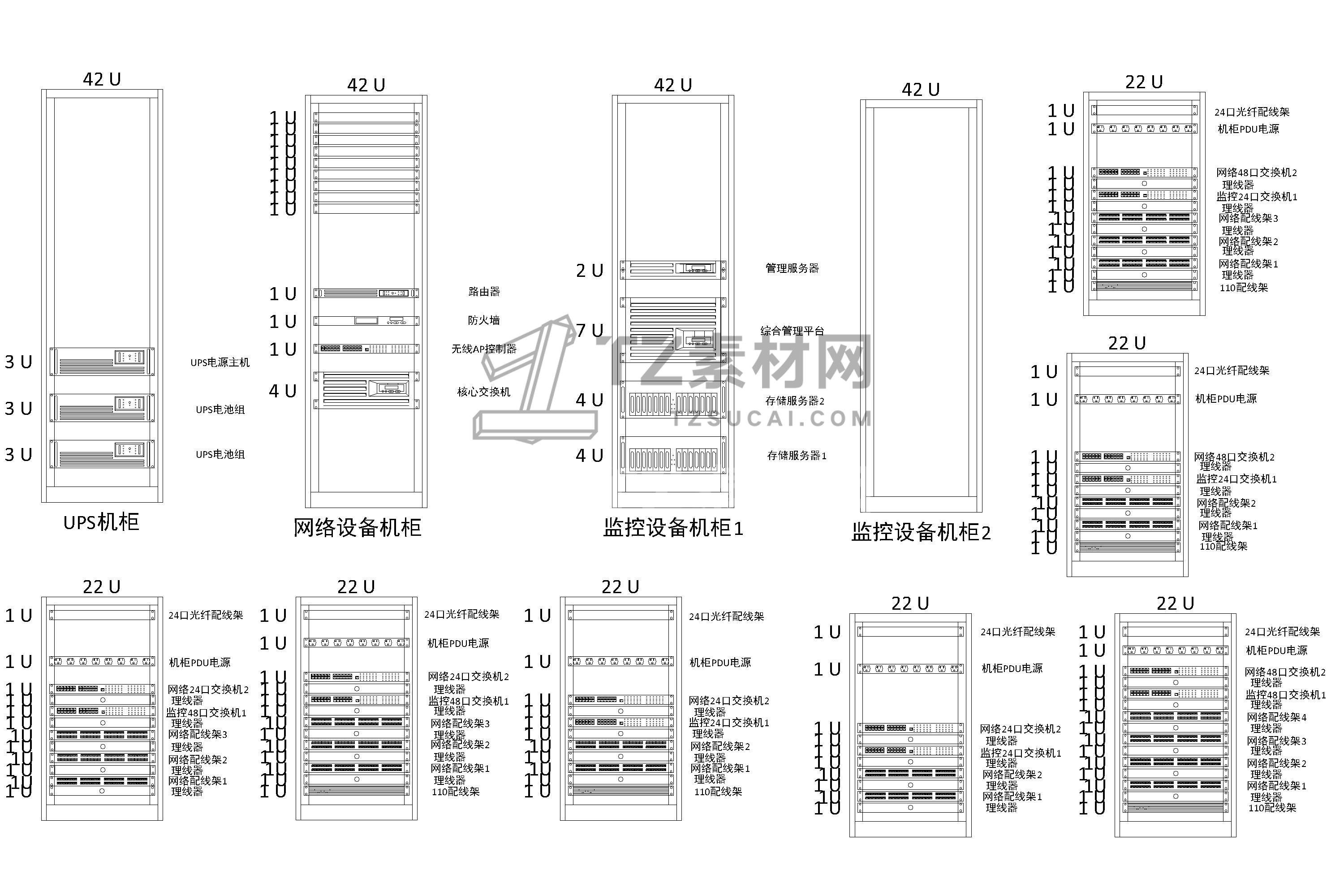 弱电智能化CAD网络设备 交换机柜CAD 弱电机房CAD 网络设备CAD 机房设备CAD