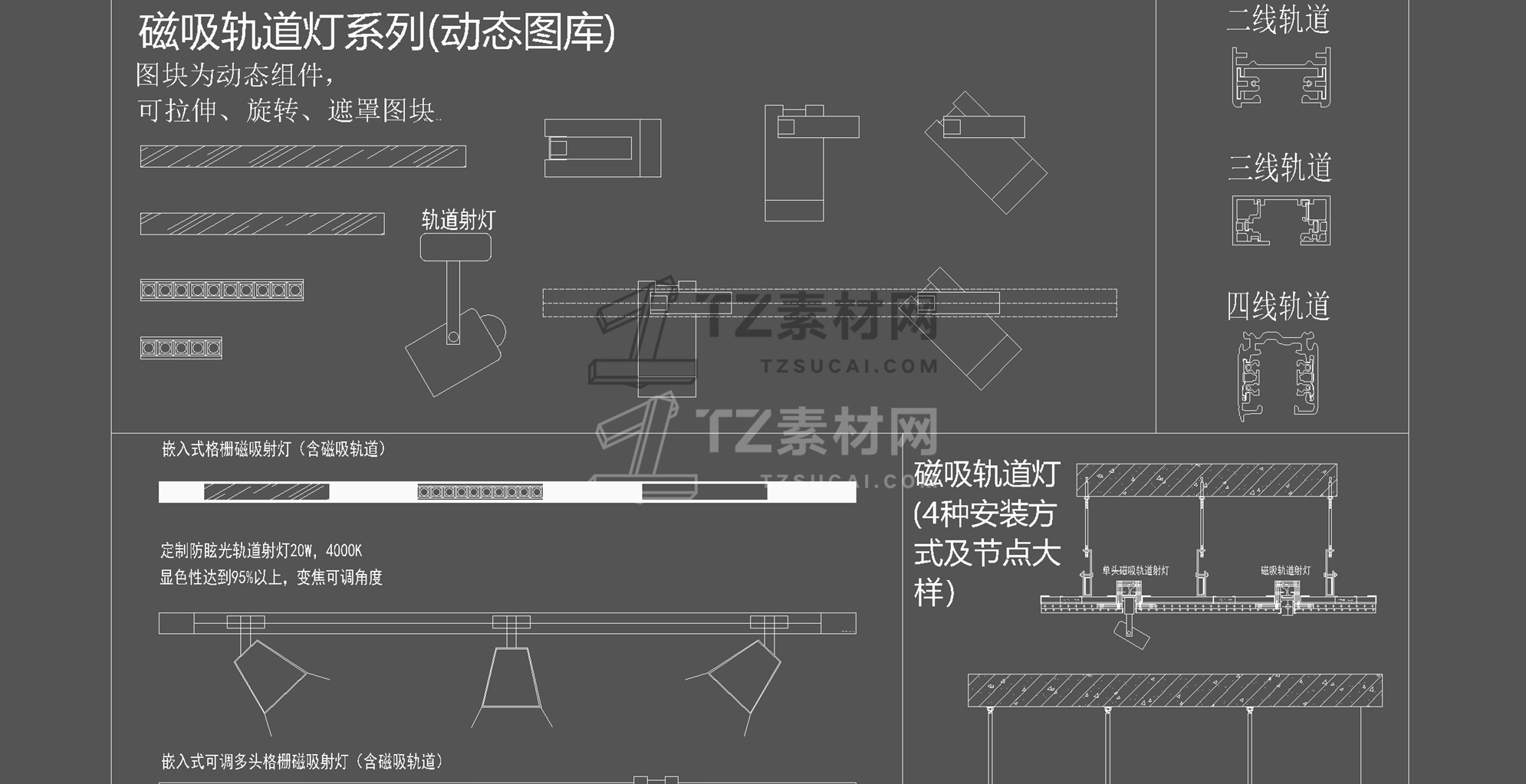 磁吸灯CAD 轨道灯CAD 磁吸轨道灯CAD 轨道灯射灯CAD 嵌入式CAD 嵌入式轨道灯CAD