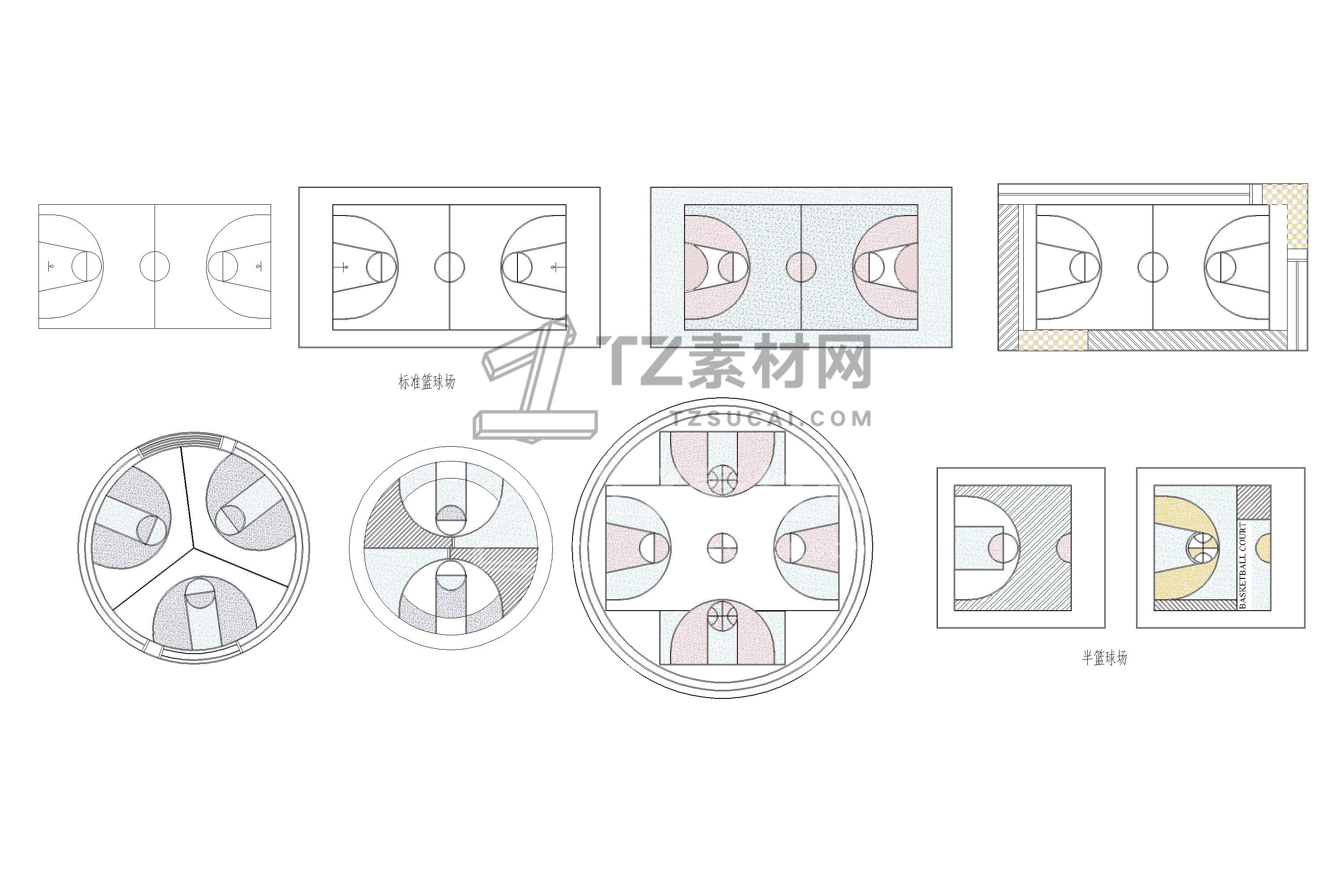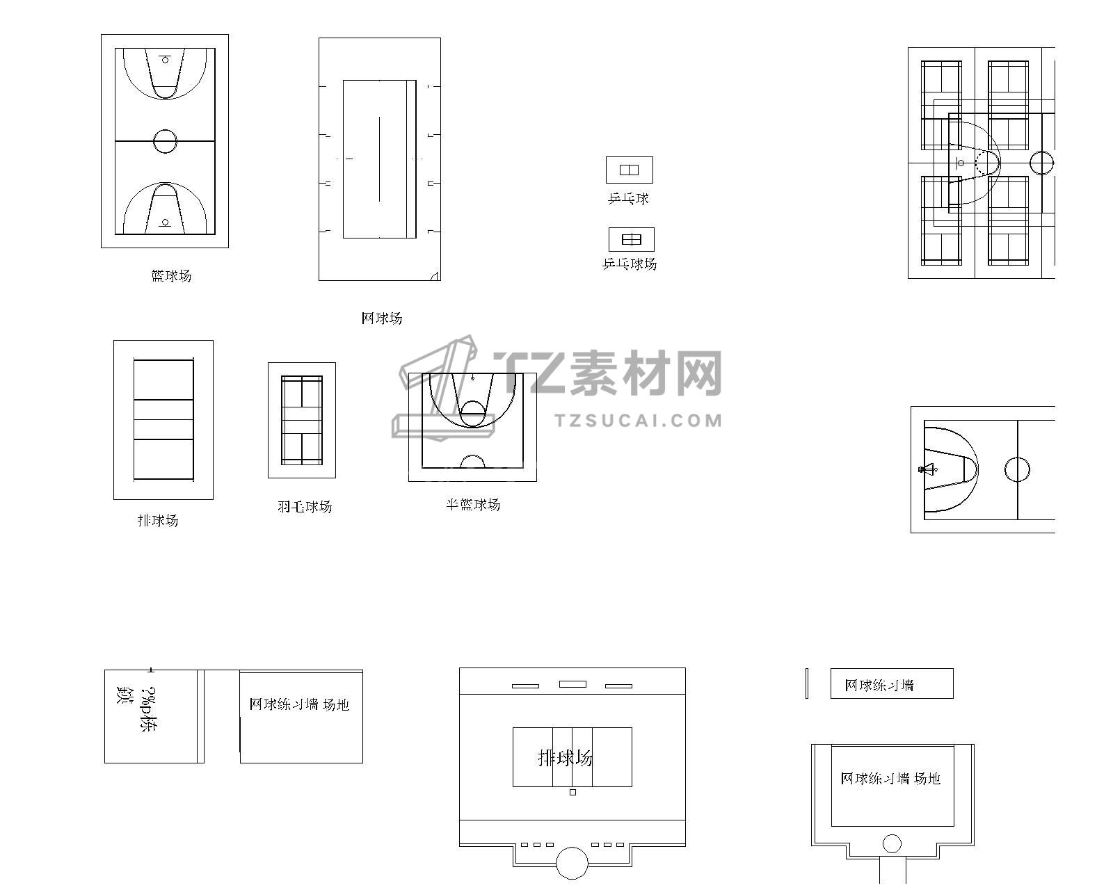 篮球场CAD图纸 运动场地CAD 网球场CAD 跑道CAD 体育馆CAD 足球场CAD 体育场CAD
