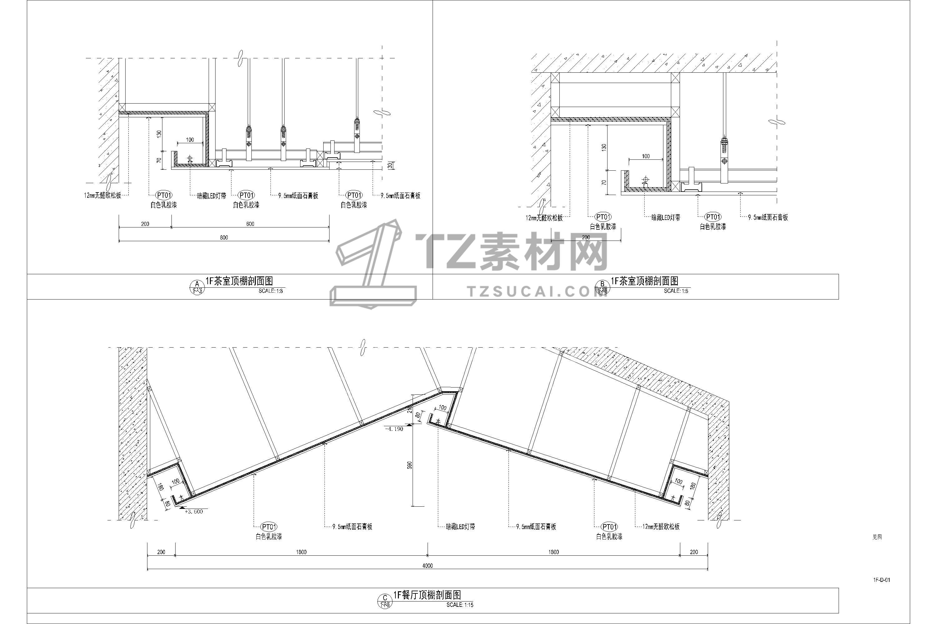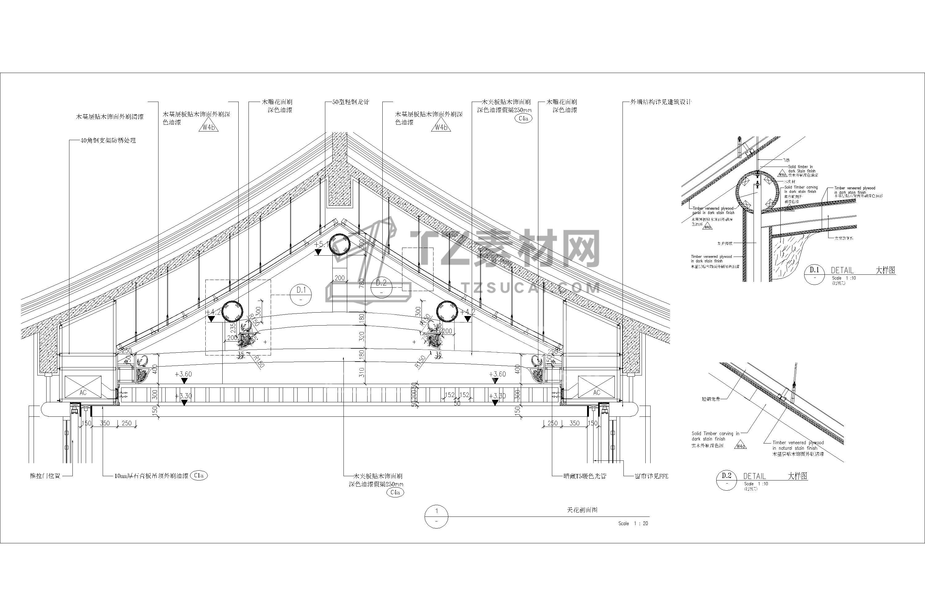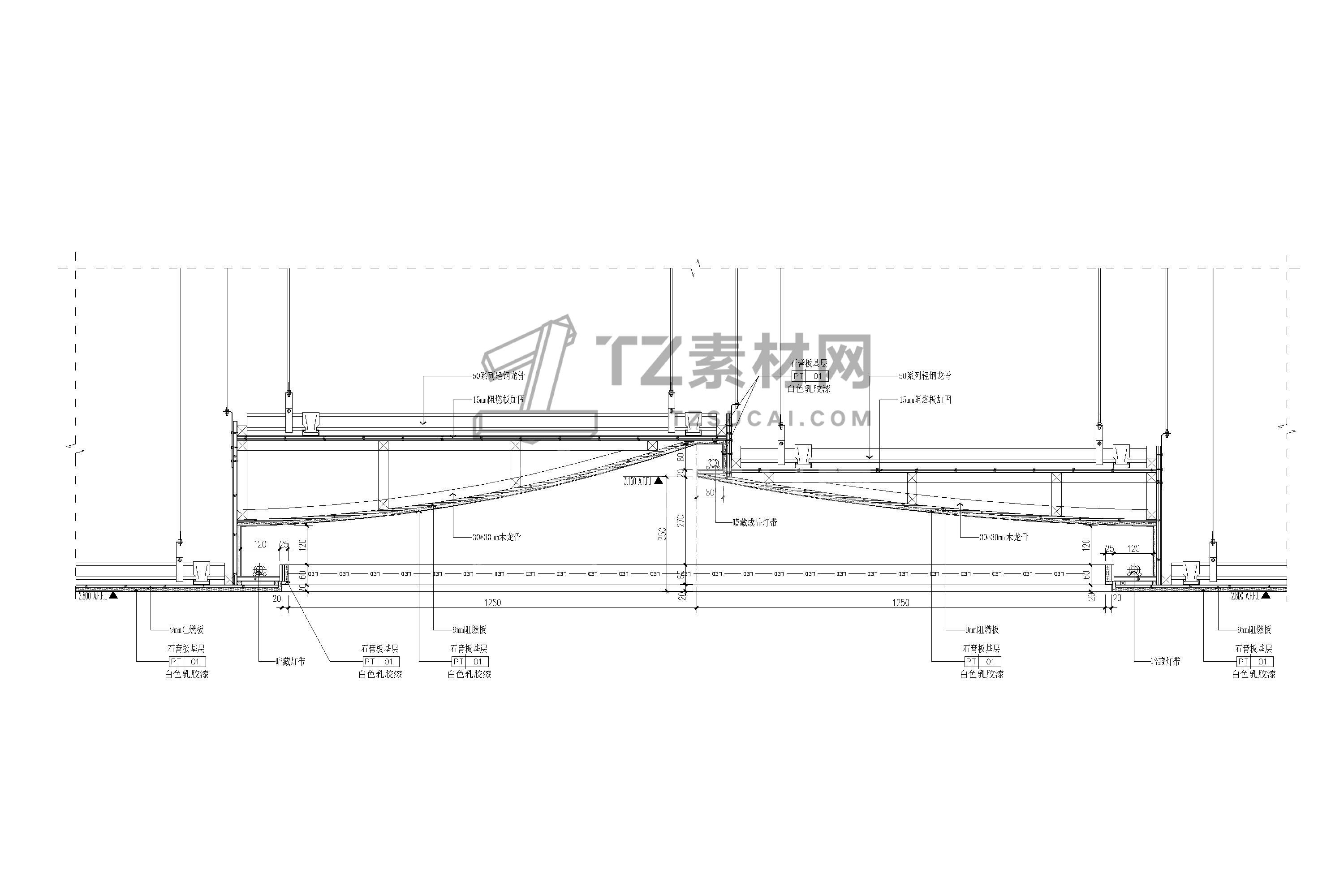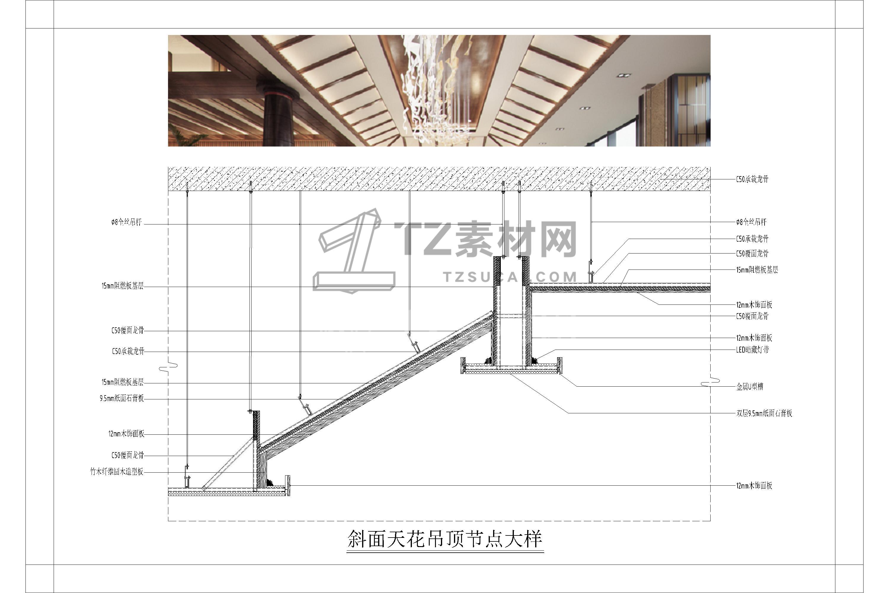 吊顶节点CAD 人字坡形CAD 人字吊顶CAD 坡形吊顶CAD 斜面天花CAD 坡屋顶CAD
