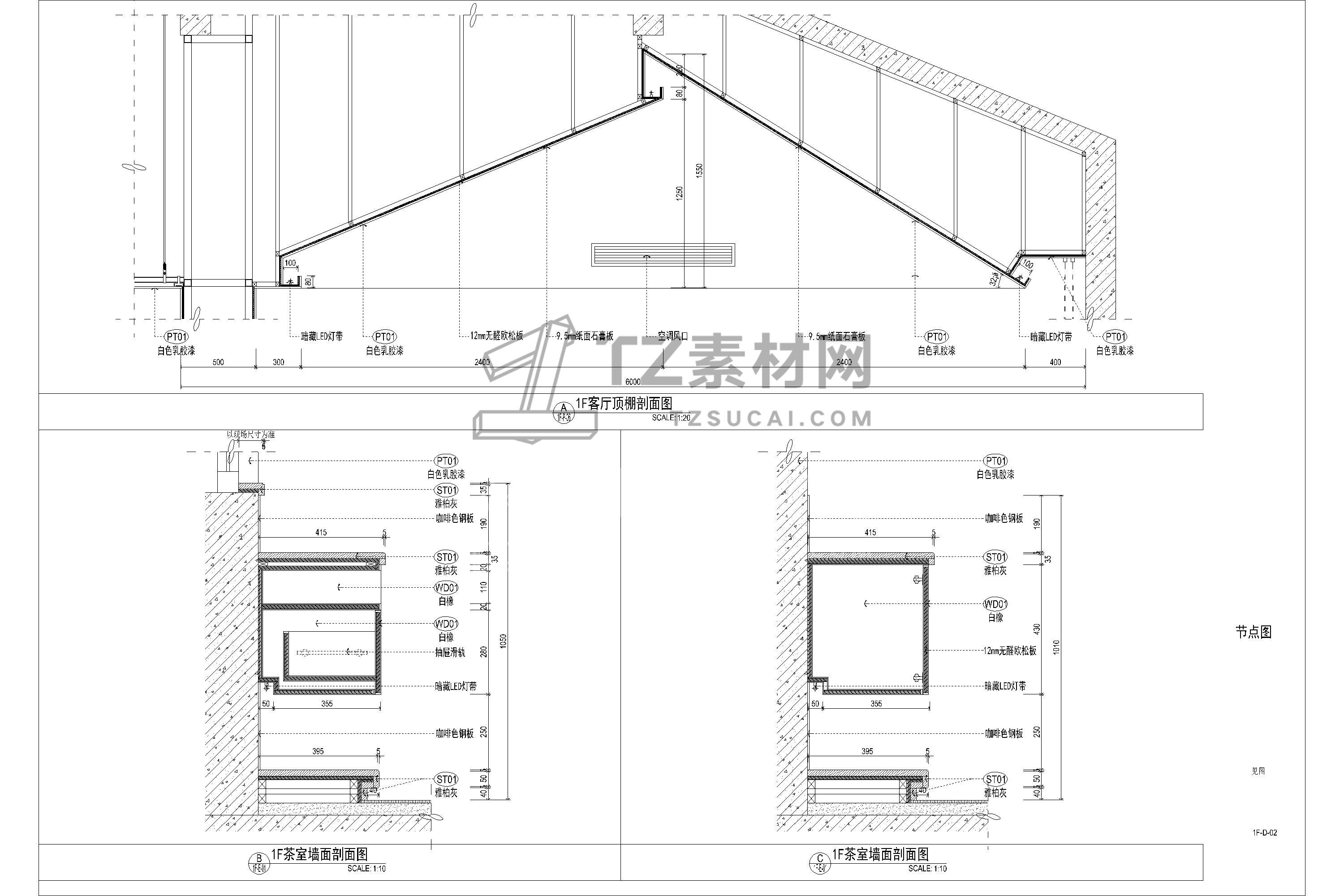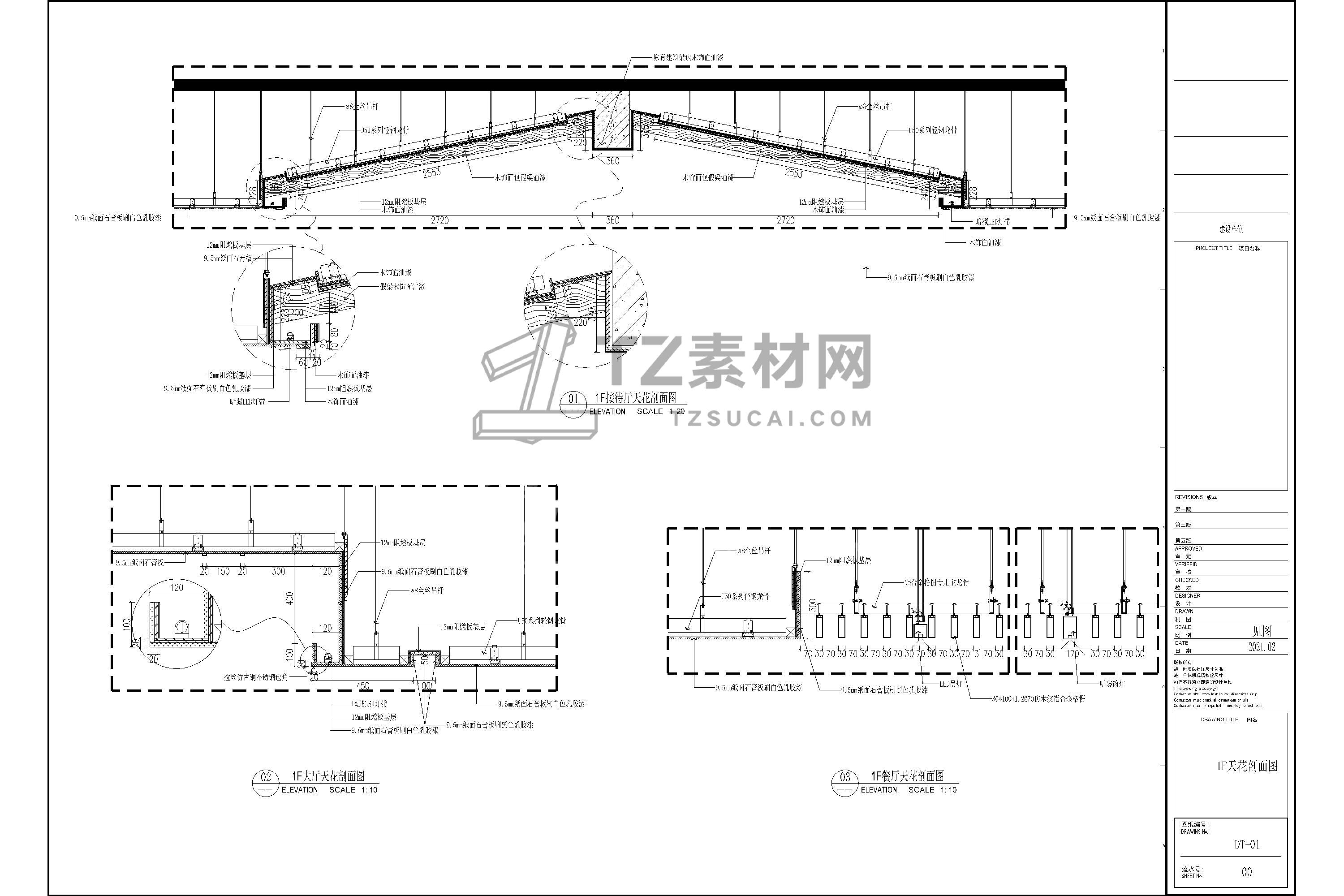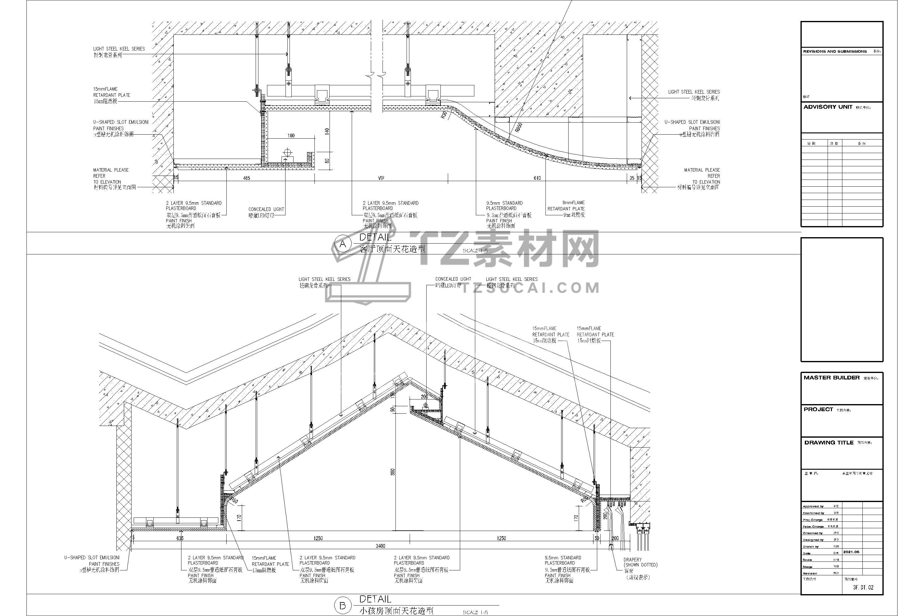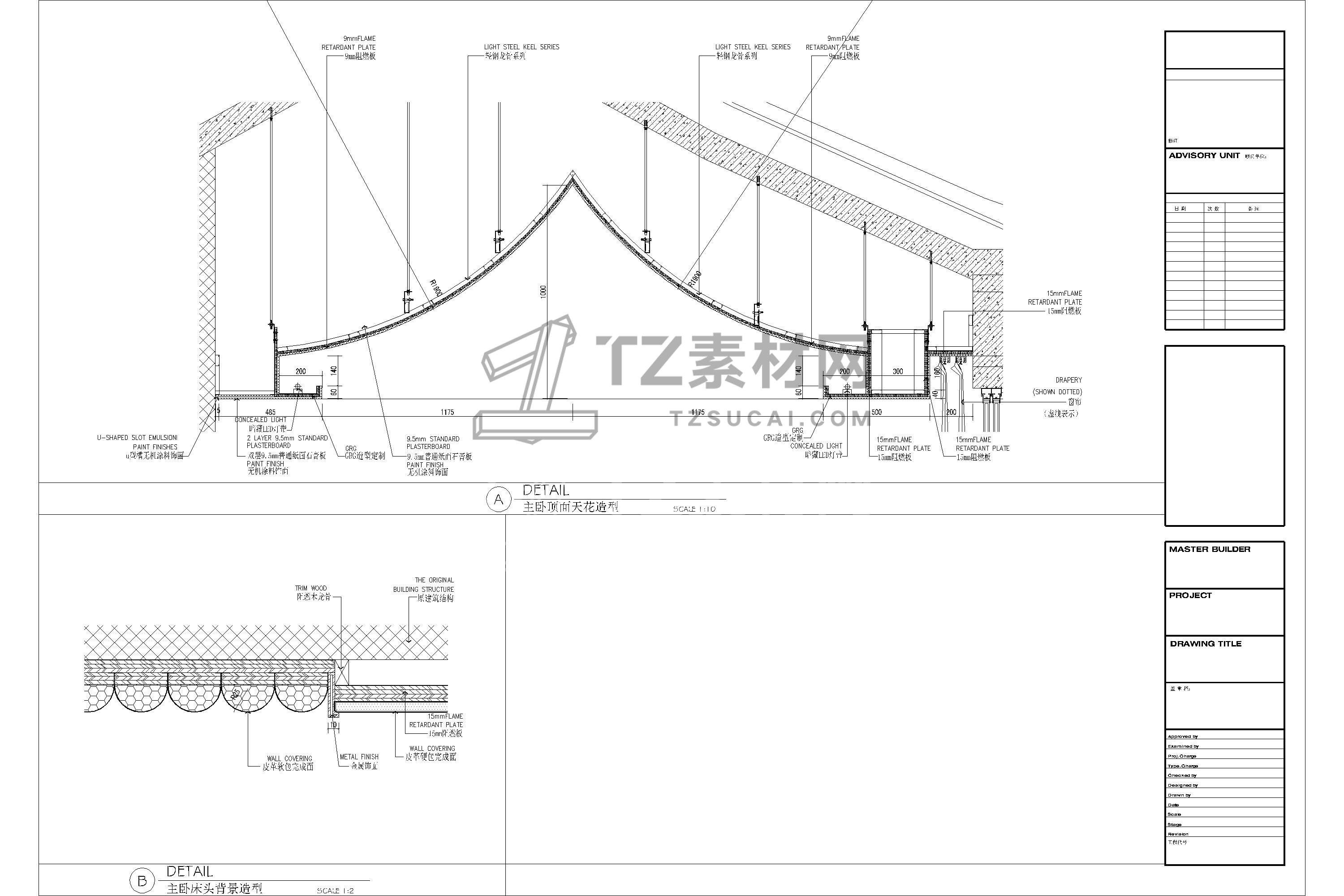 吊顶节点CAD 人字坡形CAD 人字吊顶CAD 坡形吊顶CAD 斜面天花CAD 坡屋顶CAD