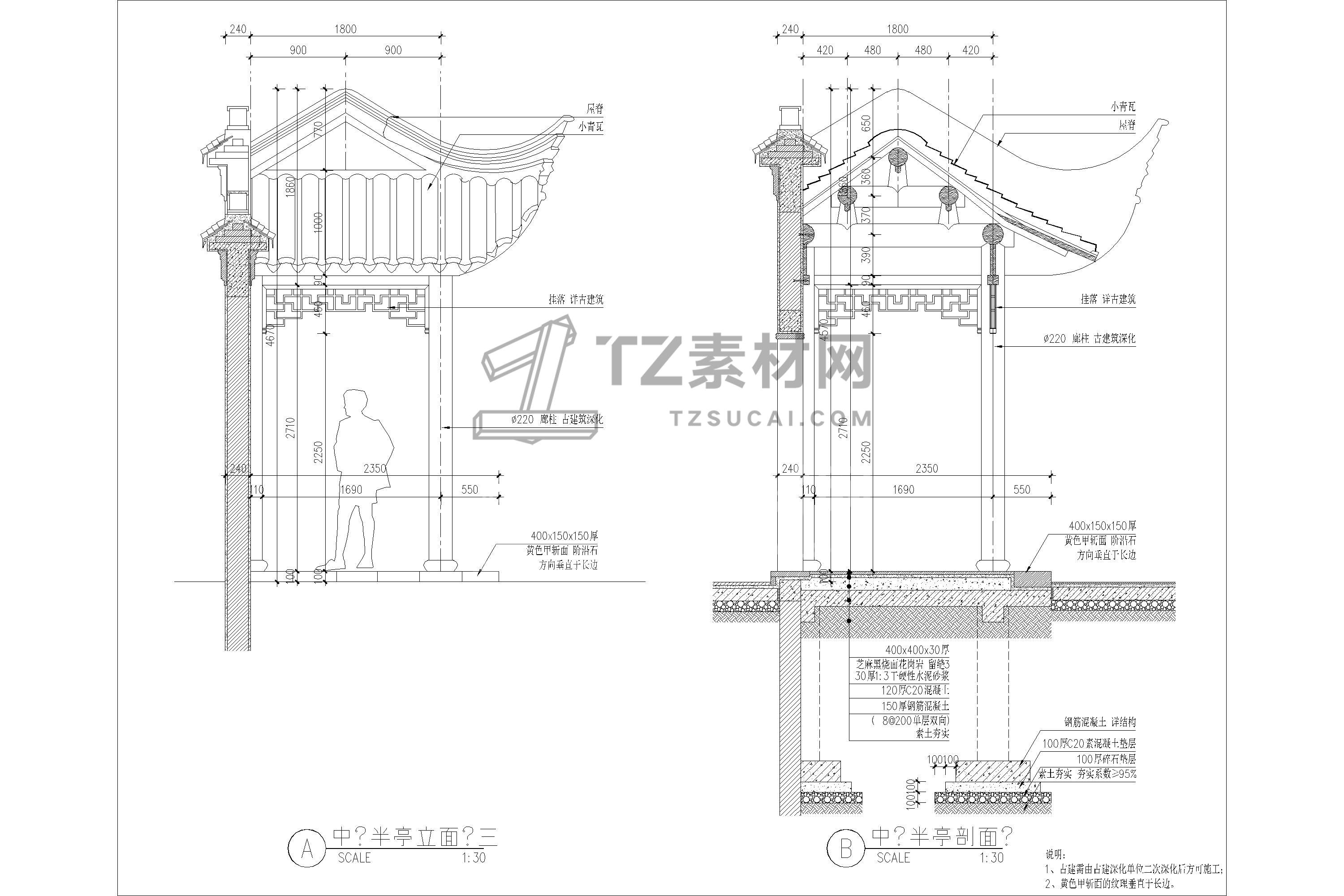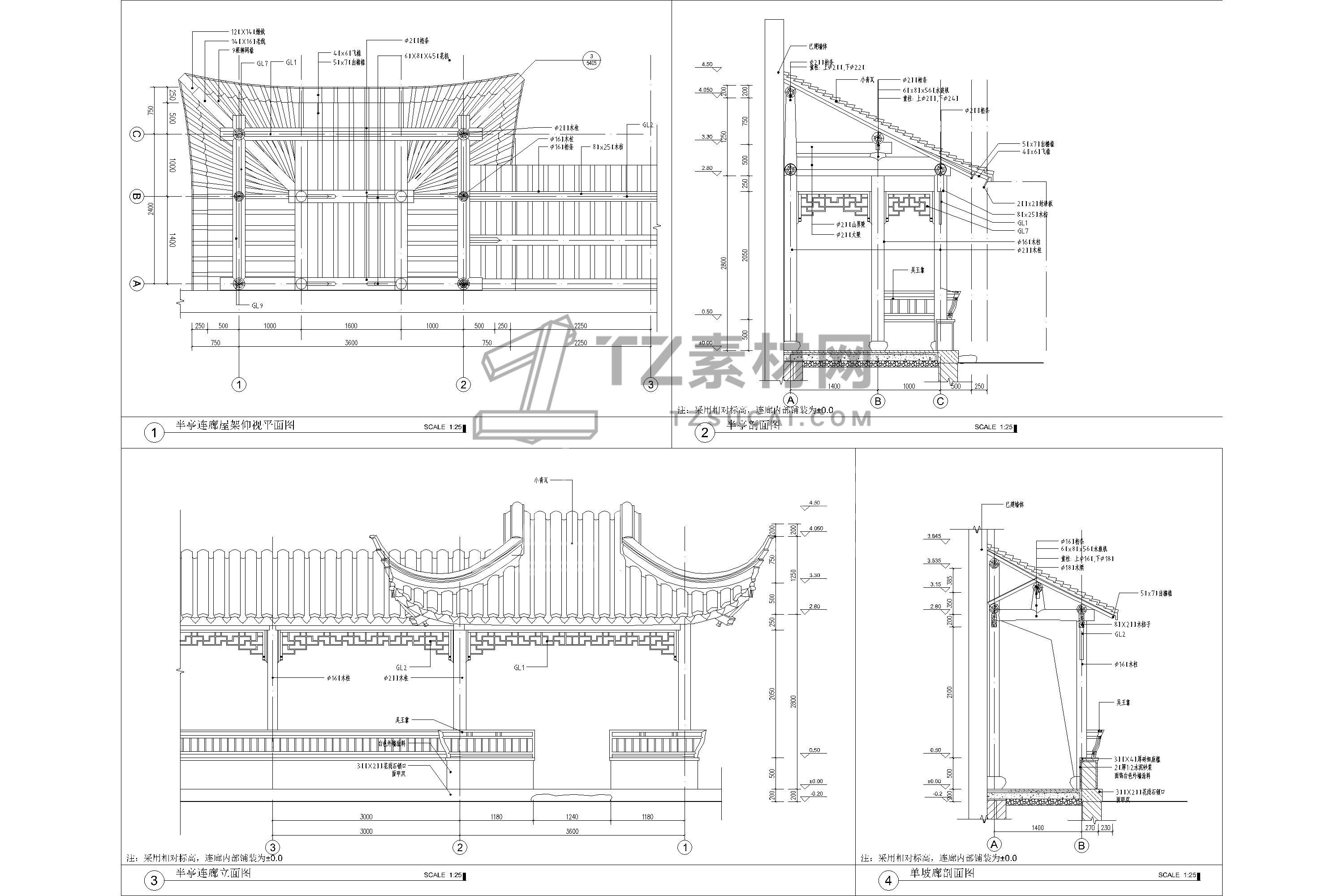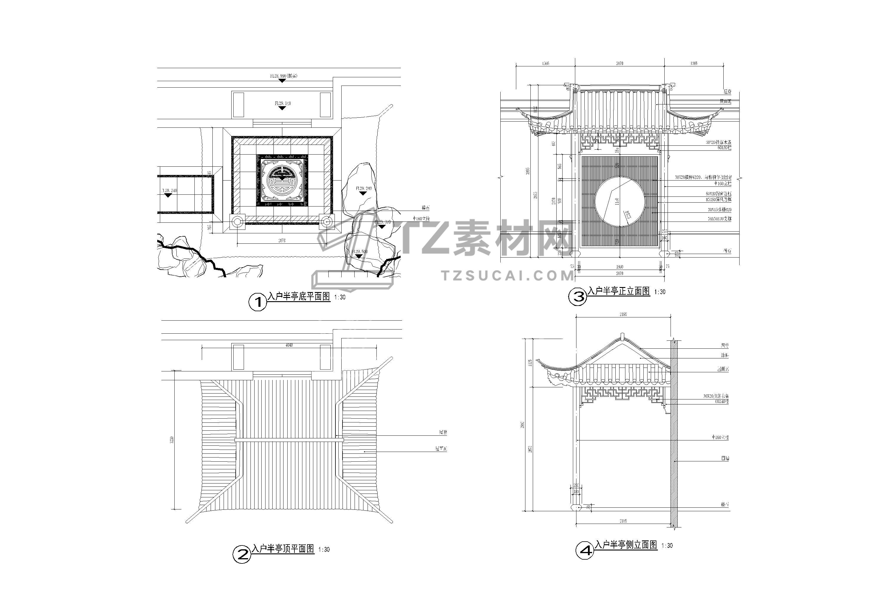 半亭CAD 半廊CAD 亭子CAD 廊亭CAD 景观亭CAD