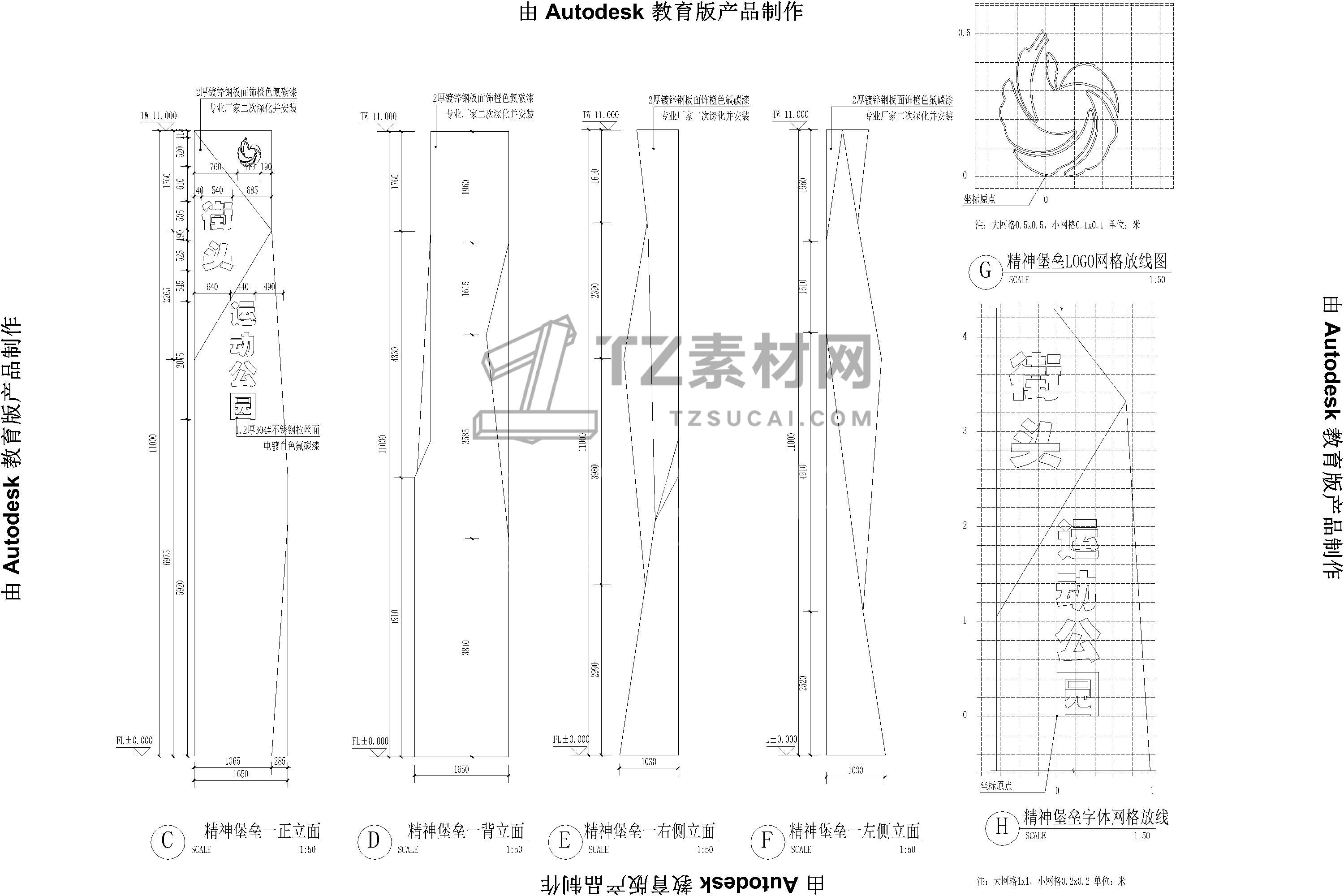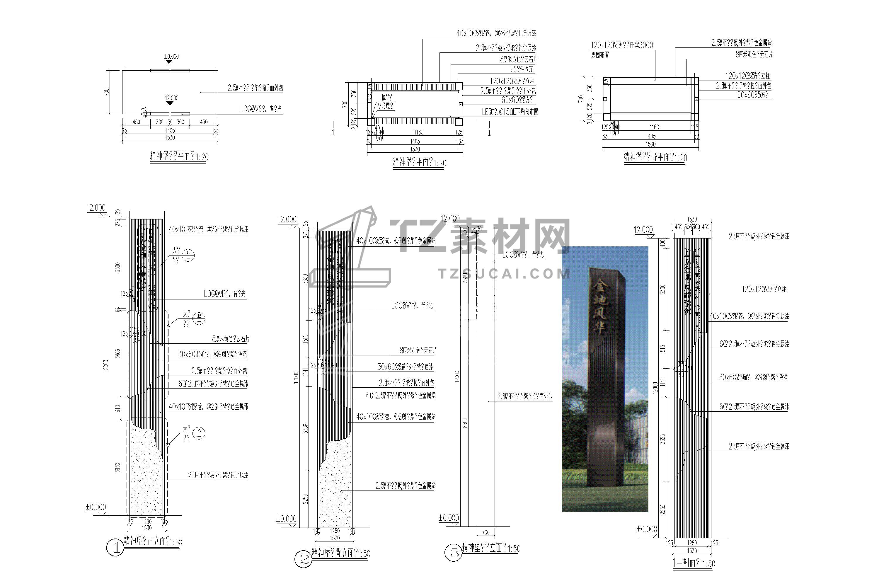 精神堡垒CAD 景观雕塑CAD 雕塑小品CAD 标识牌CAD 指示牌CAD