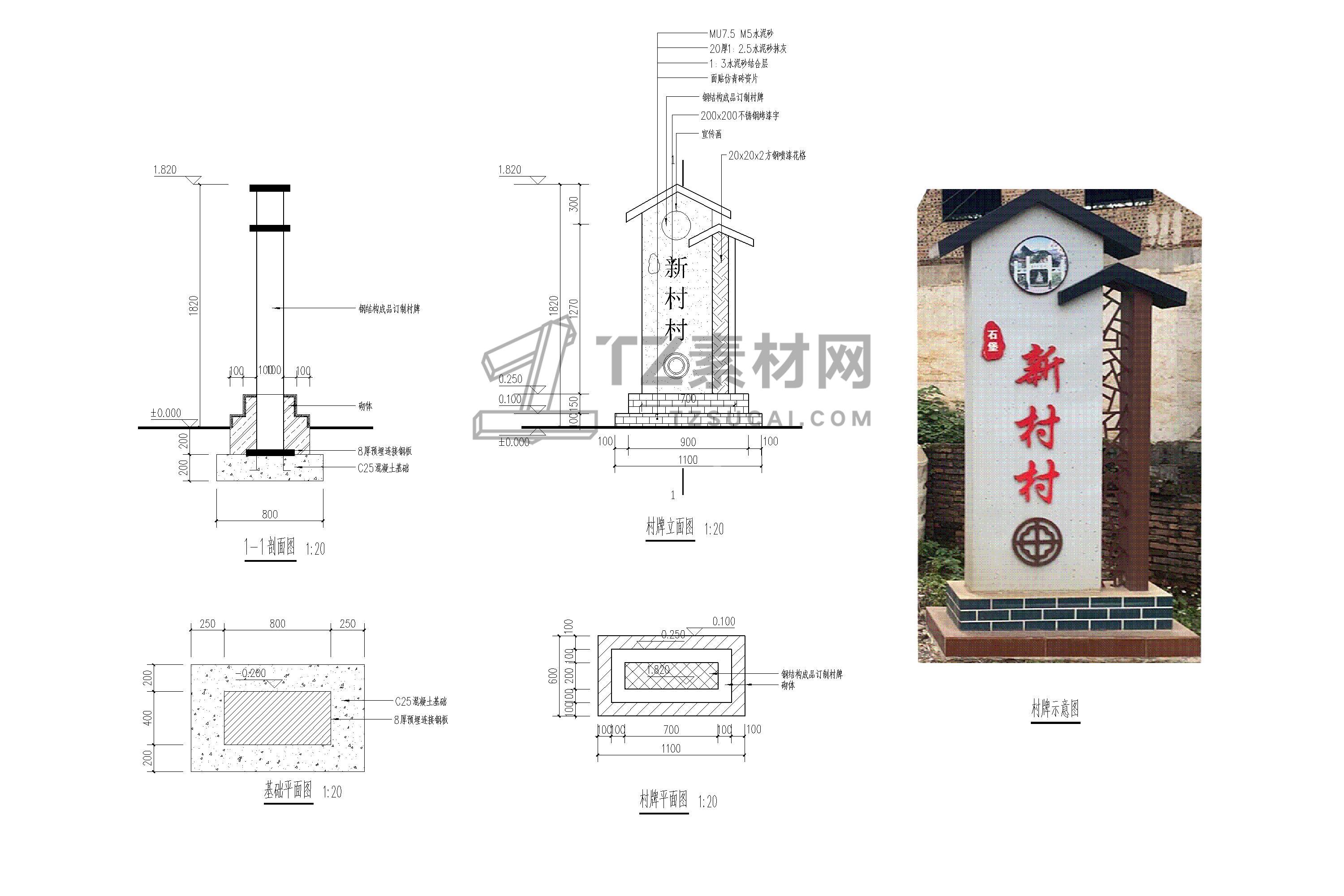 村牌CAD 村标志CAD 村标CAD 标识牌CAD 入口标识CAD 入口导视牌CAD