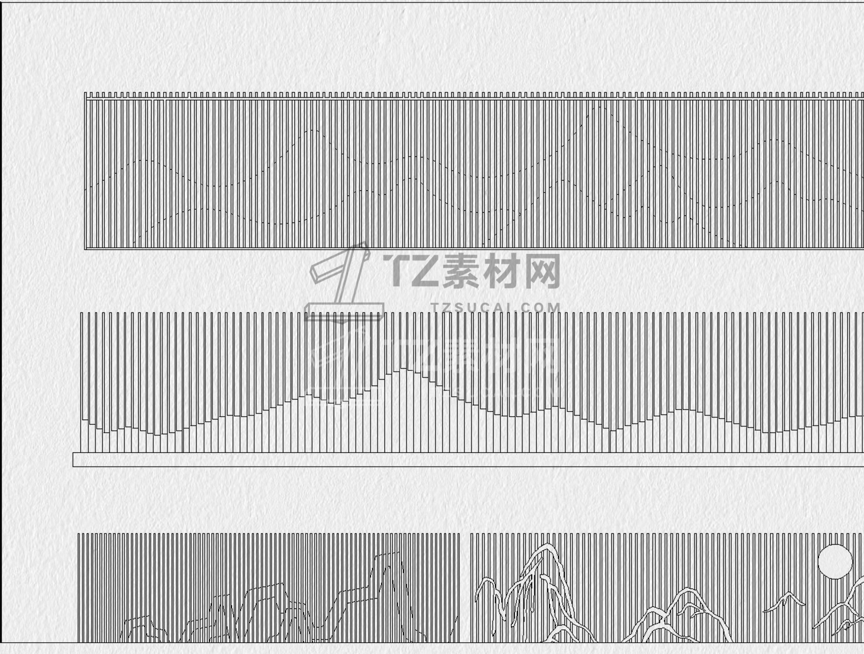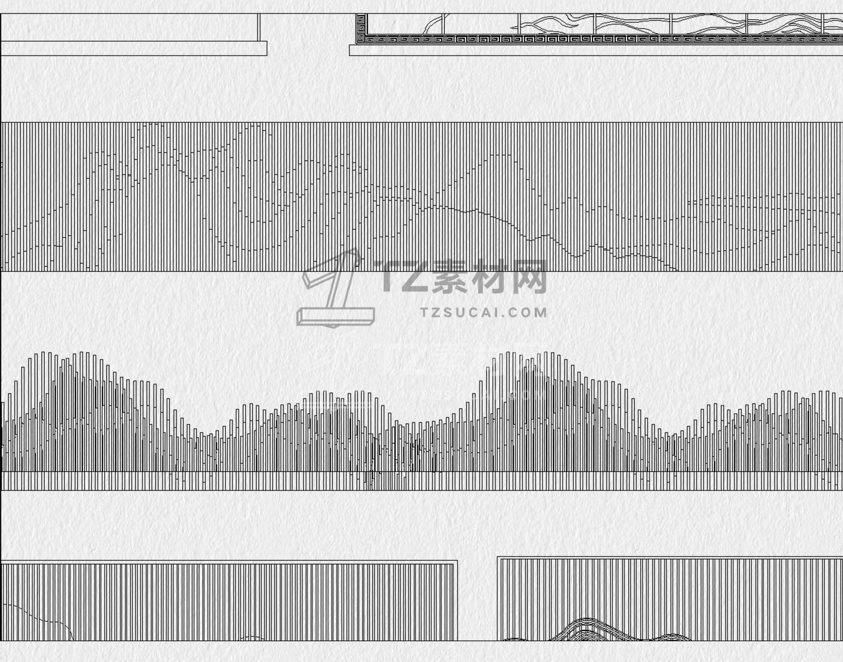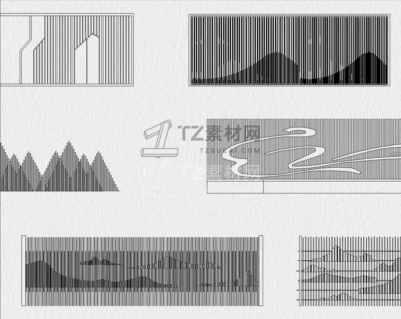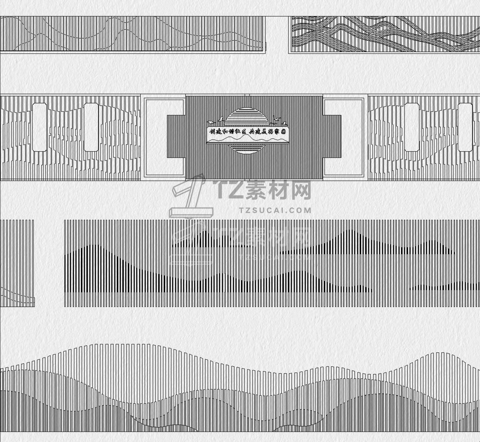 格栅CAD 格栅景墙CAD 云纹山水禅意花纹景观园林图块中式雕花剪影图库