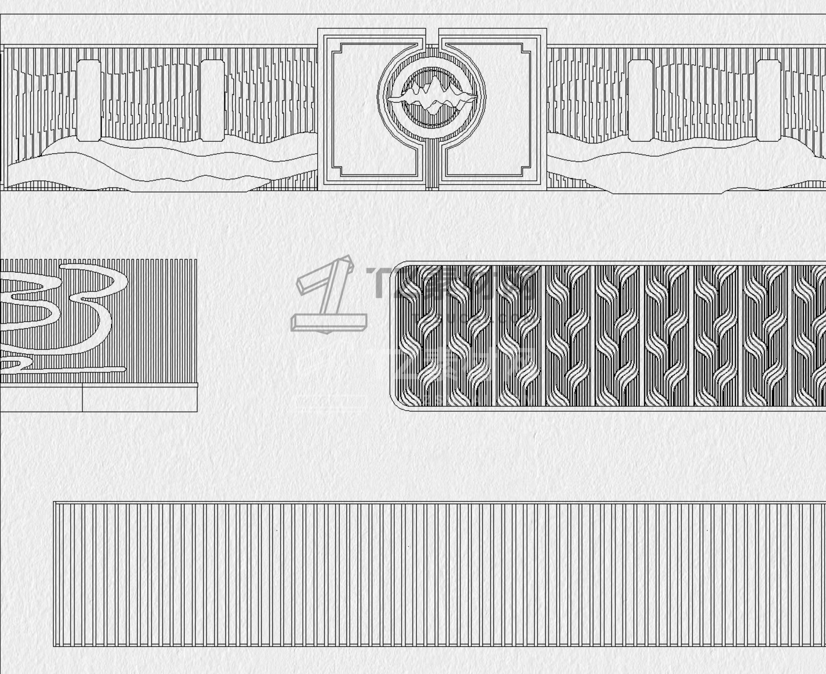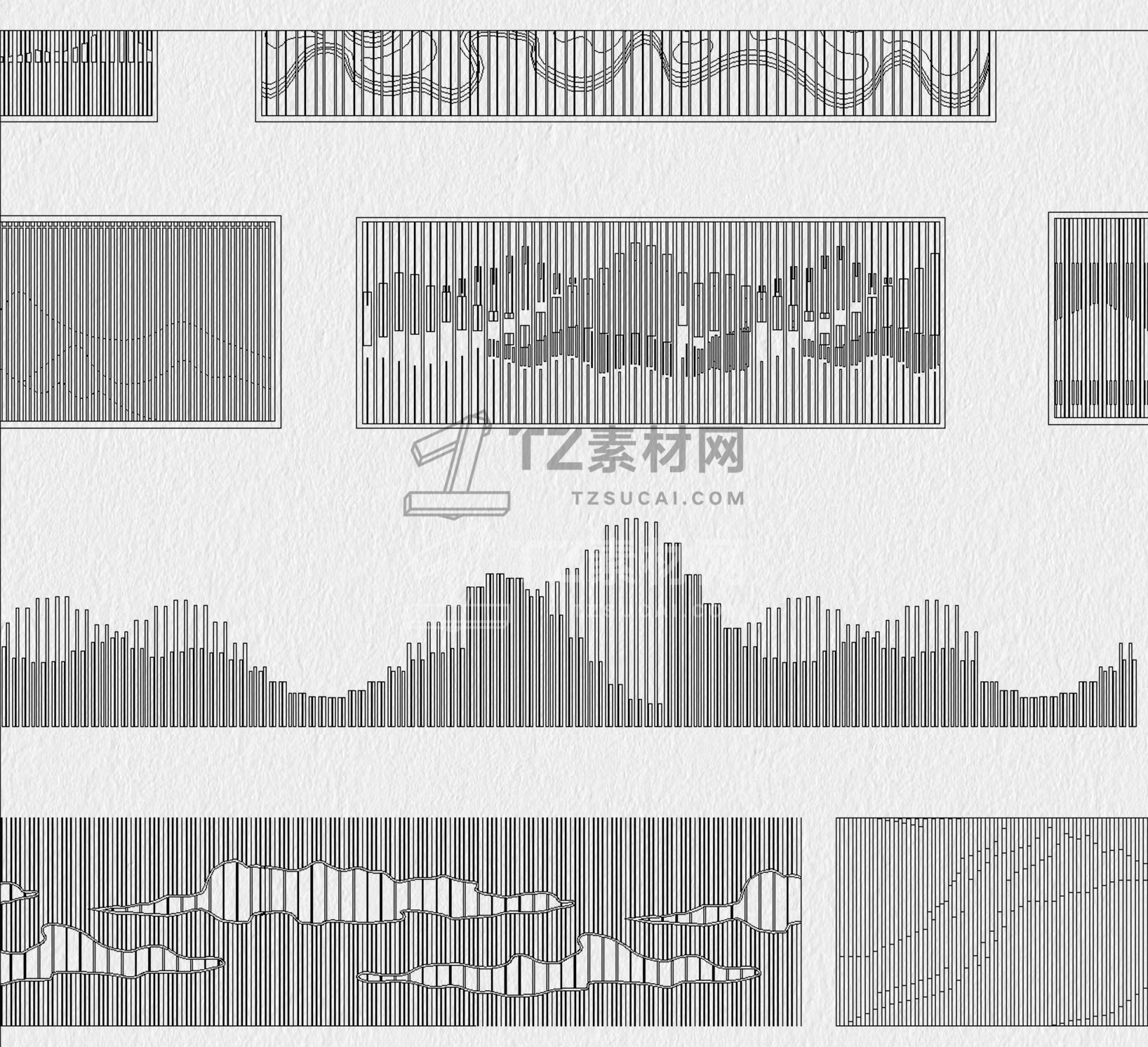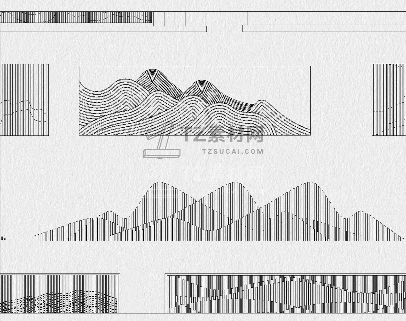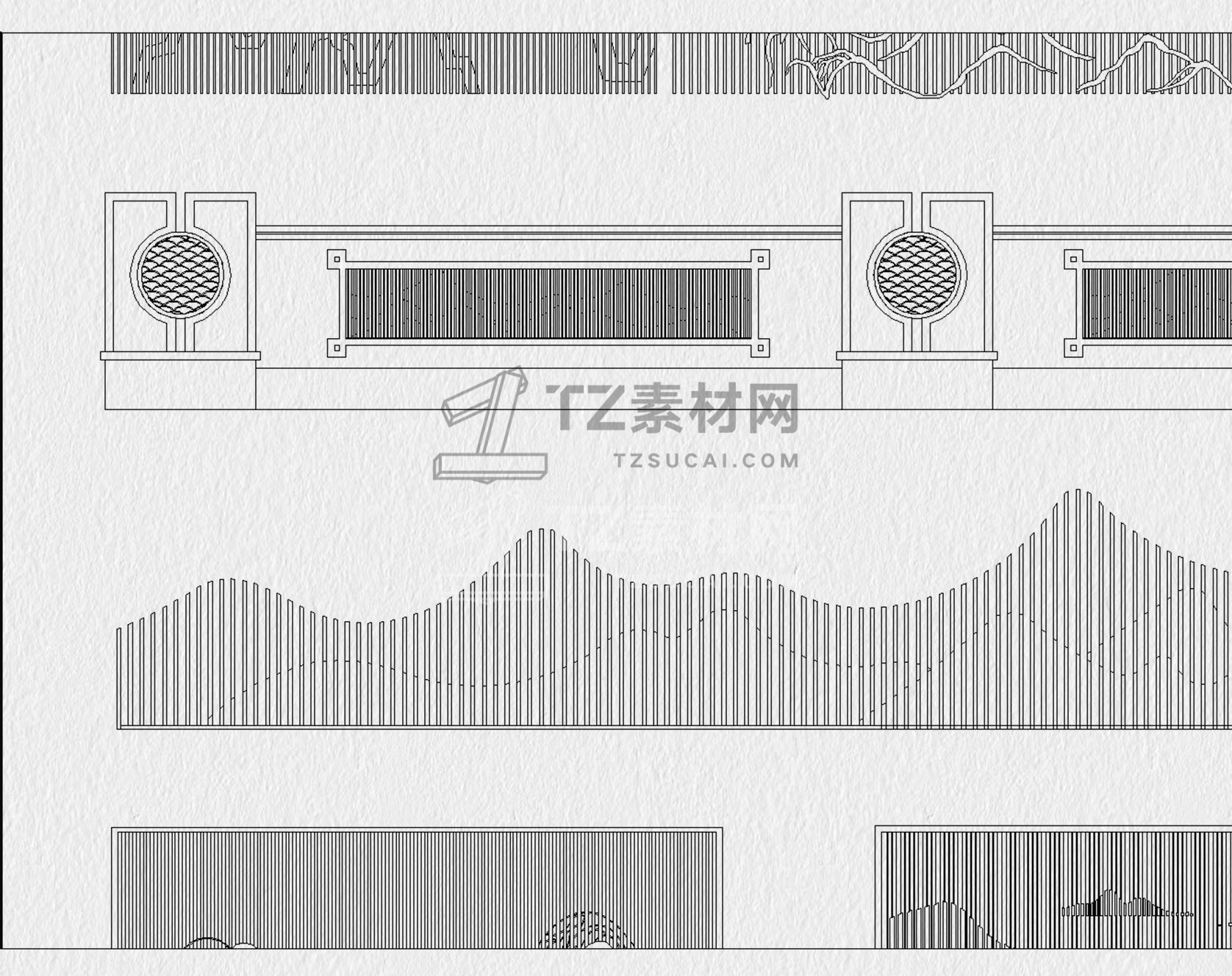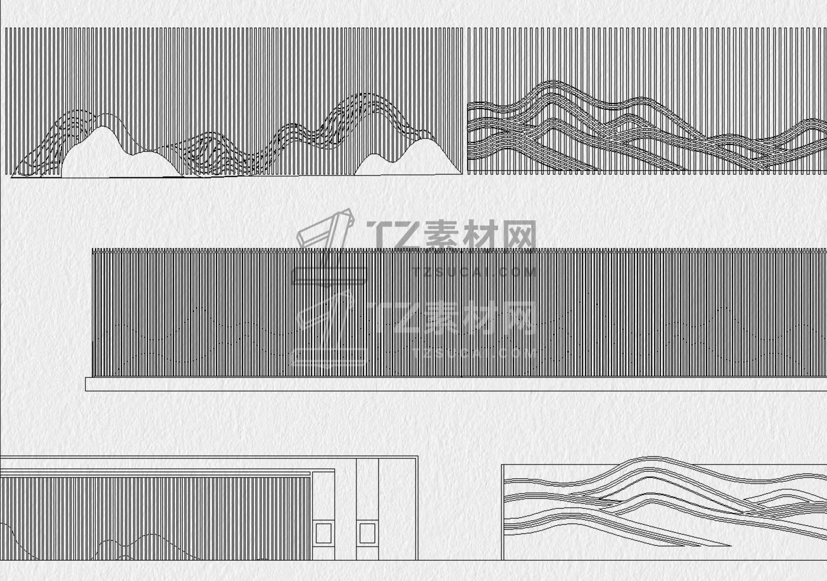 格栅CAD 格栅景墙CAD 云纹山水禅意花纹景观园林图块中式雕花剪影图库