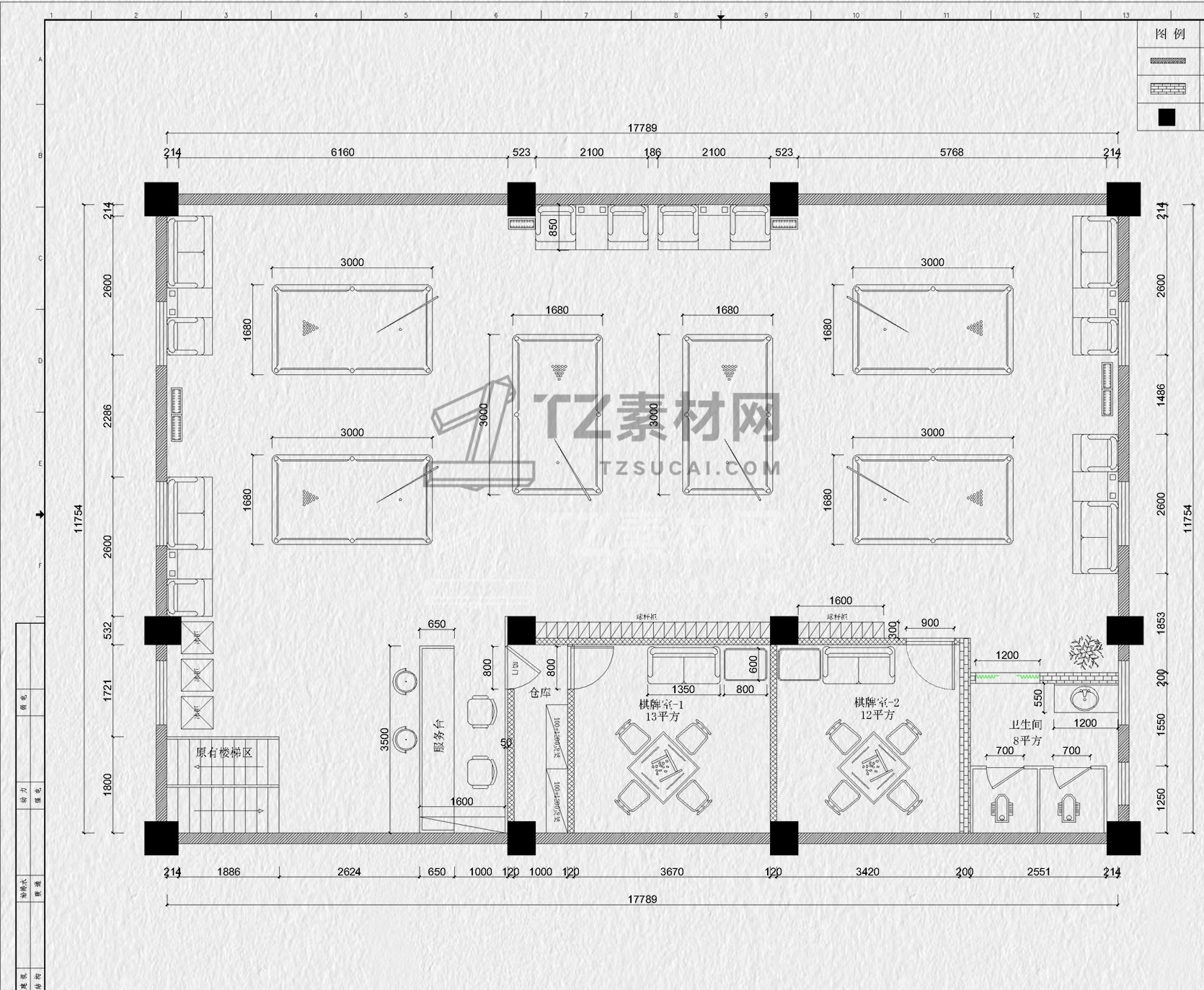 台球厅CAD施工图 台球室CAD 桌球厅CAD 桌球室CAD 台球厅效果图 台球CAD