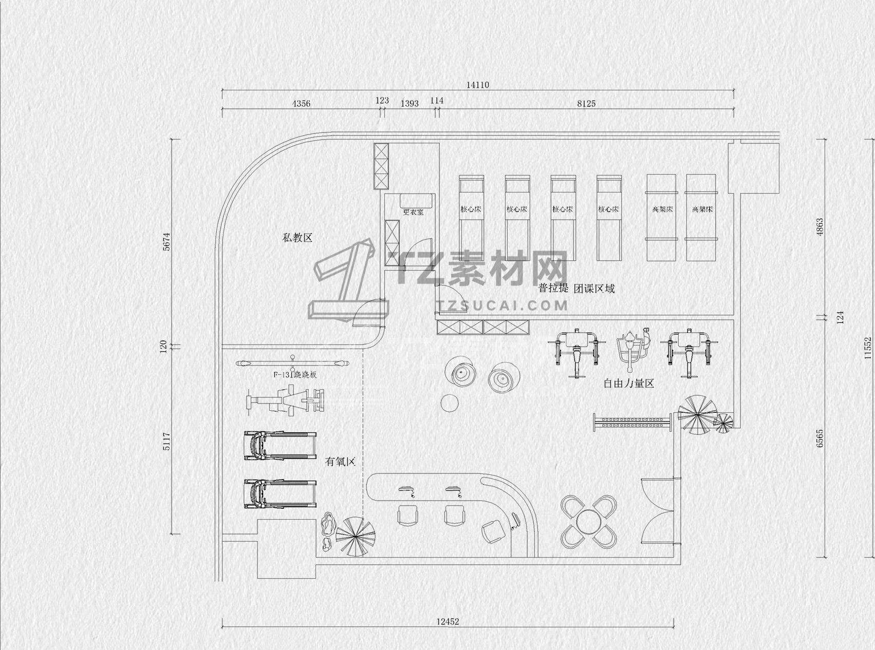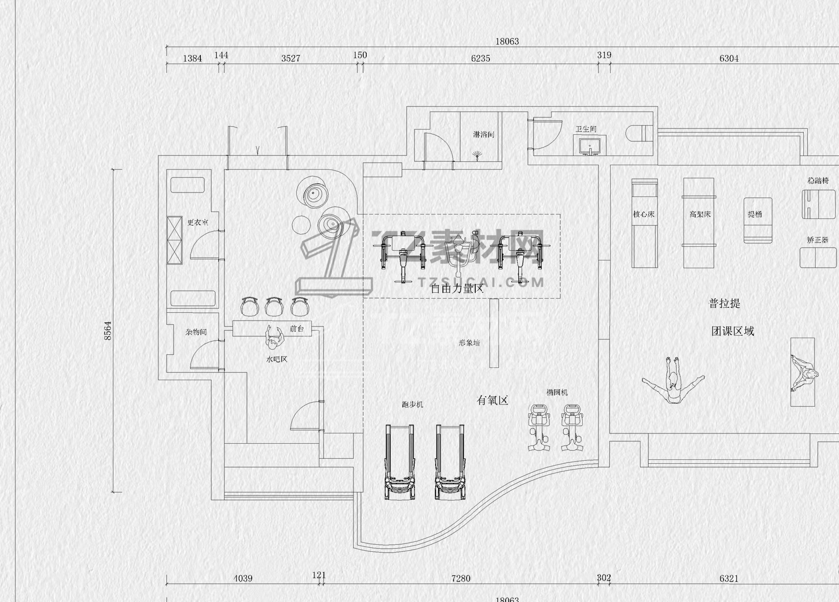 瑜伽室CAD 普拉提健身会所CAD 瑜伽馆CAD 健身房CAD 普拉提CAD