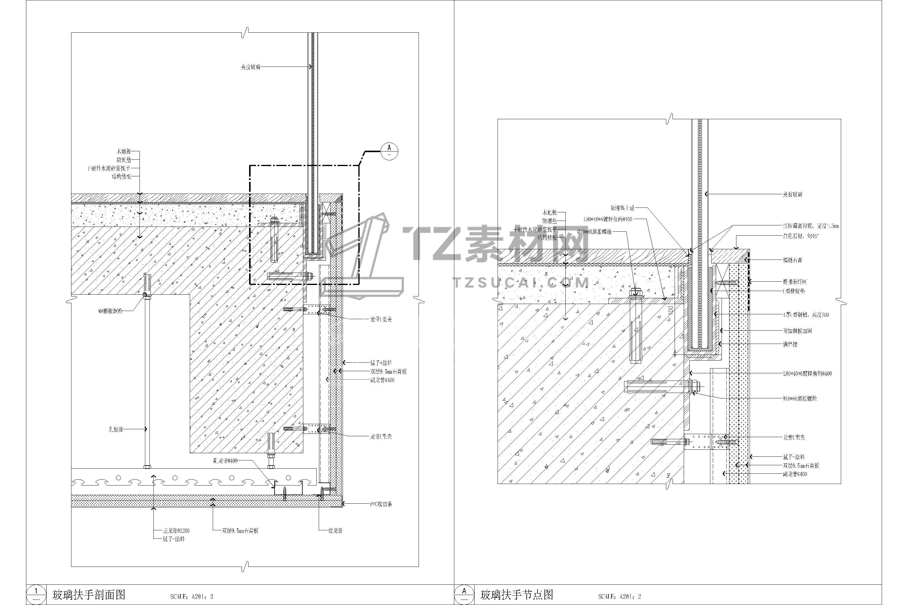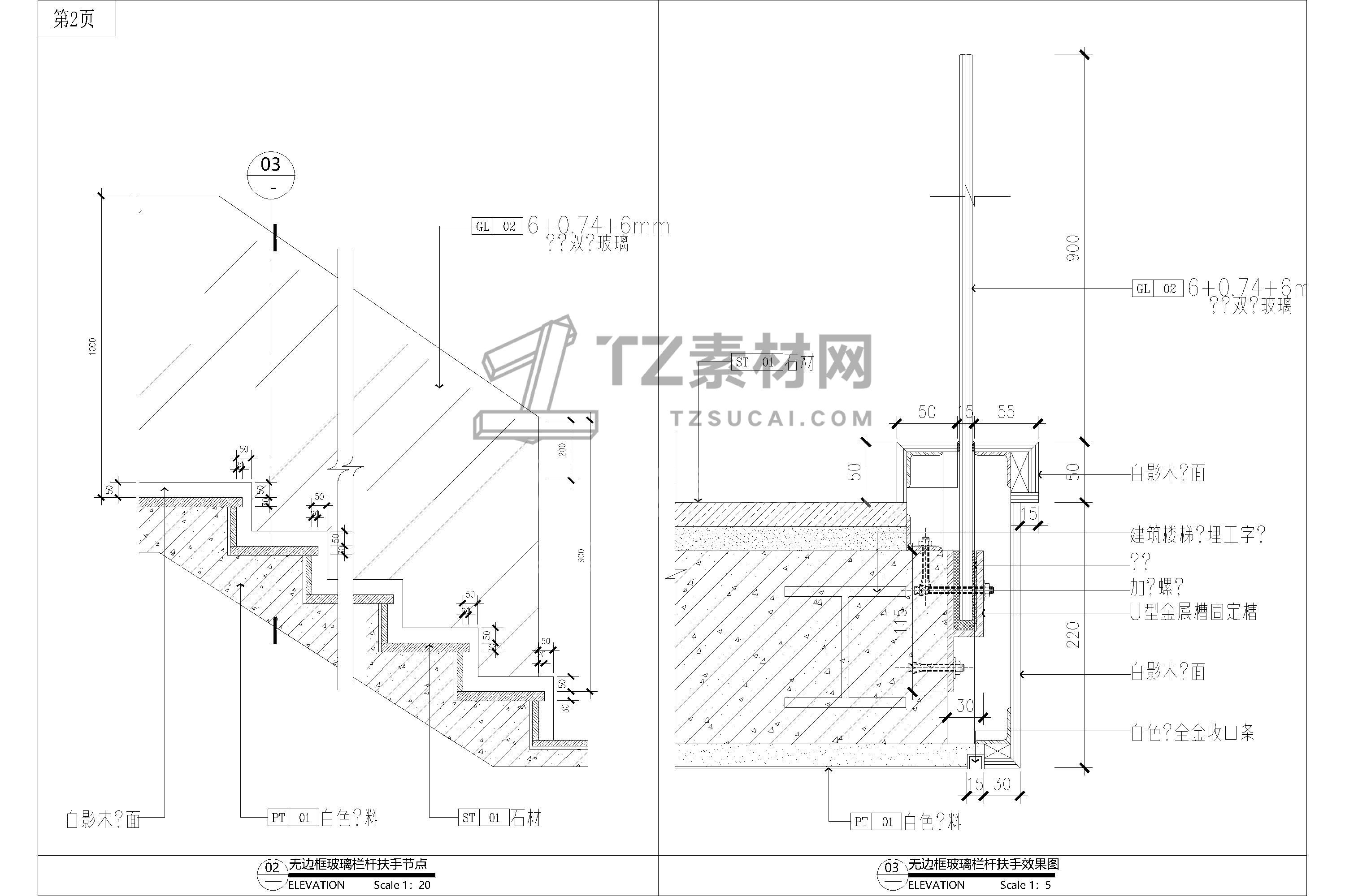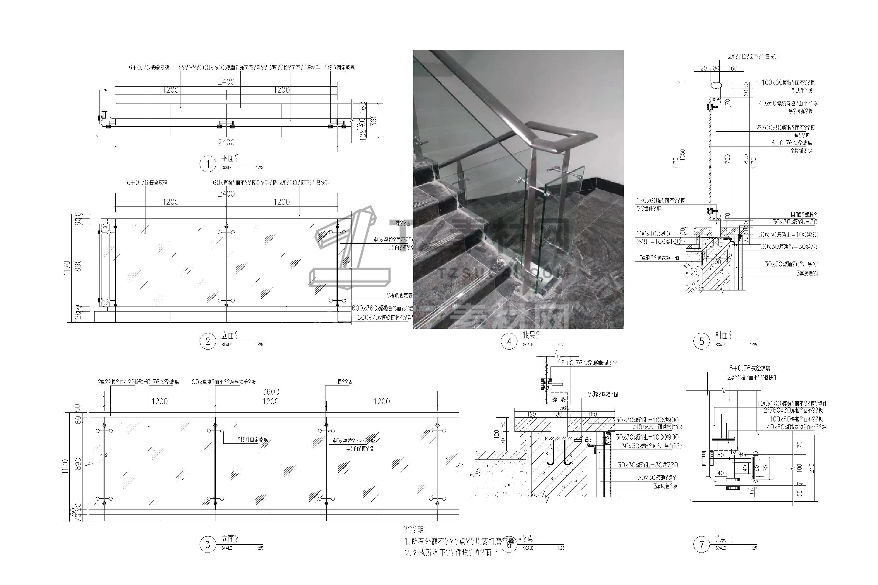 玻璃栏杆CAD 玻璃扶手CAD 楼梯无边框节点CAD 楼梯玻璃扶手CAD 楼梯玻璃栏杆CAD