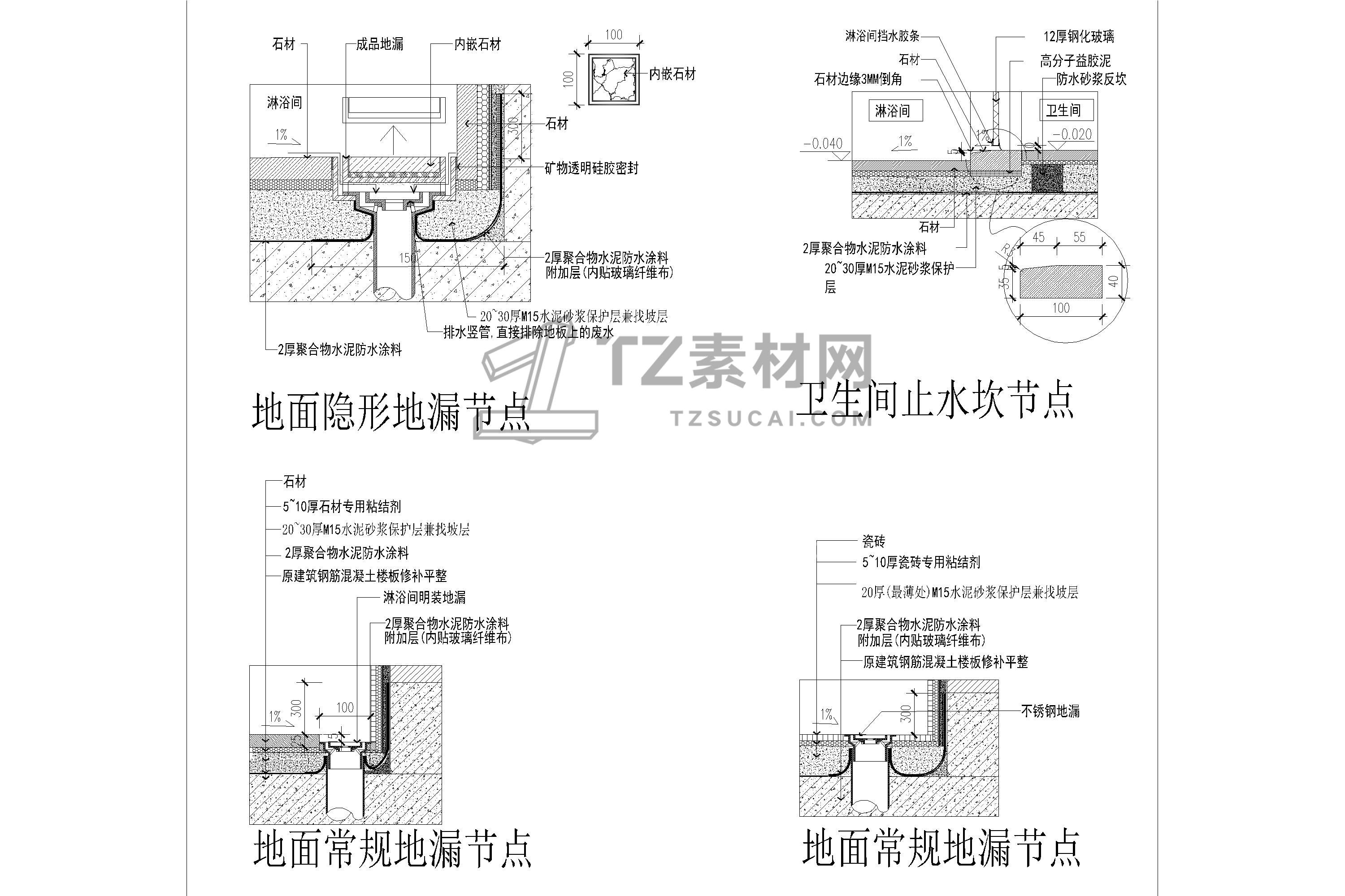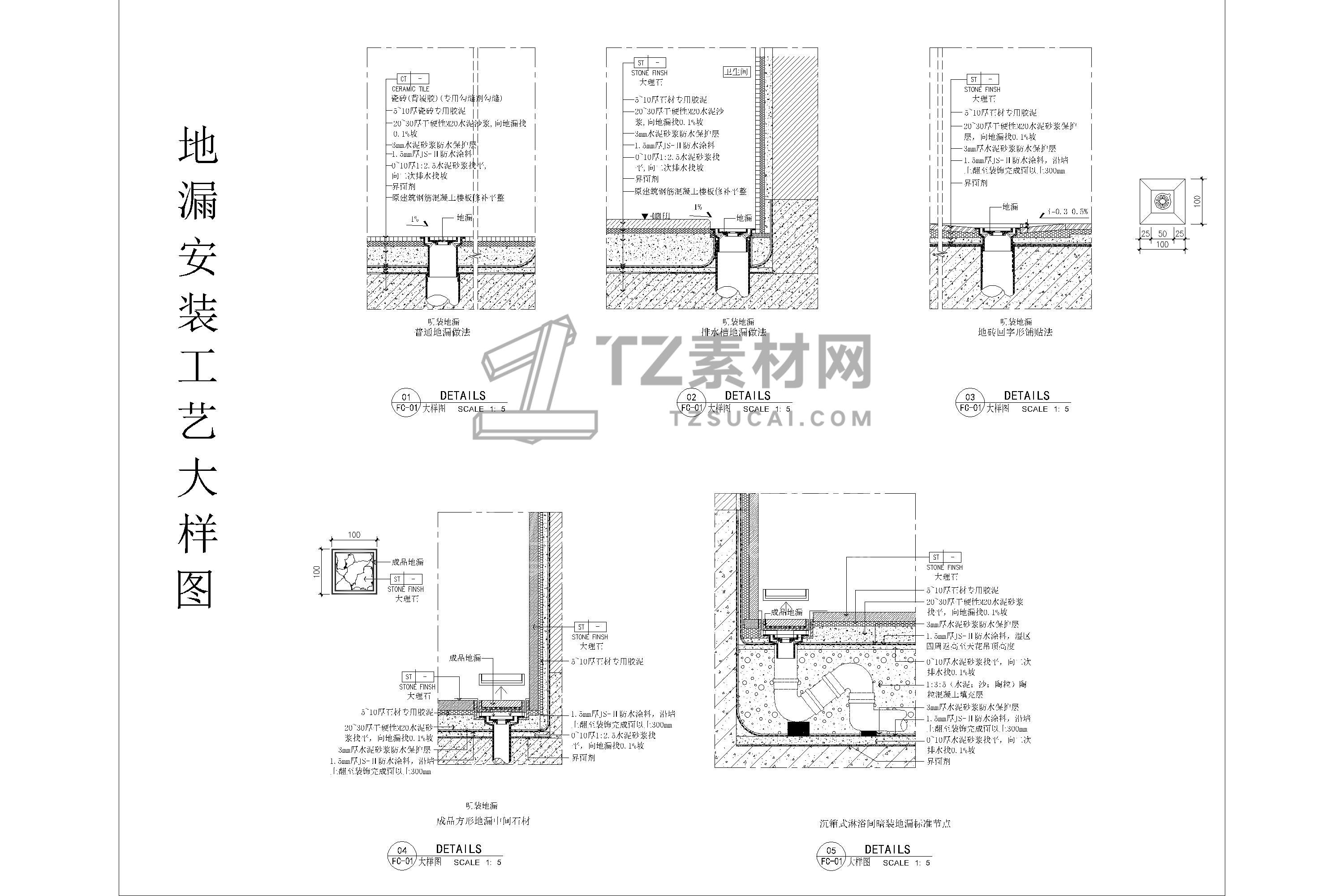 室内地漏节点CAD 地漏CAD 卫生间排水CAD 卫生间排水节点CAD 卫生间排水口节点CAD