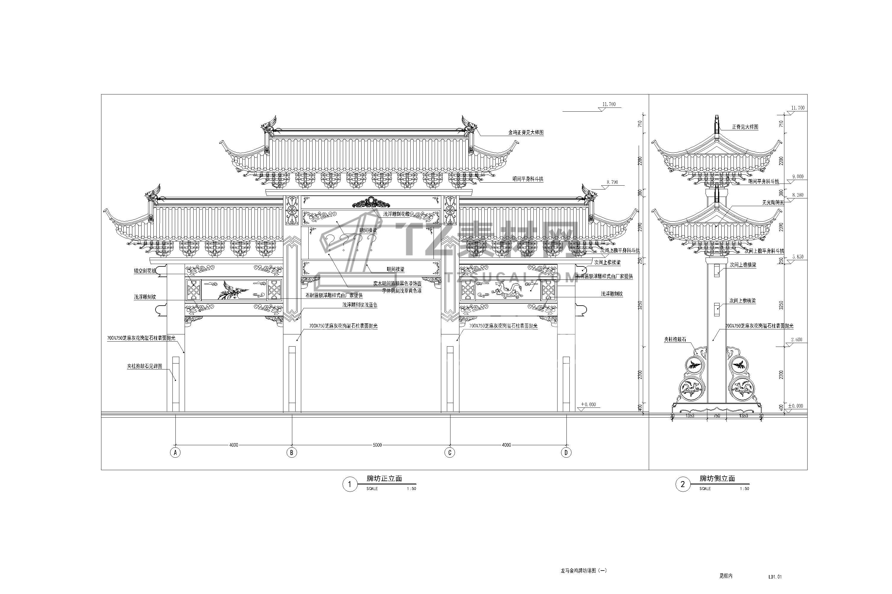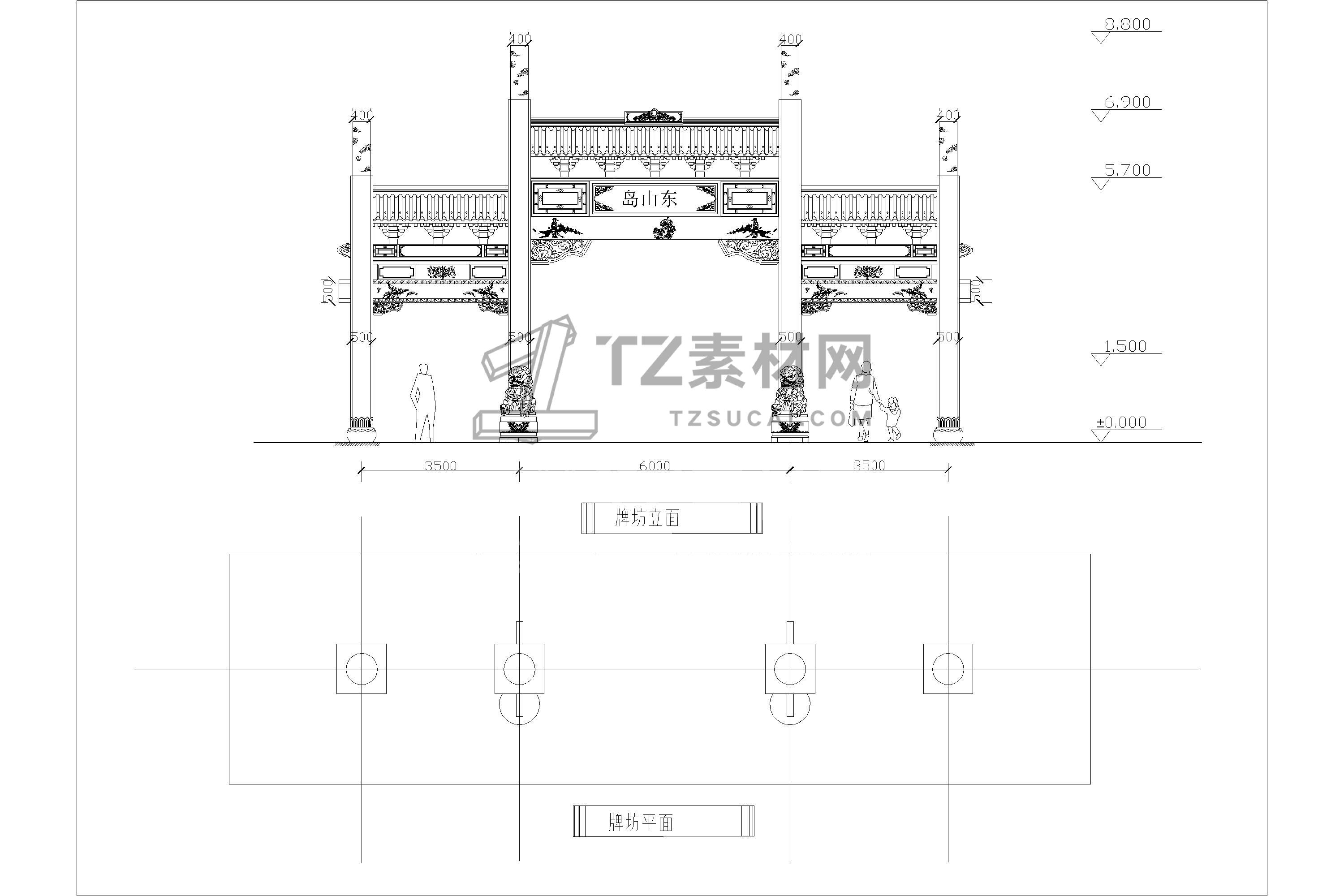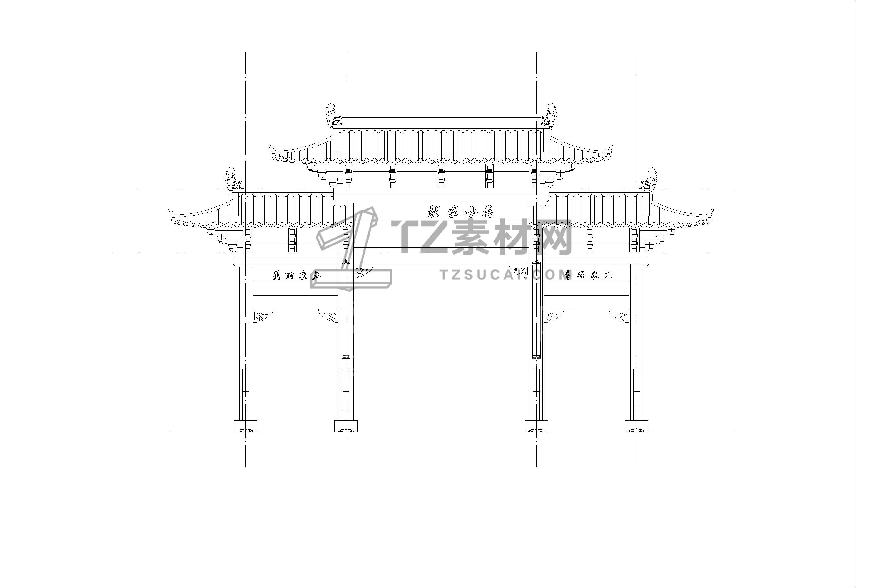 中式牌坊CAD 牌楼CAD 古建筑CAD 古镇商业街入口CAD