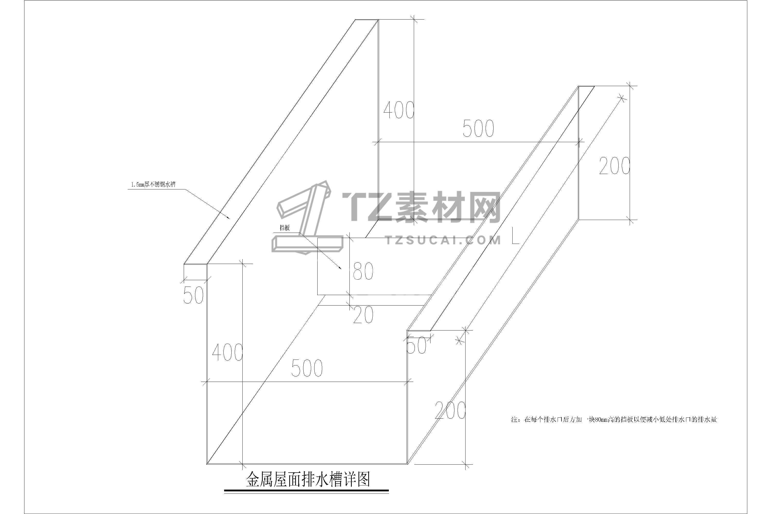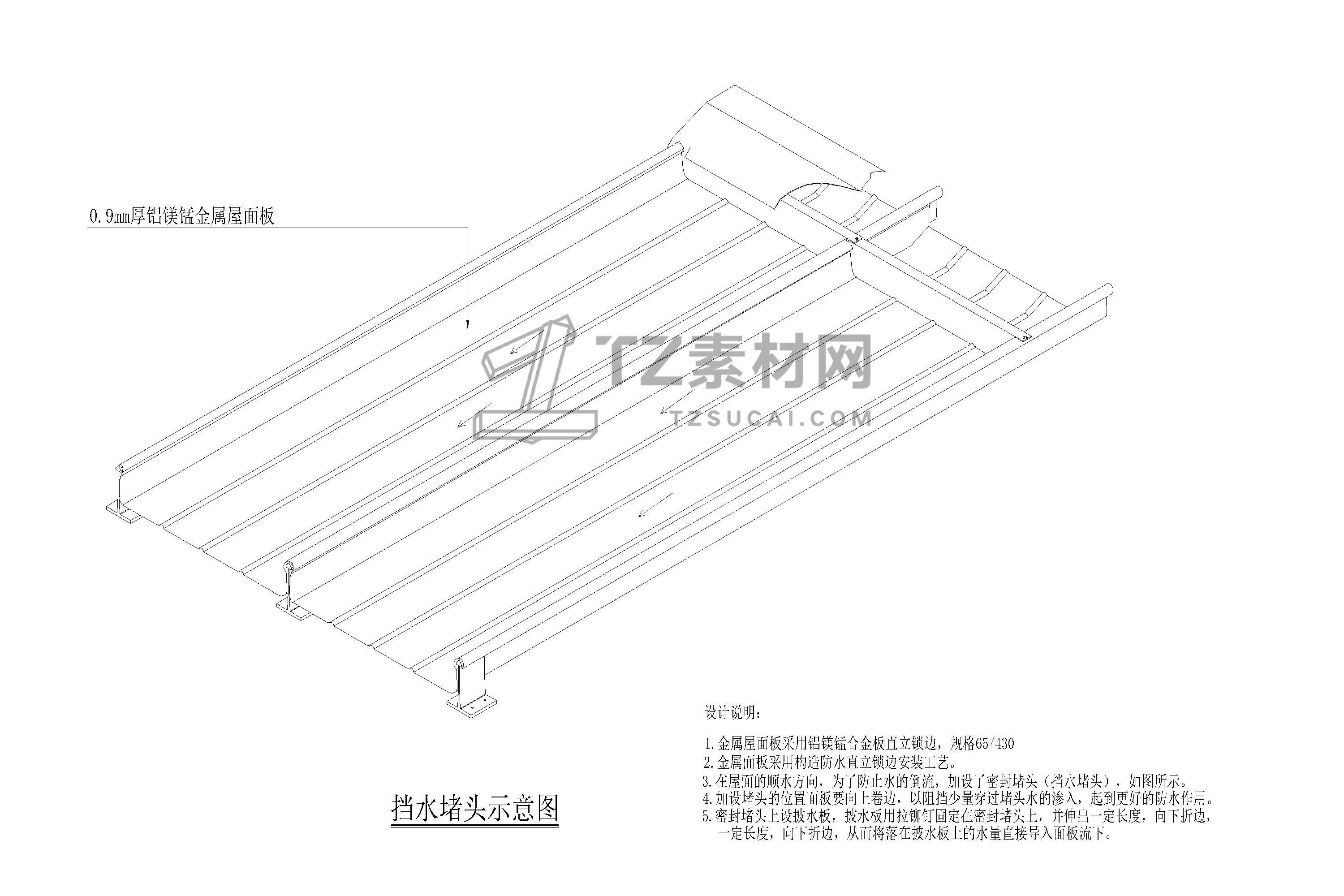金属屋面CAD 金属屋顶CAD 铝镁锰屋面CAD屋面排水槽