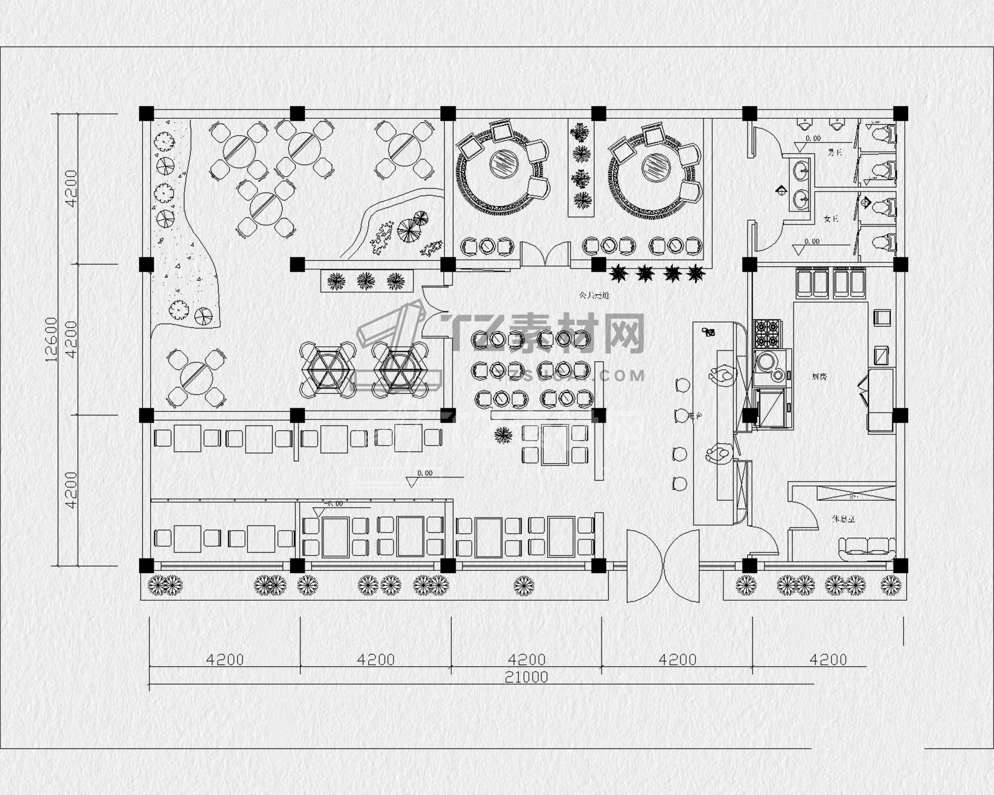 茶餐厅CAD平面布置图 快餐厅CAD 餐饮空间CAD 工装餐厅CAD