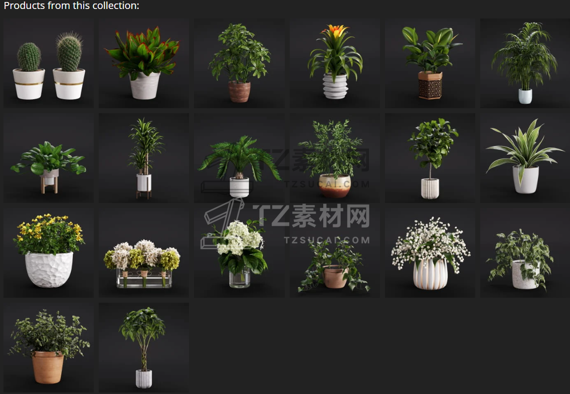 Archmodels vol. 282系列包括20种高质量的室内植物模型。由于这个集合,你可以丰富你的形象,使你的投资组合更有吸引力。所有植物都应用了材质并准备渲染。使用此集合,您可以免费获得在3ds Max中为Corona和Vray制作的陈列室的封面场景。该系列包含室内设计中受欢迎的物种:仙人掌、Aglaonema、矮伞、Guzmania、橡皮筋榕、Areka、Pothos Marble Queen、龙血树、苏铁、Evergemensis、白英榕、紫露草、木槿、绣球花、Hortensia、常春藤、铃兰、喜林芋、Callisia Repens Care、Pachira Aquatica。