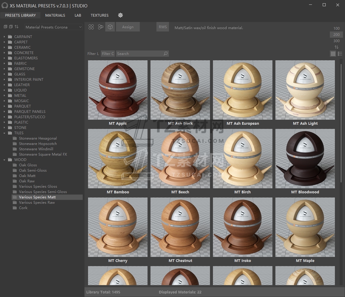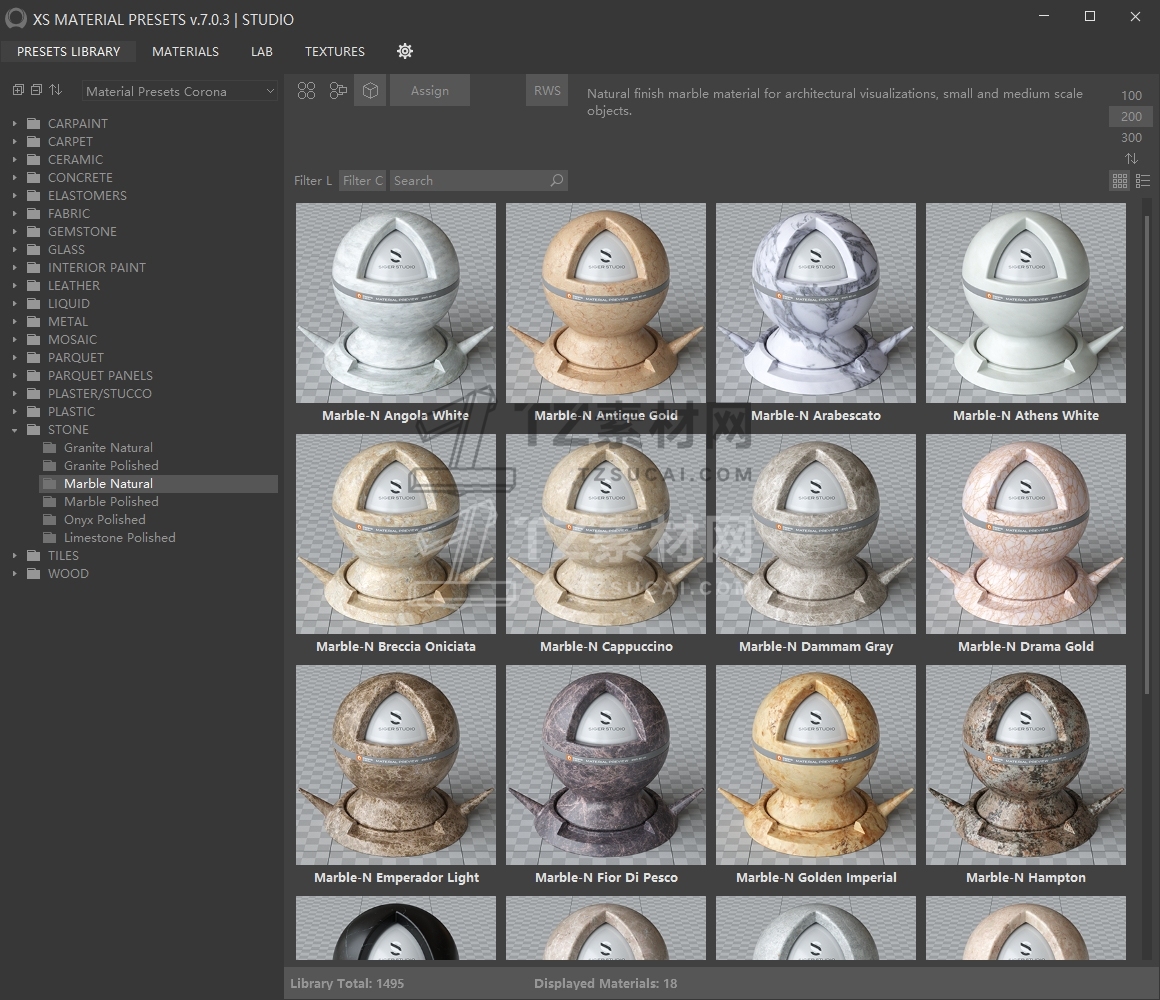 简称XSMP材质库,支持渲染器:V-Ray渲染器,Corona渲染器,Red Shift渲染器,几乎涵盖所有室内外常用材质,4K+分辨率贴图,拖拽即用,极大的提升渲染质量和效率~