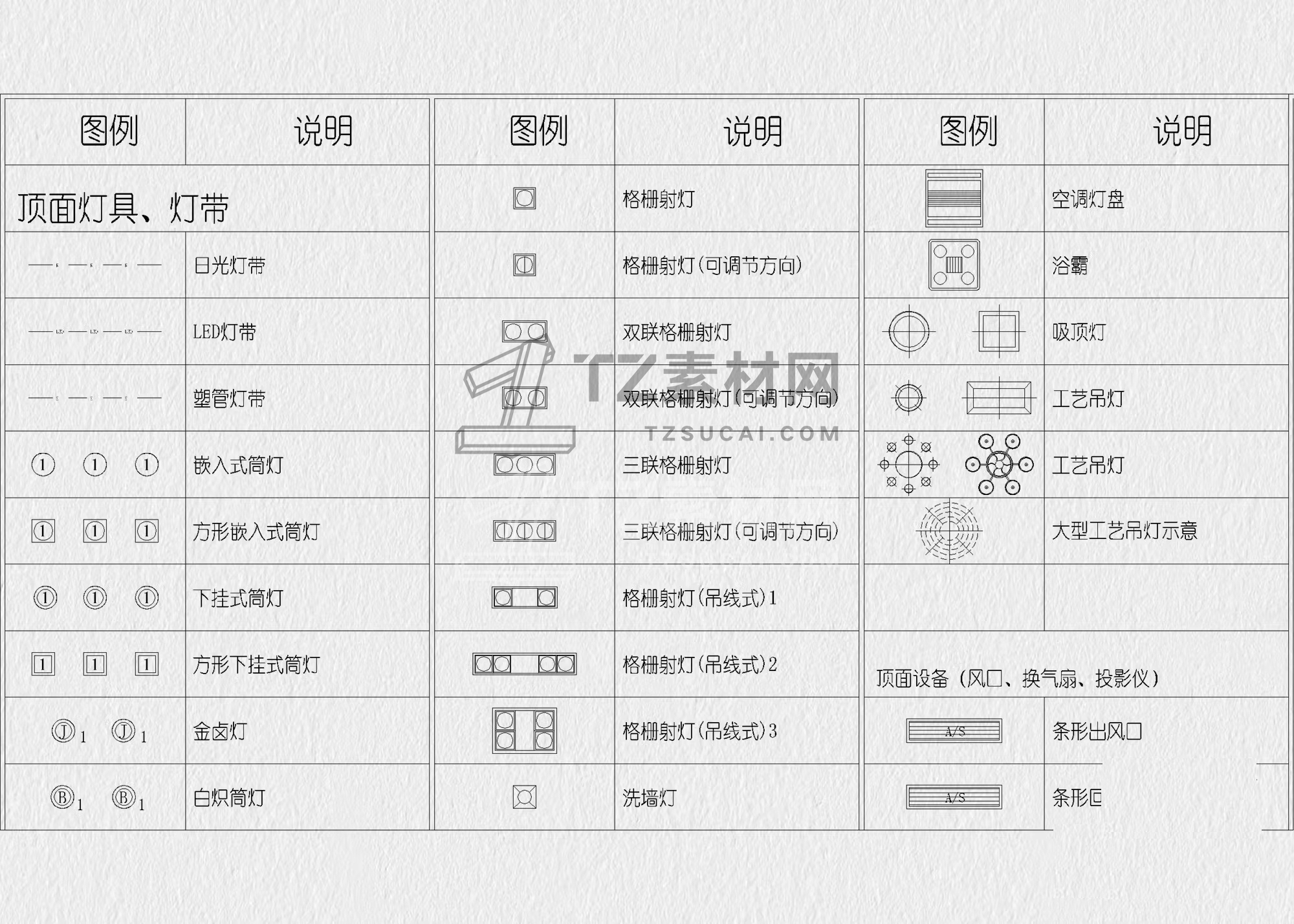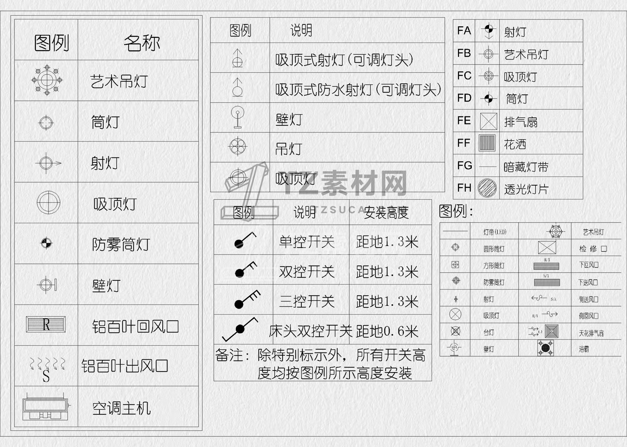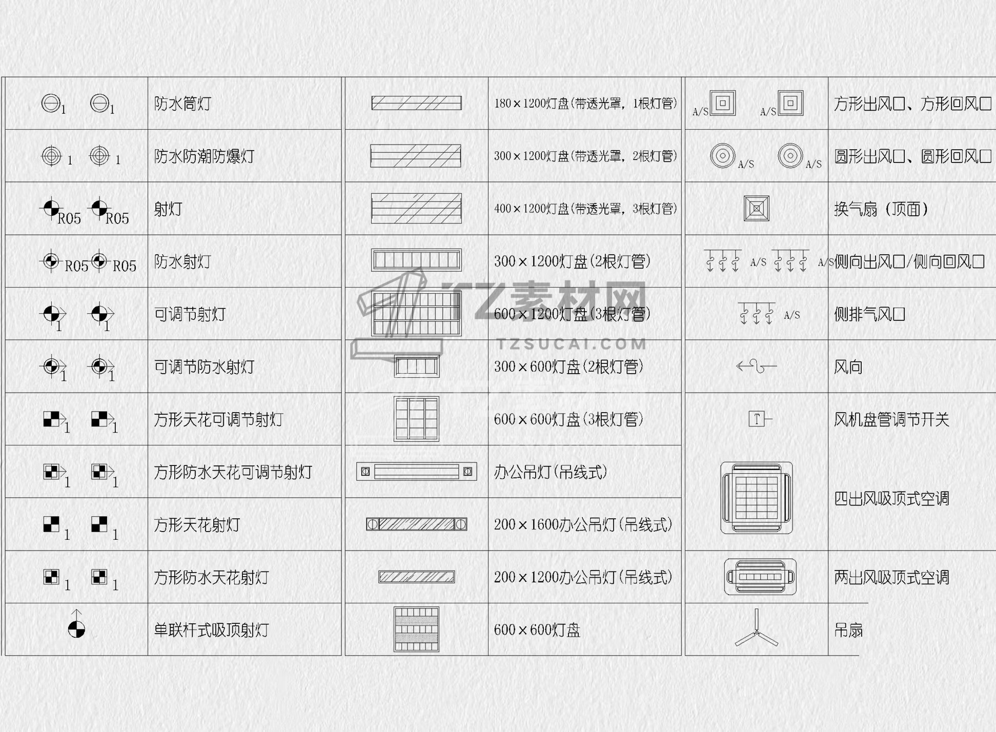 灯具图例CAD 灯具CAD 照明图例CAD 电气照明符号CAD 灯具符号CAD 制图规范CAD