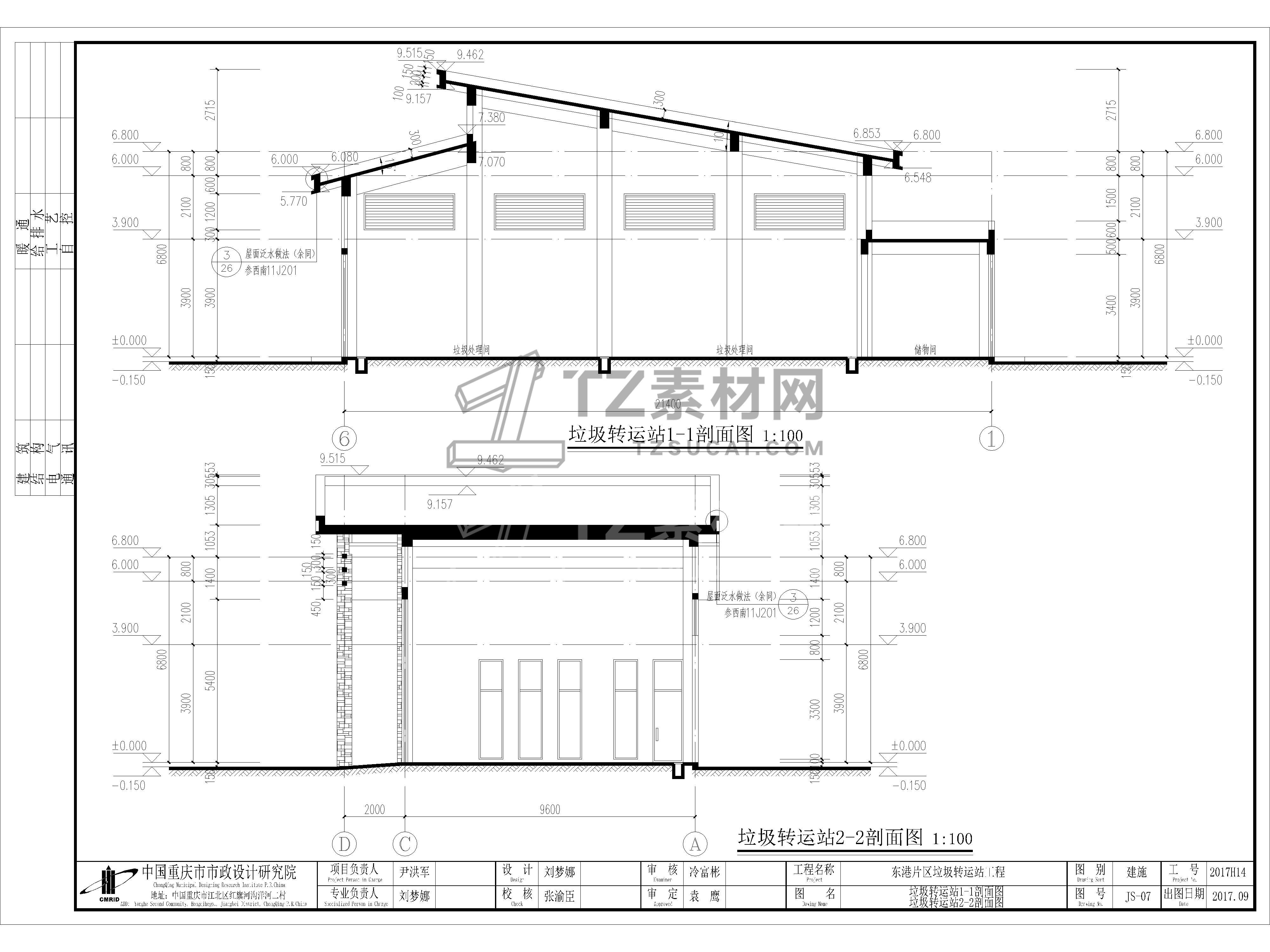 13套垃圾中转站压缩站转运站平面图建筑图CAD图纸