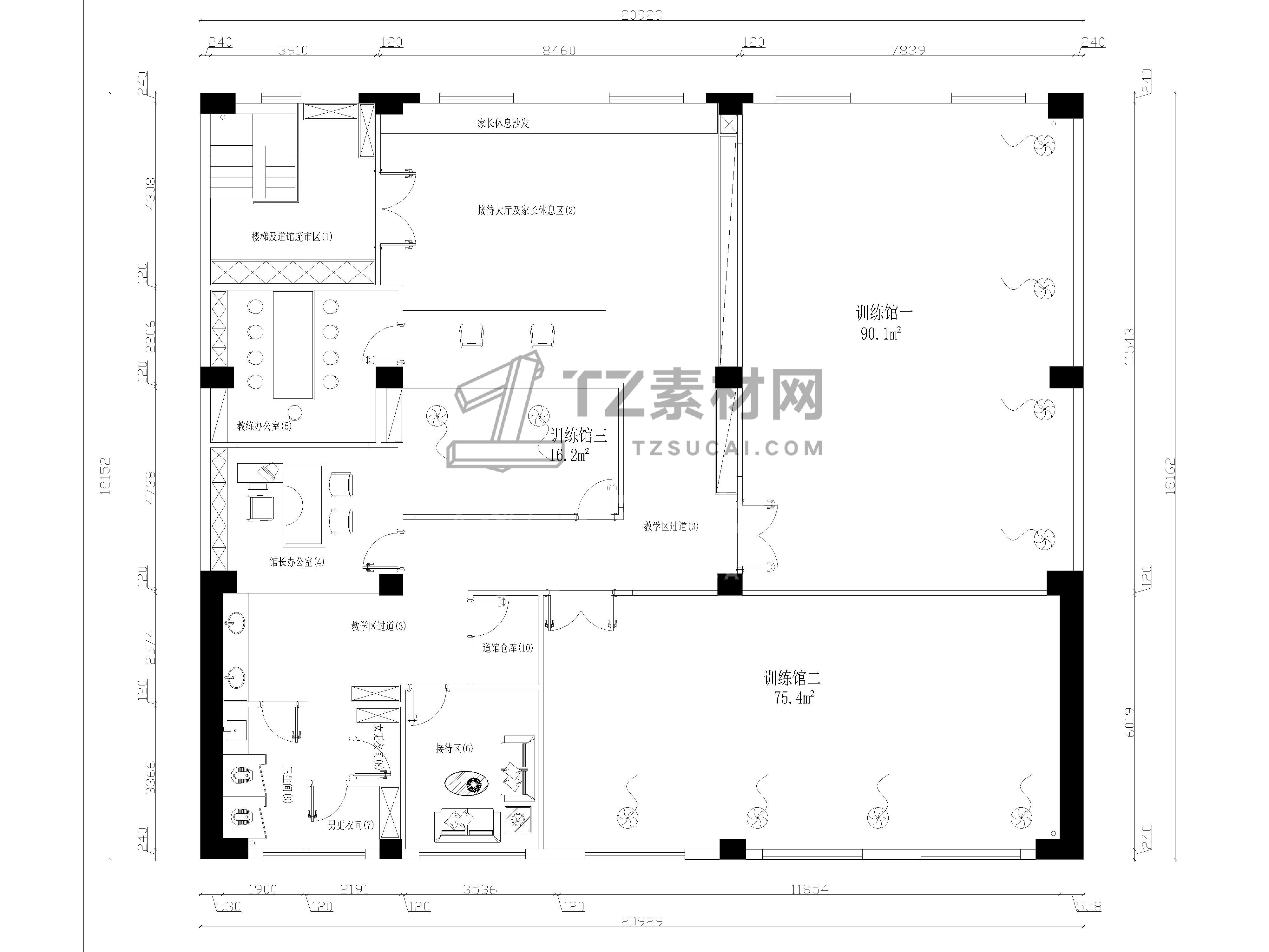 3套拳击馆武术馆搏击健身俱乐部CAD图纸