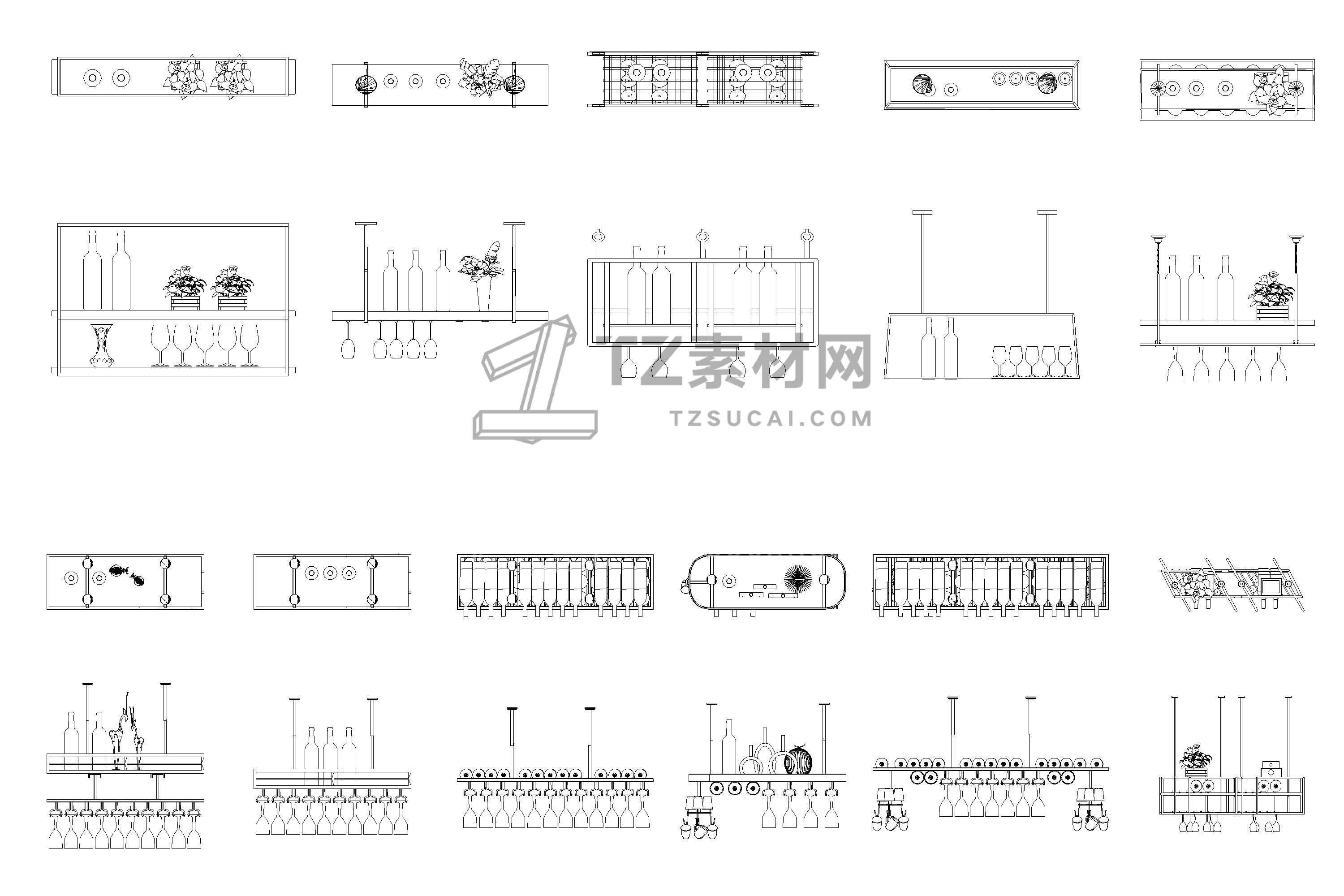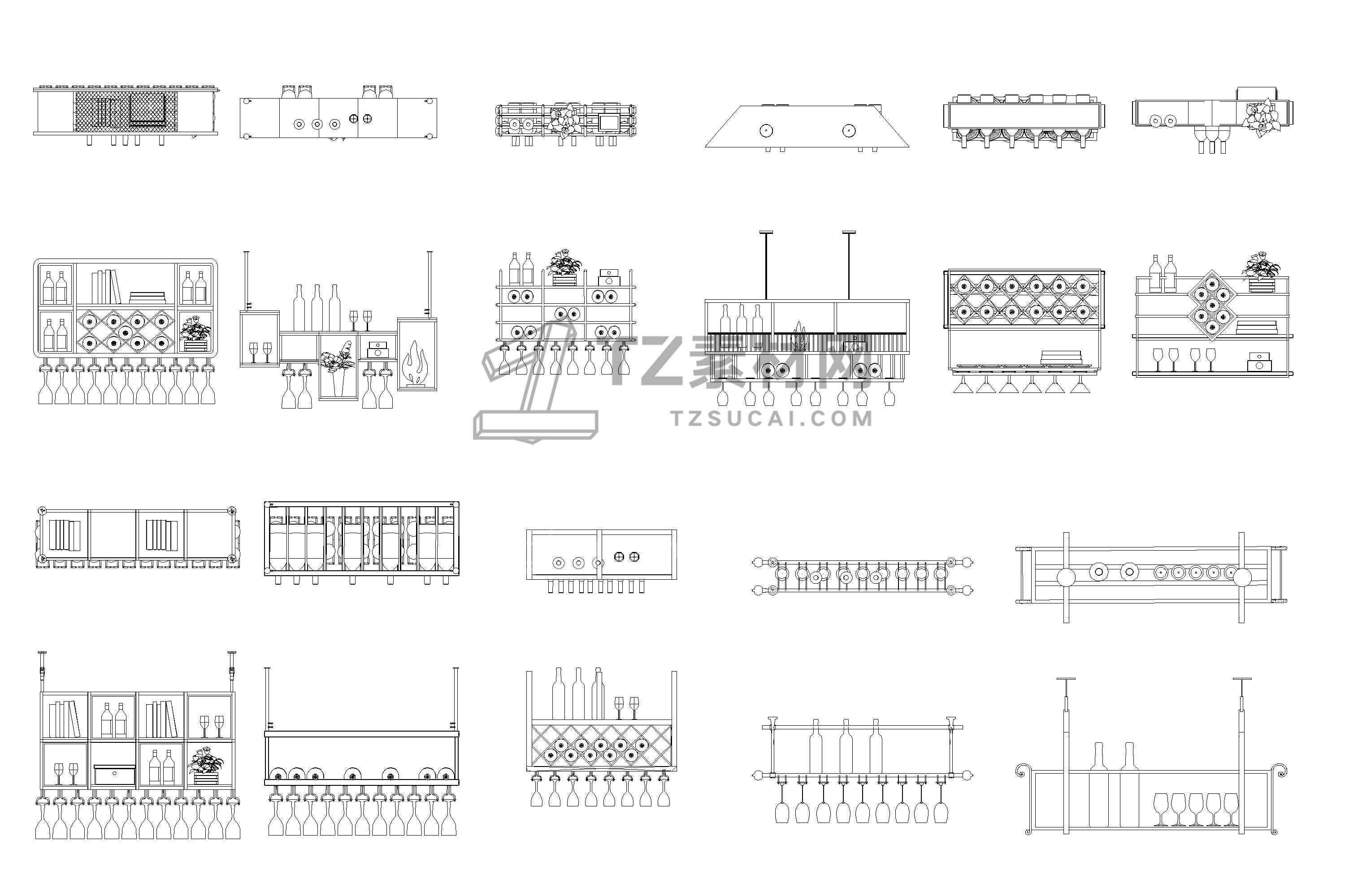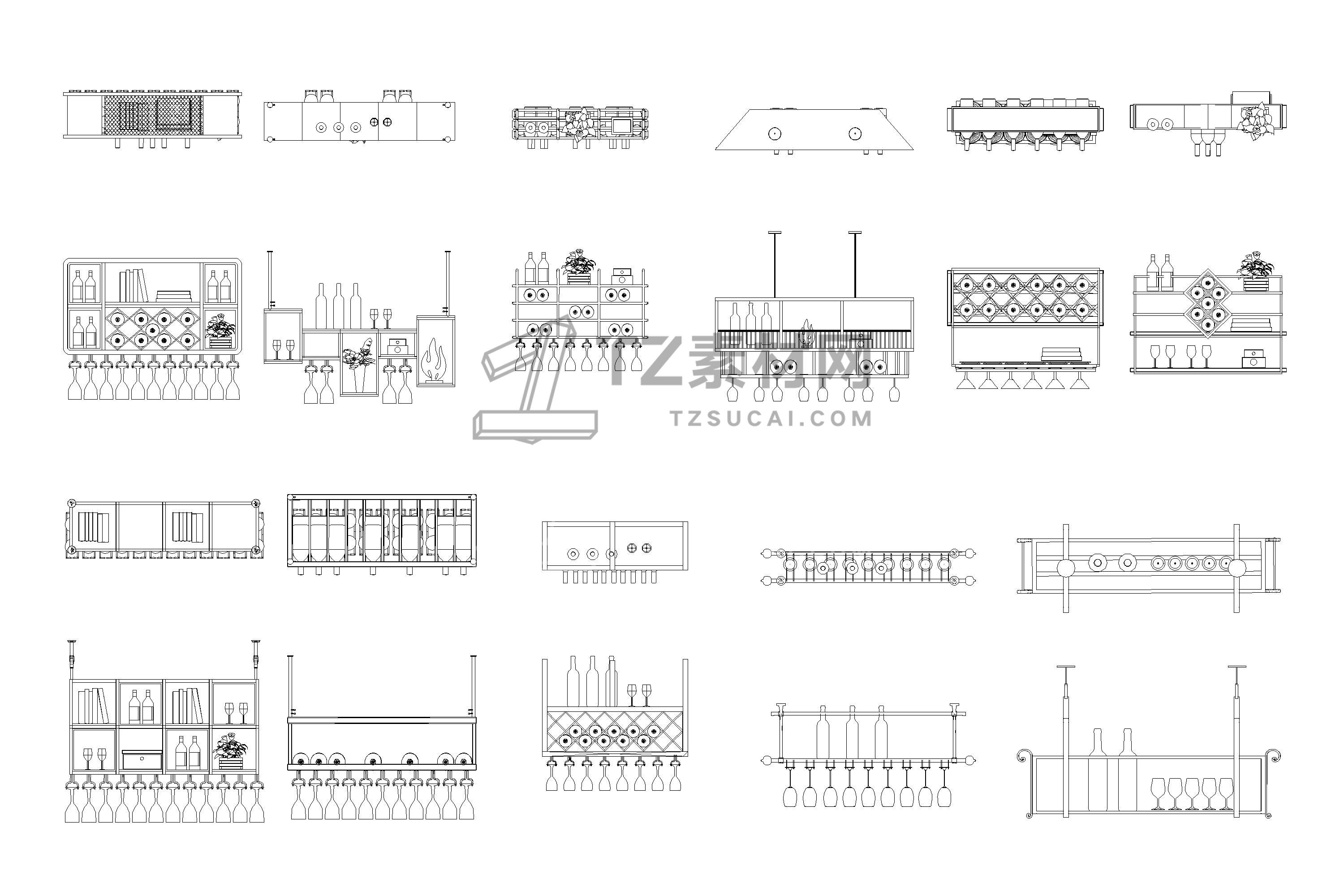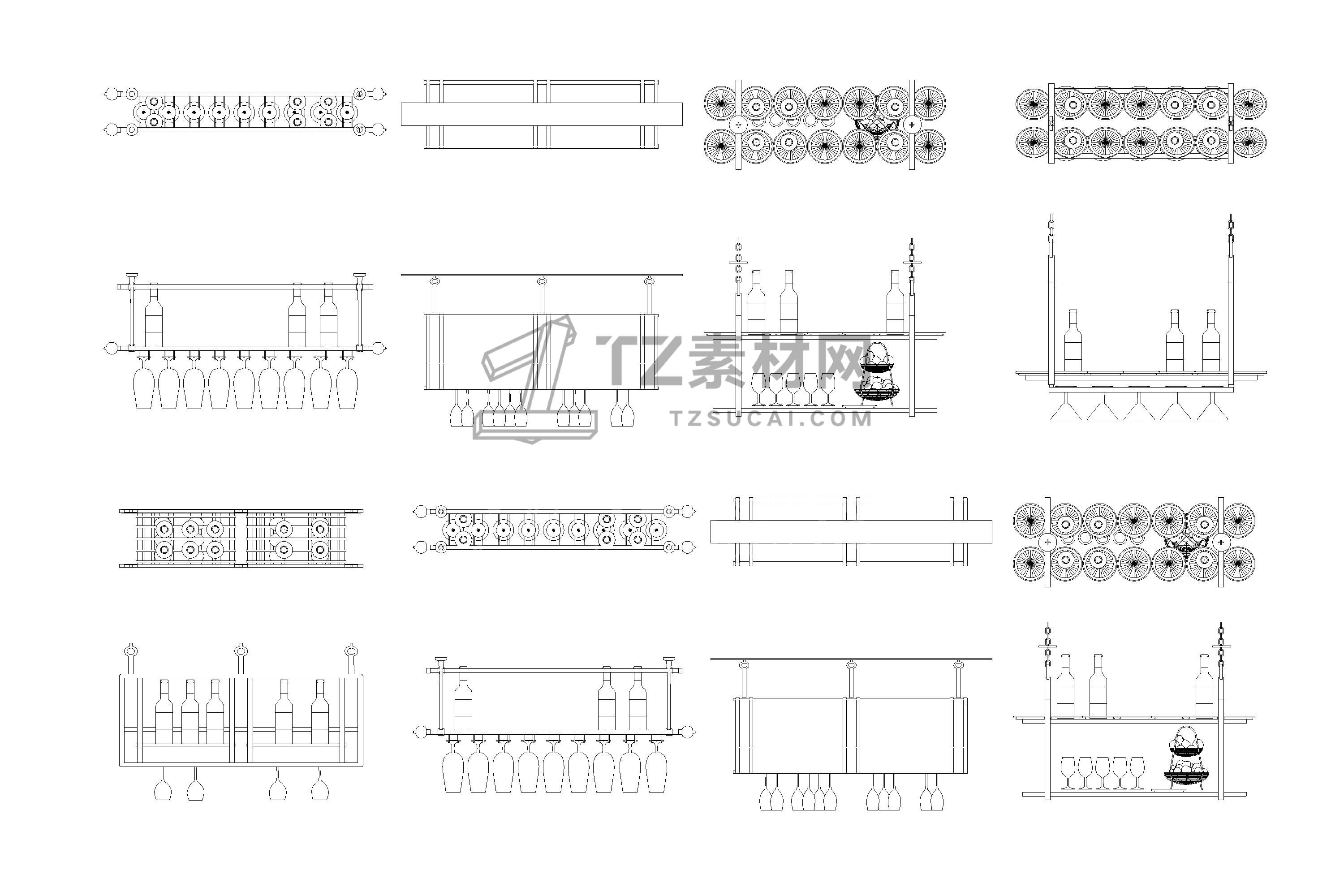 家具图库CAD 酒架CAD 陈列架CAD 酒杯CAD 酒瓶CAD 酒具CAD