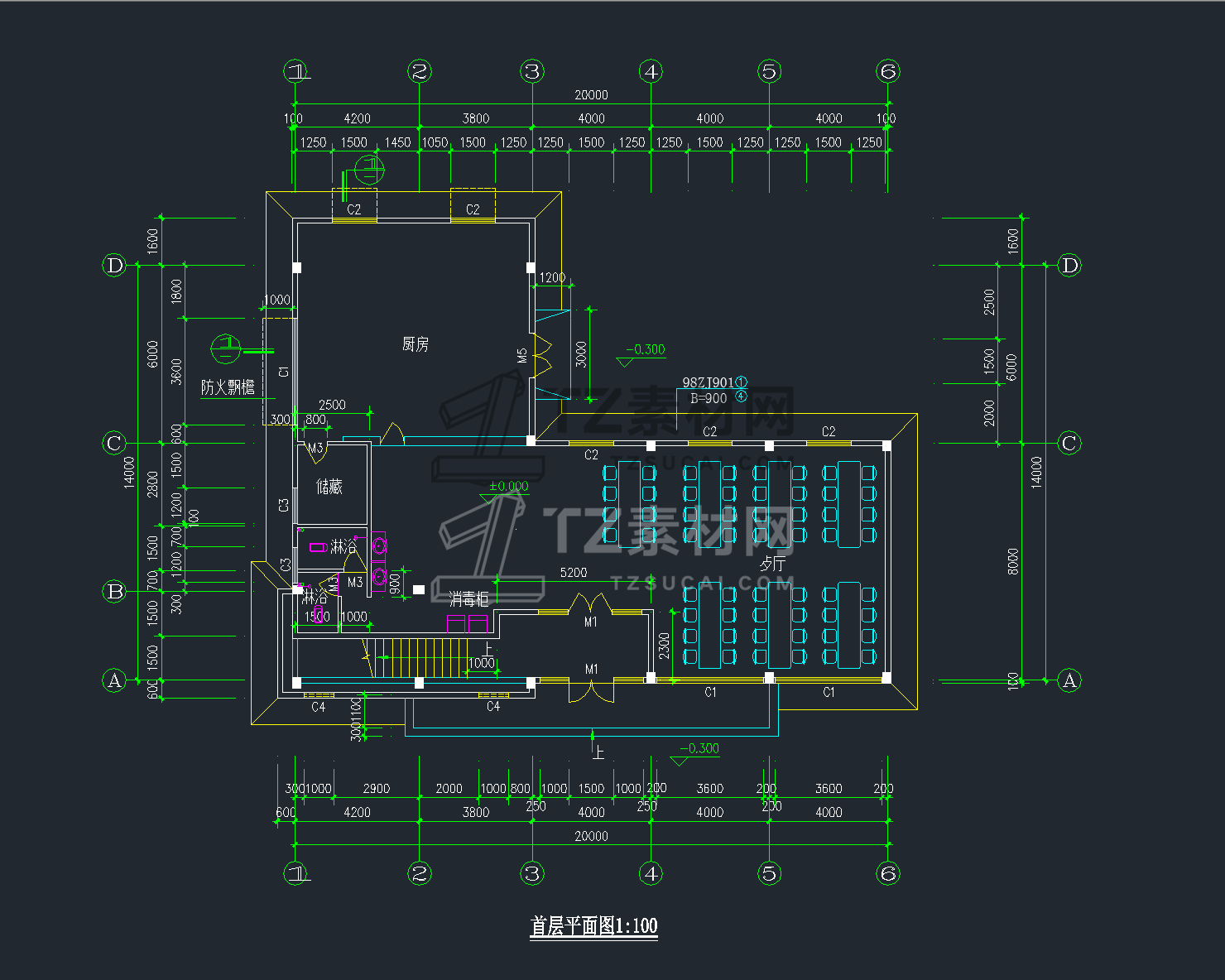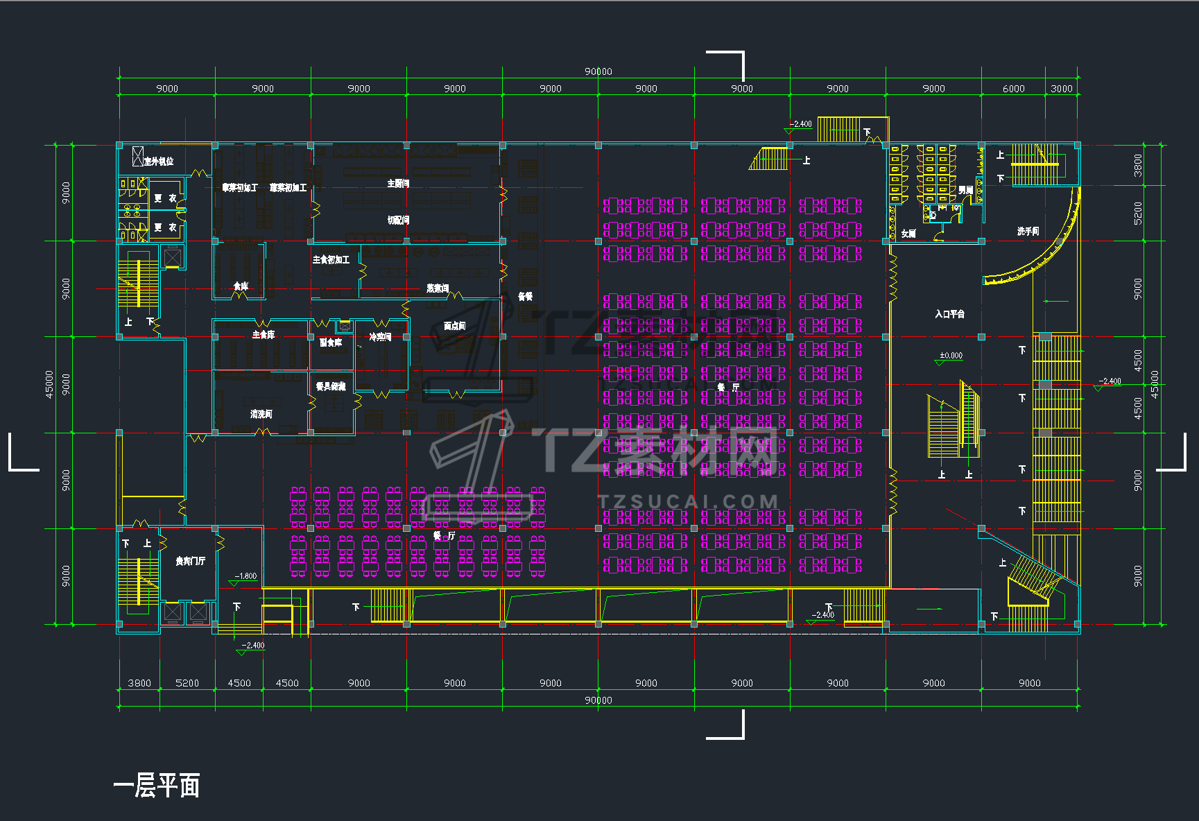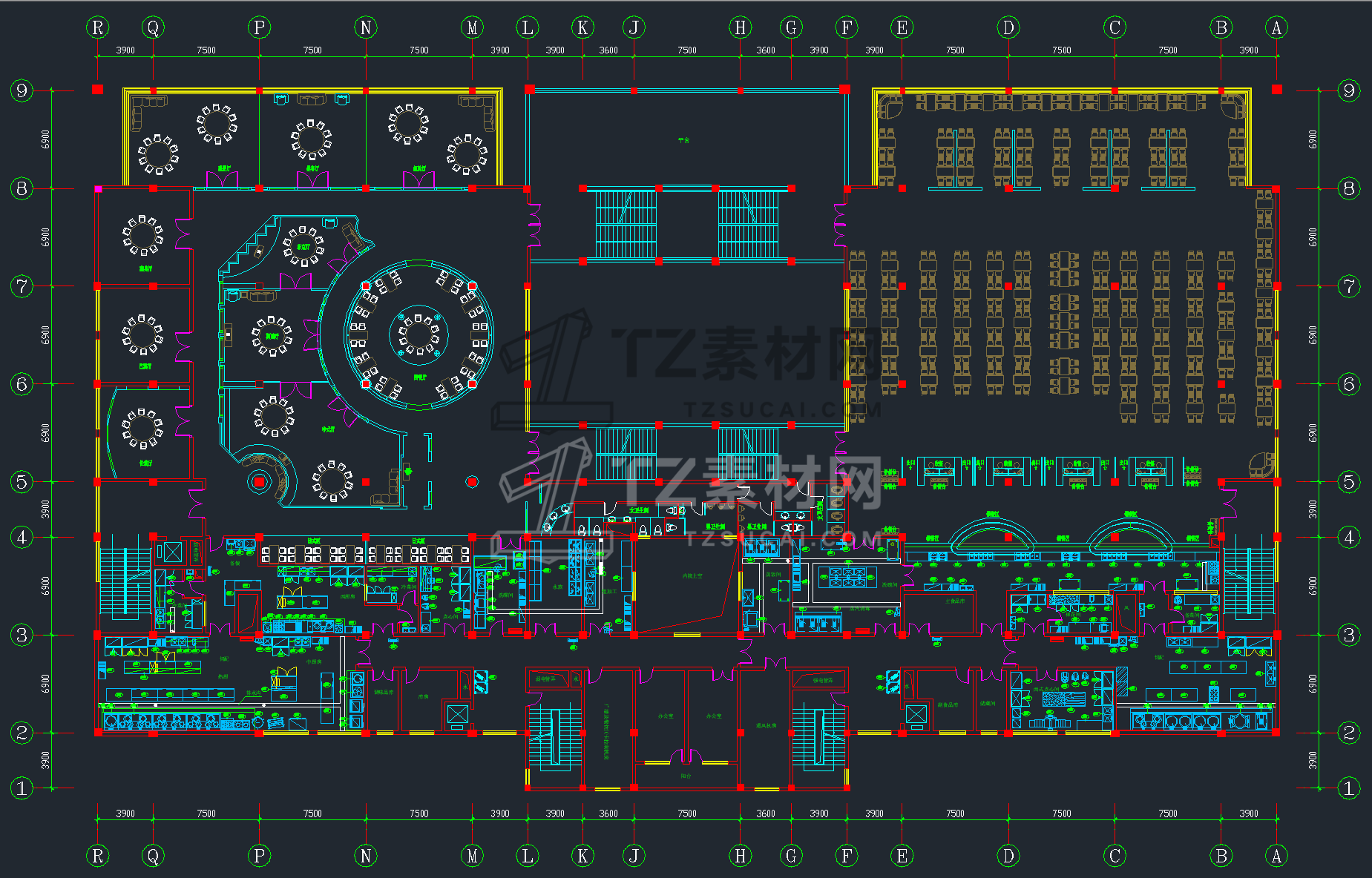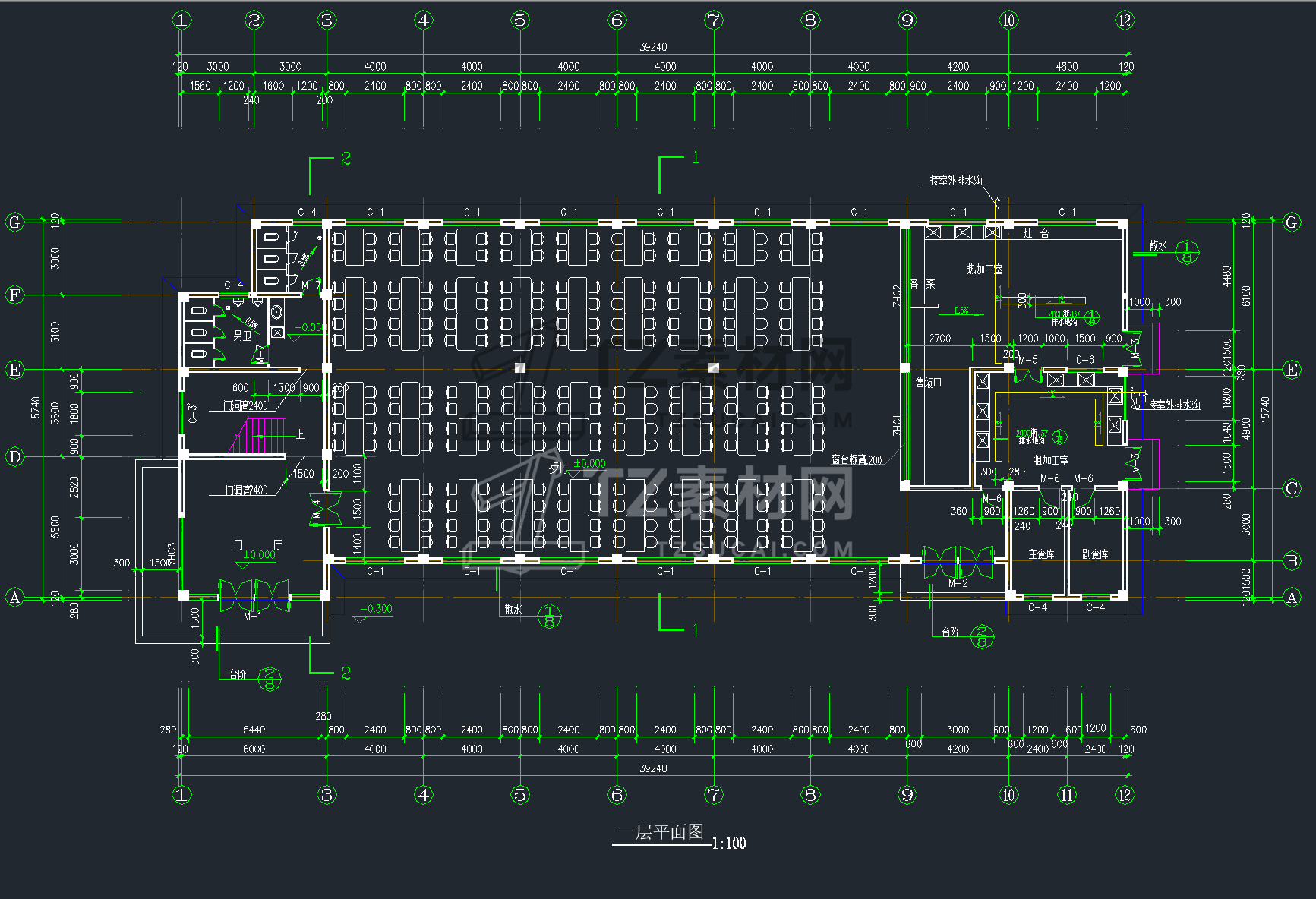 42套学生职工餐厅食堂建筑室内装修CAD施工图
