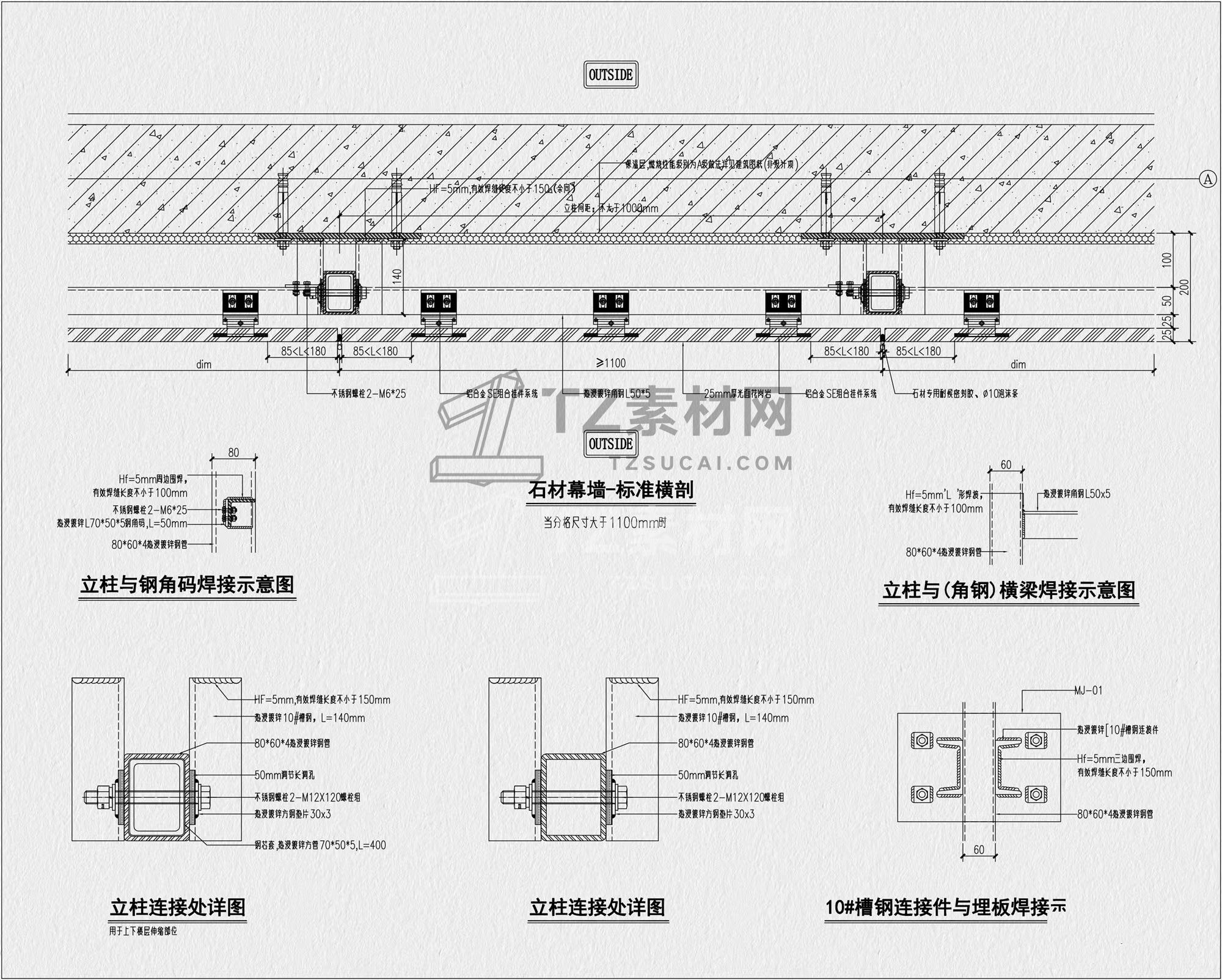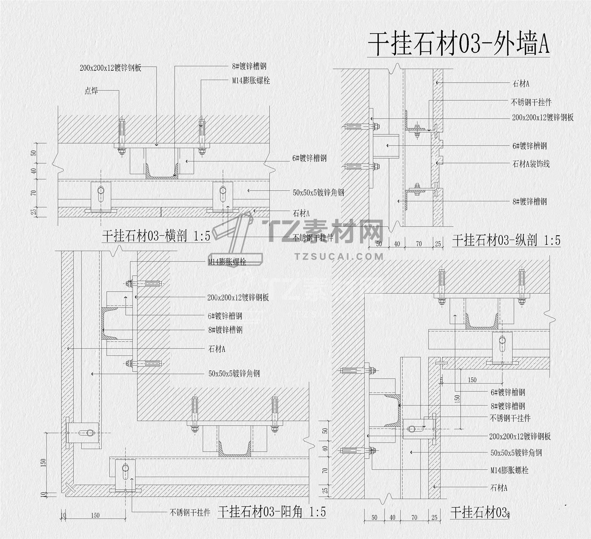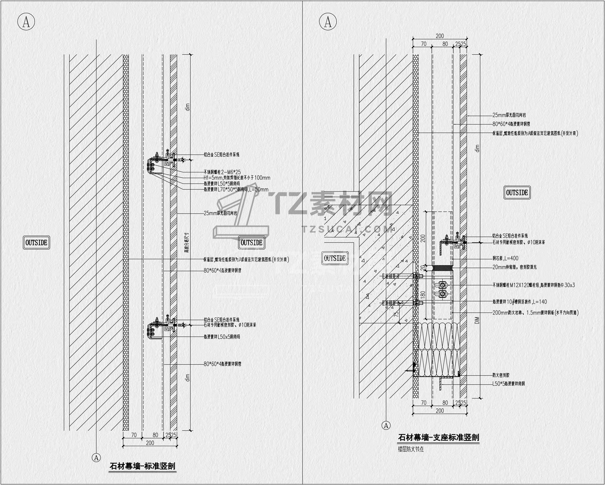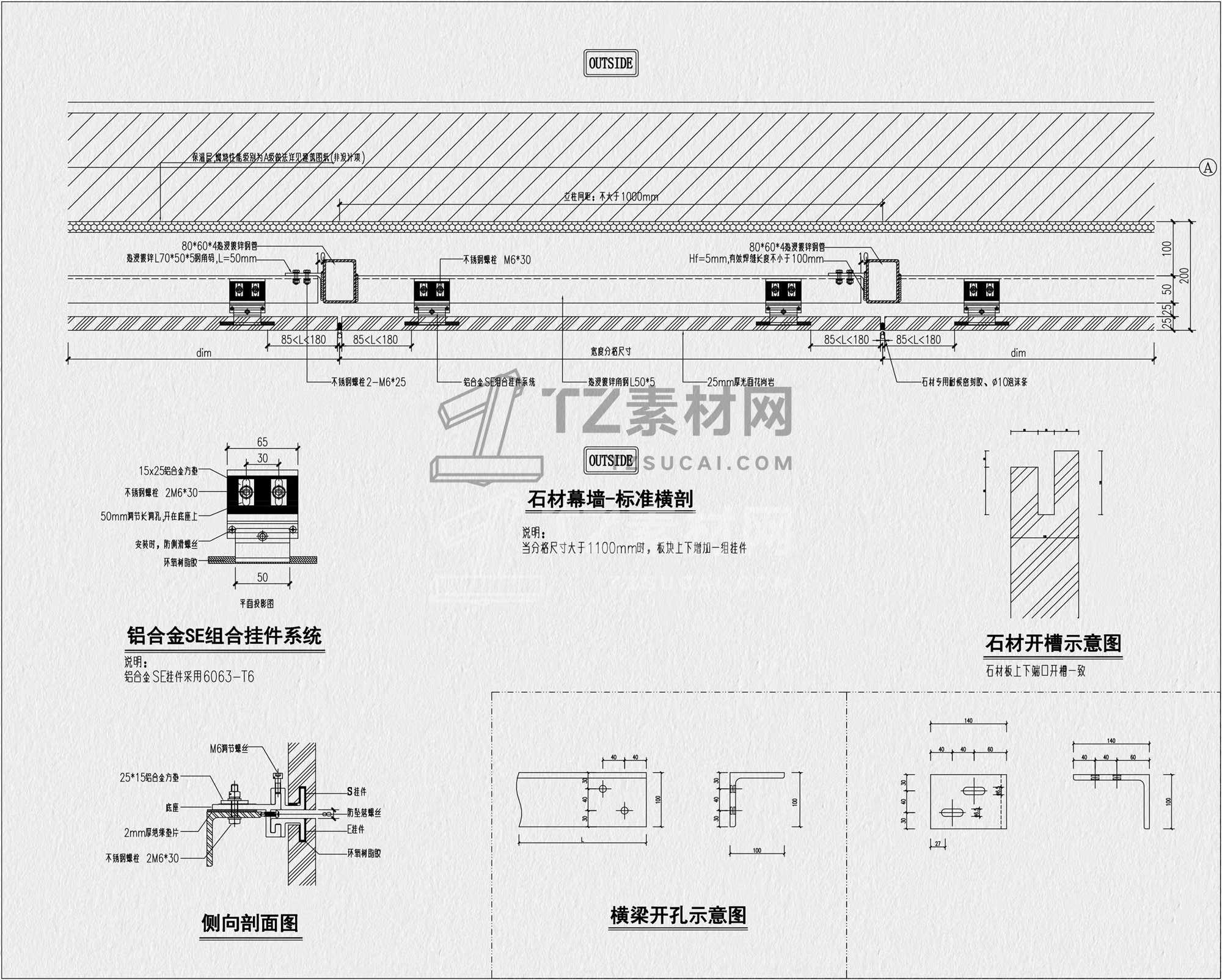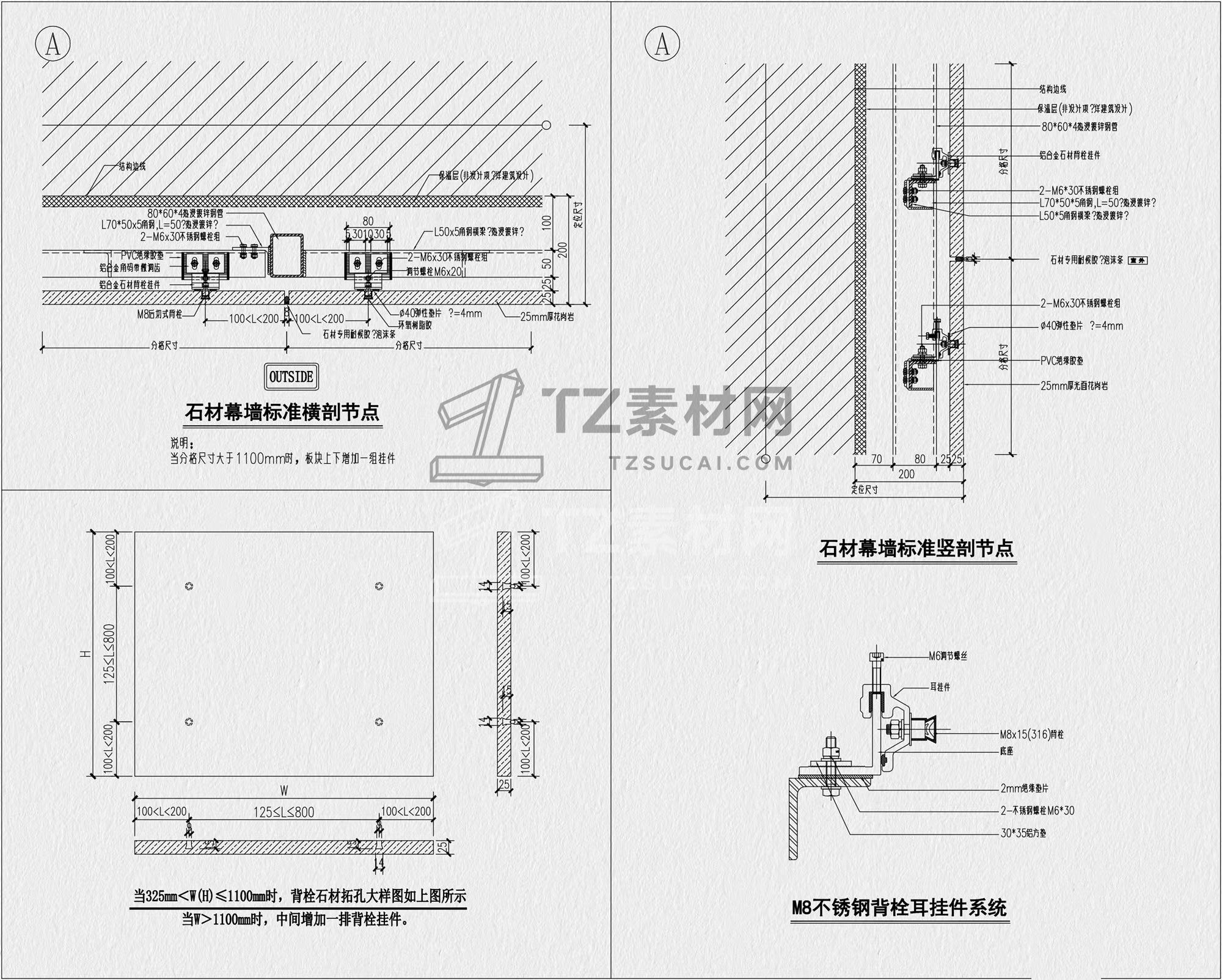石材节点CAD 干挂石材节点CAD 石材幕墙节点CAD 外墙石材节点CAD 干挂石材CAD 石材CAD