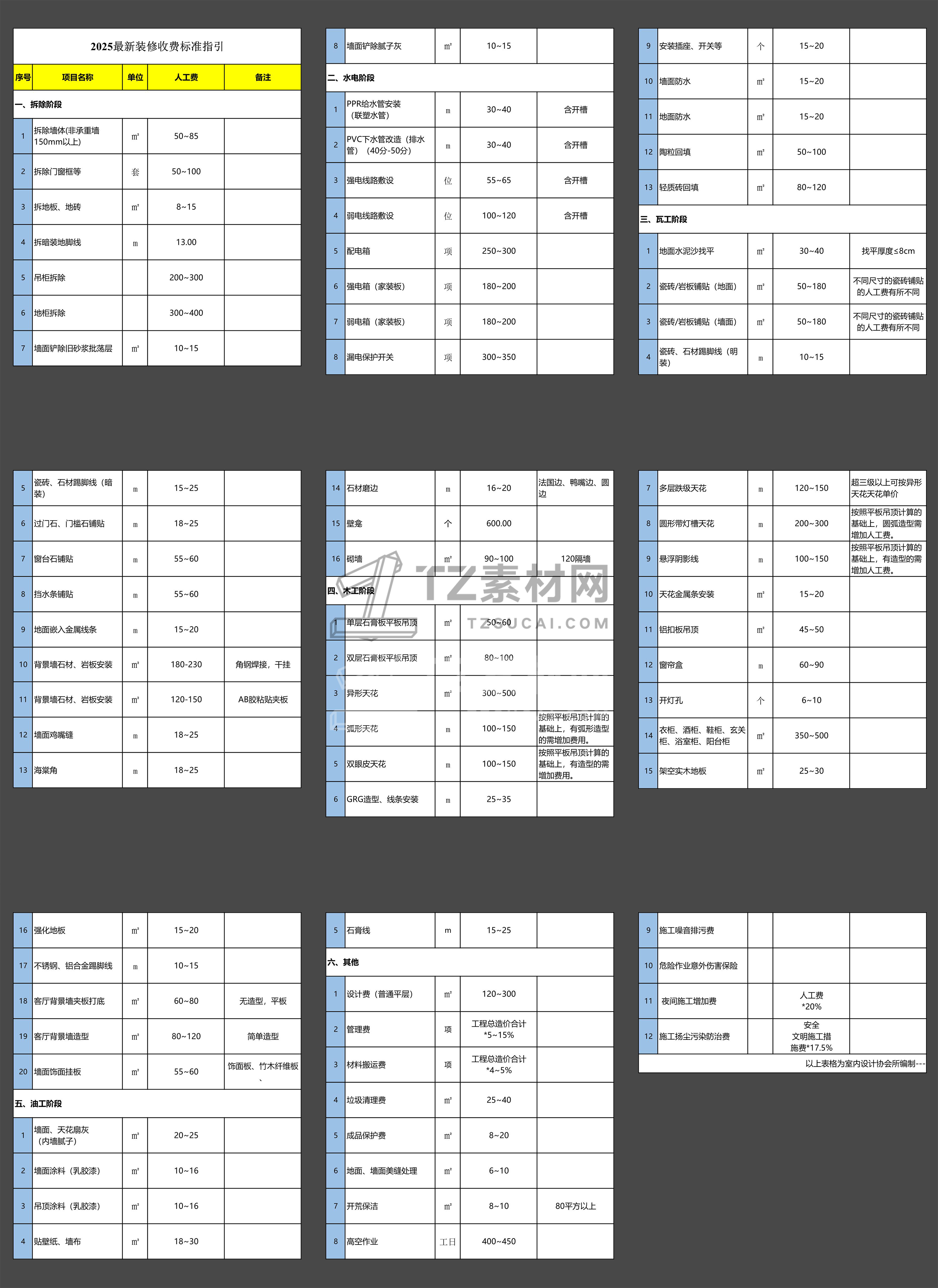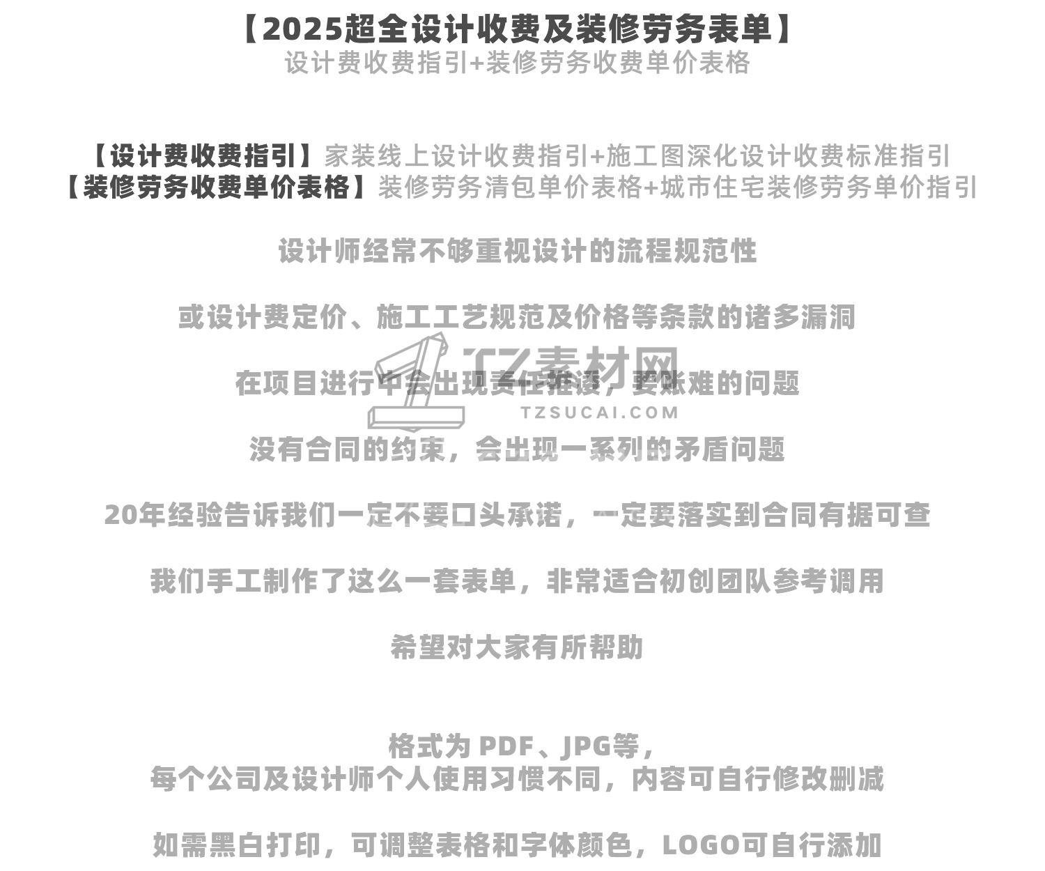 2025超全设计收费及装修劳务表单