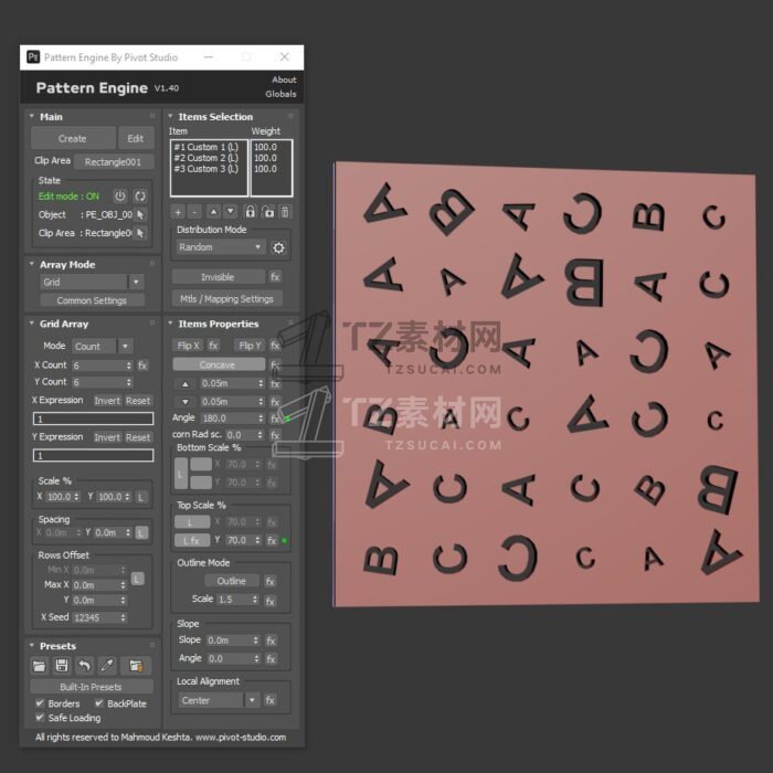 灵活的模式适应: 可以生成图案对象并适应任何 2D 平面、闭合形状。