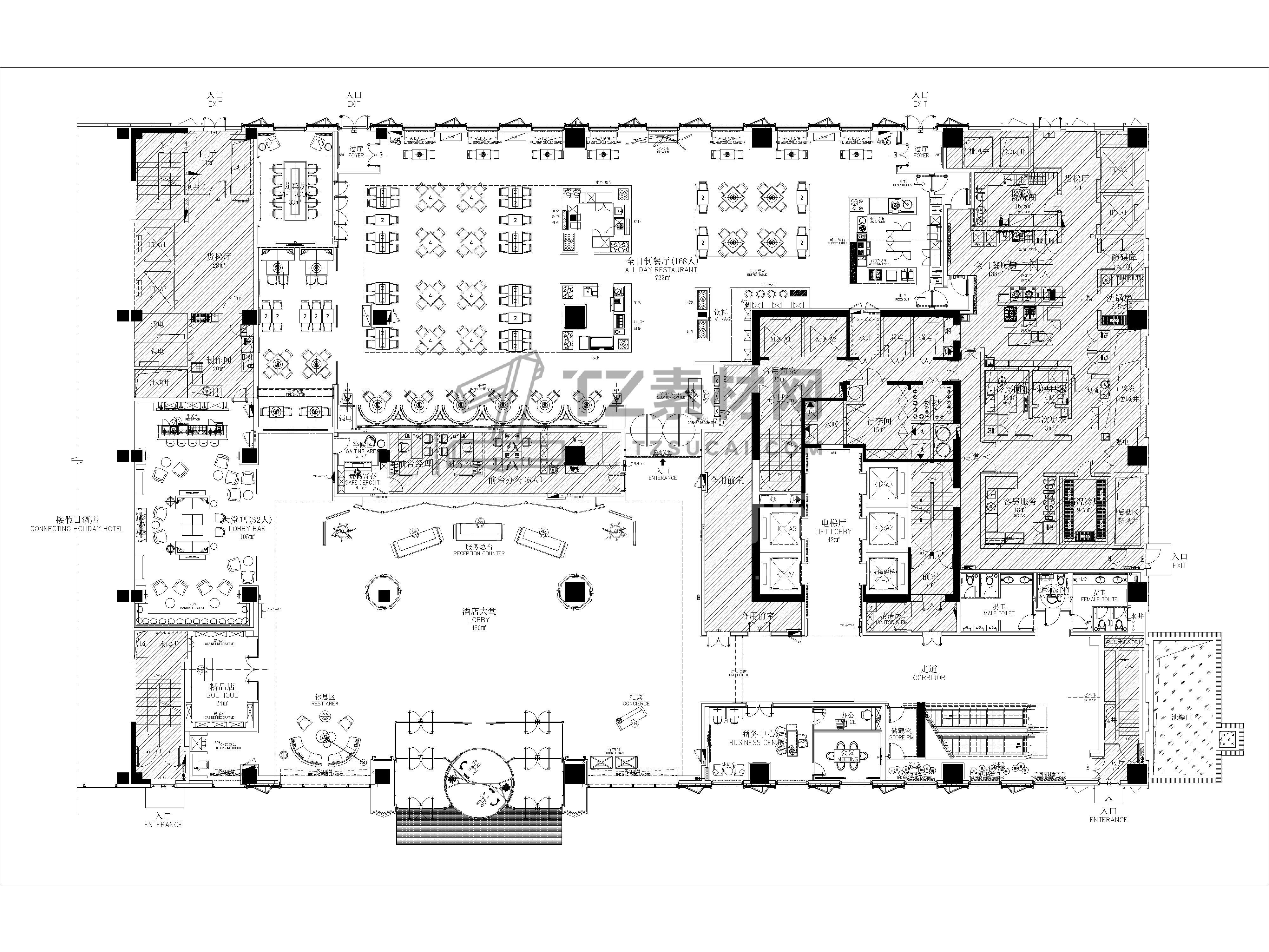 13套酒店大堂CAD平面图施工图 CAD酒店大堂CAD酒店客房CAD五星级酒店CAD商务酒店CAD
