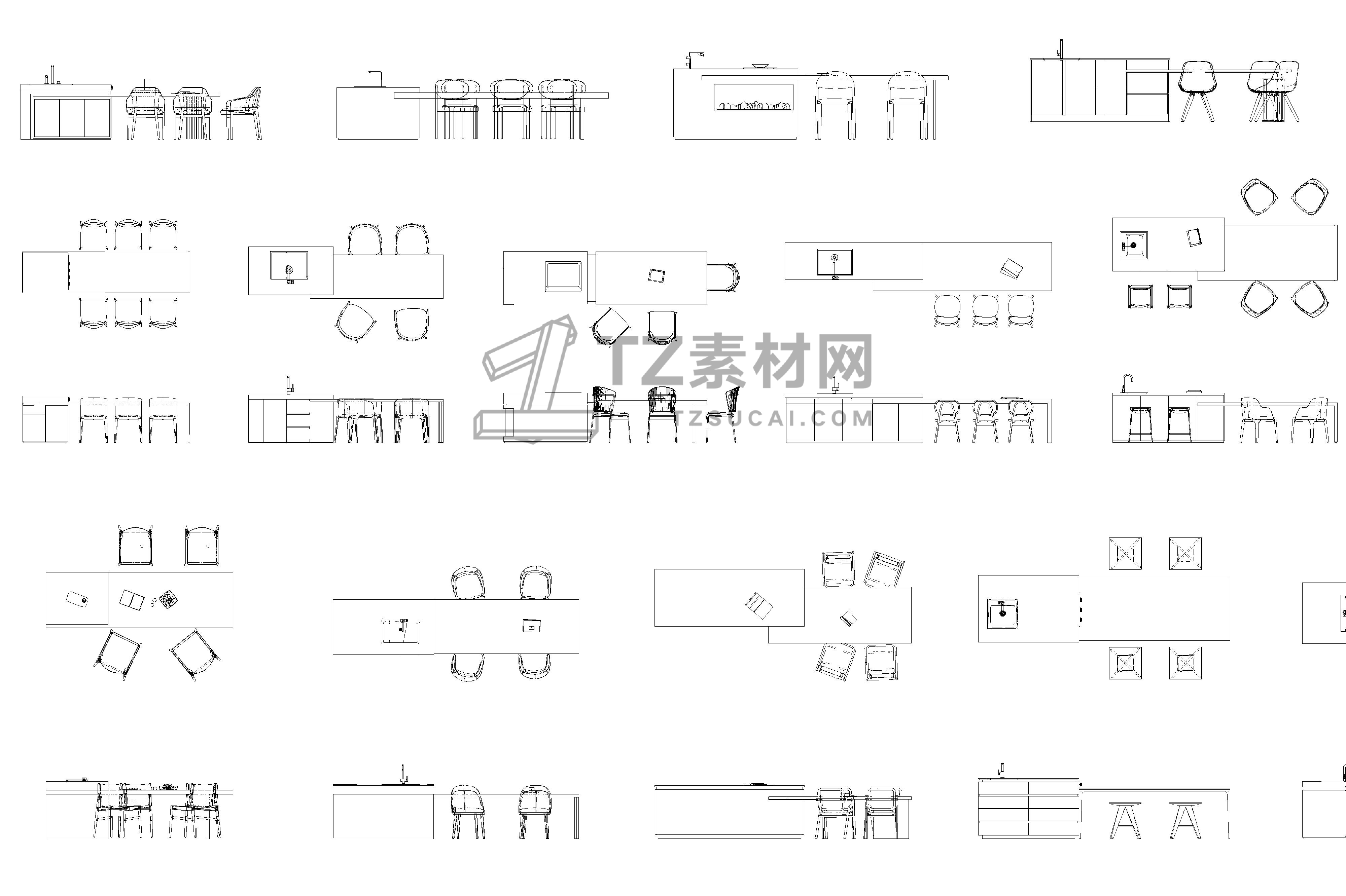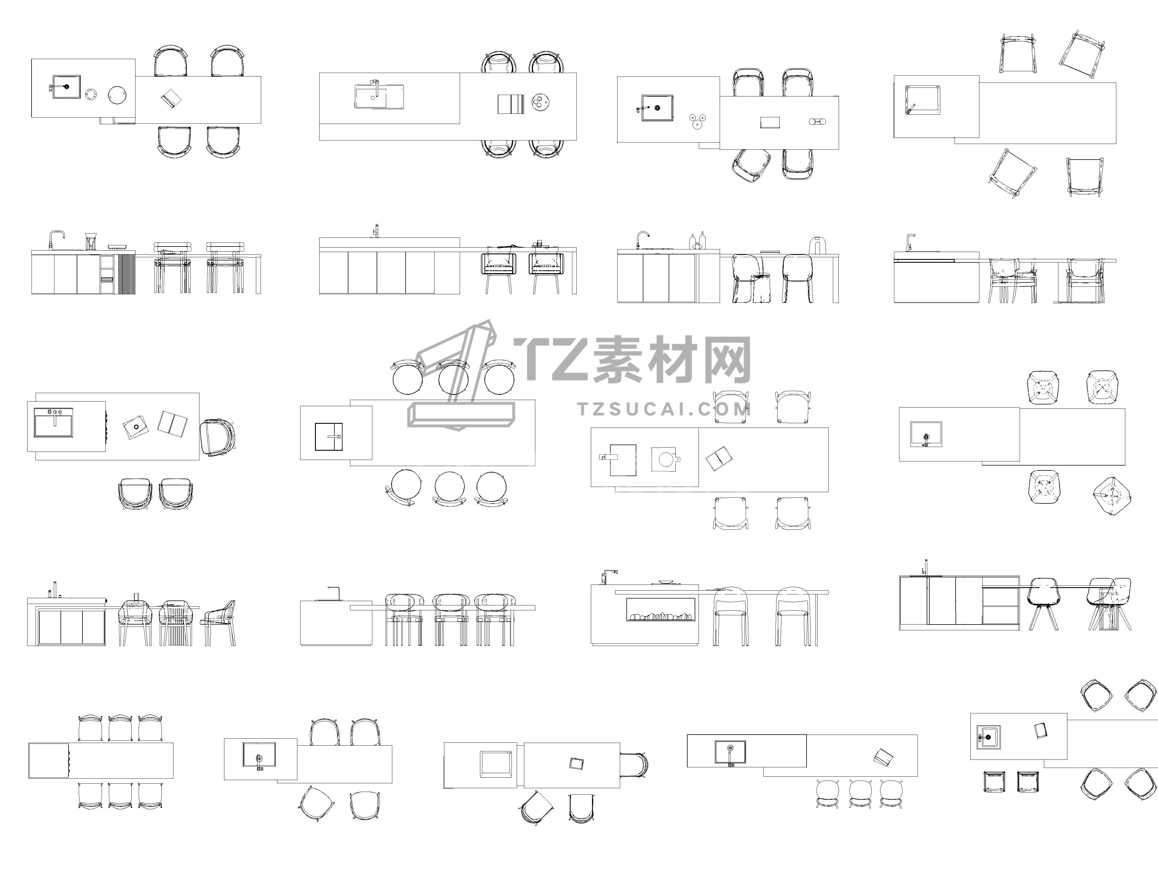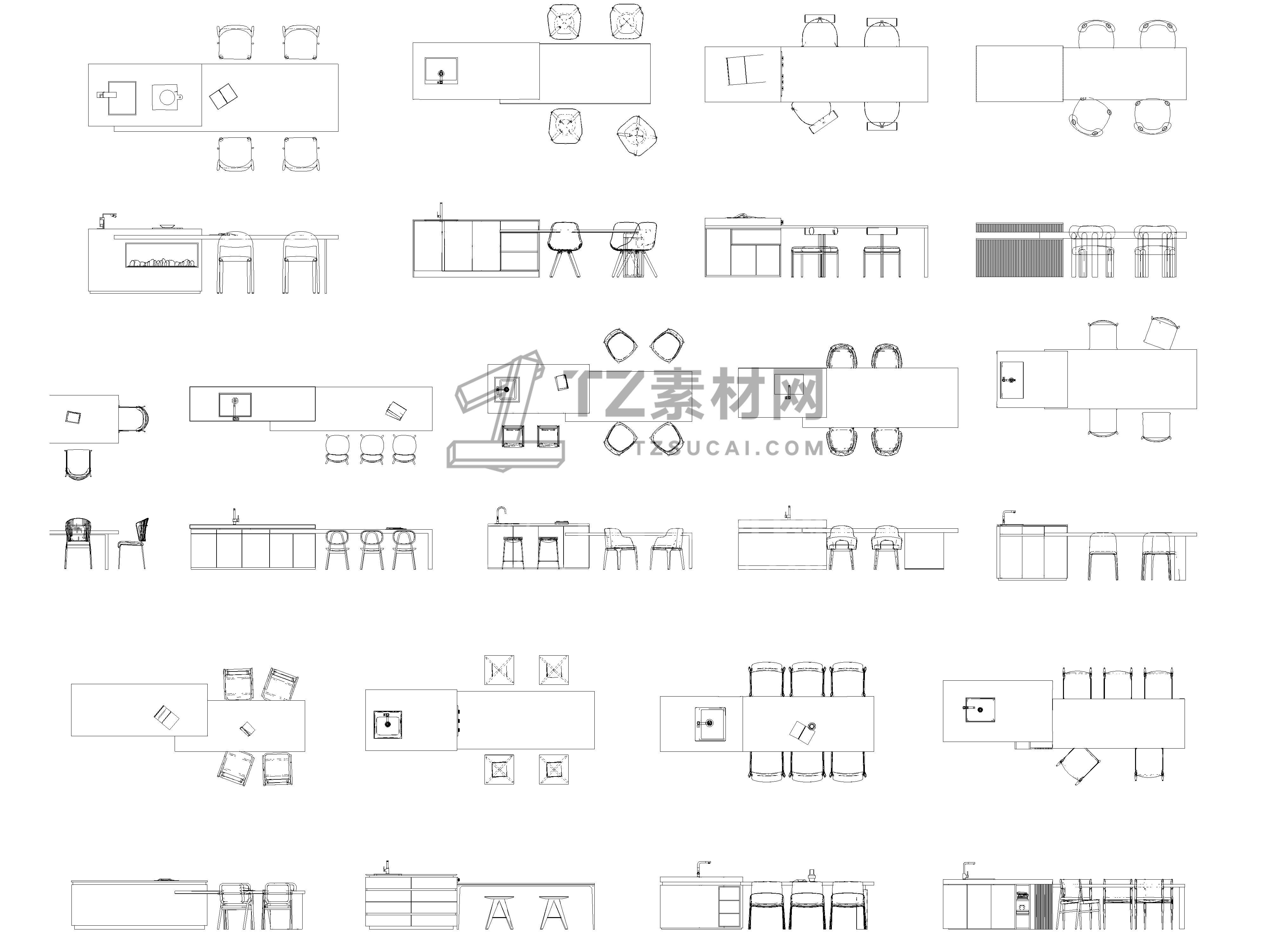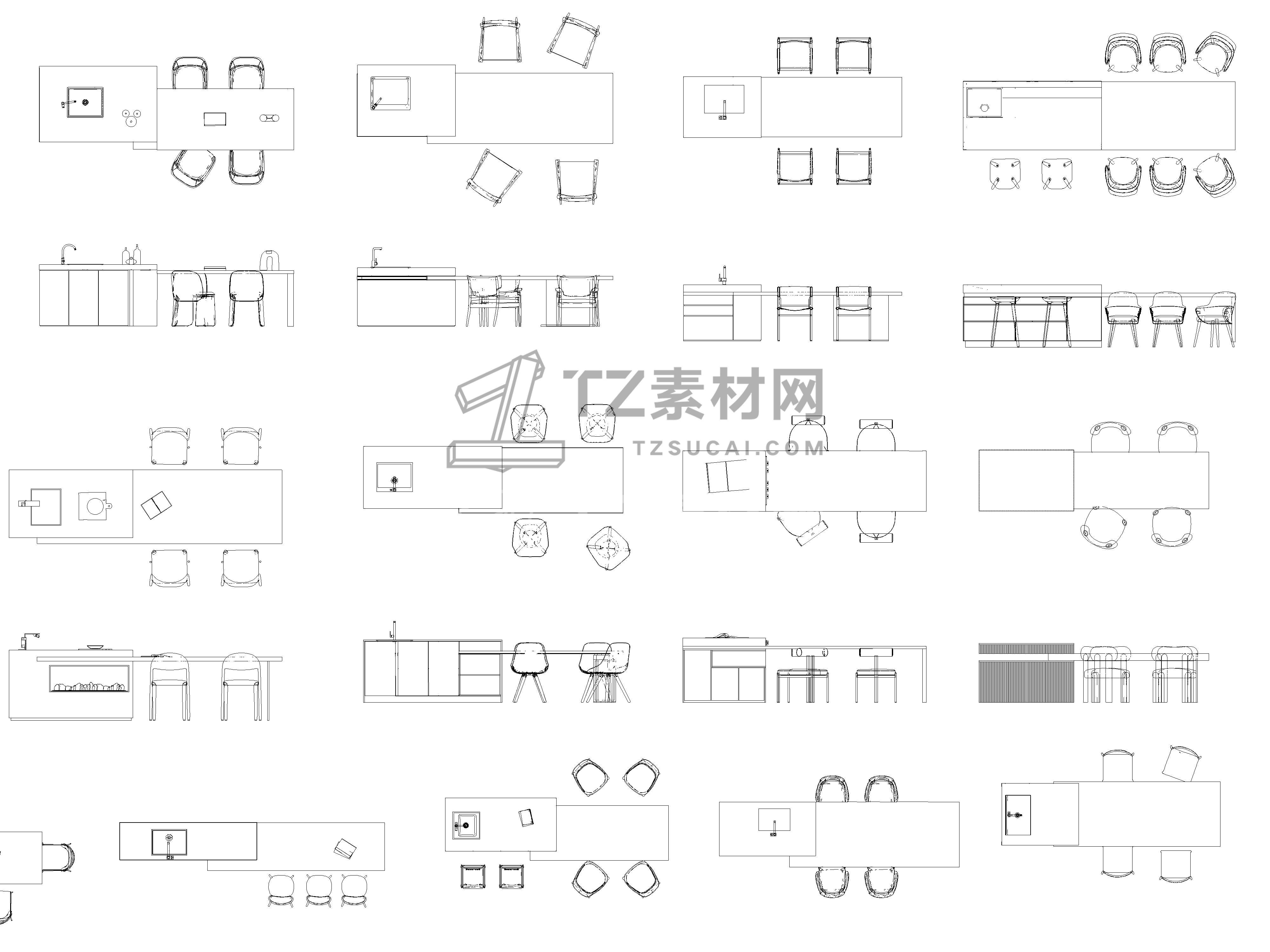 2025年最新西厨吧台中岛台CAD图库 CAD西厨吧台CAD中岛台CAD餐桌椅CAD家具CAD图库