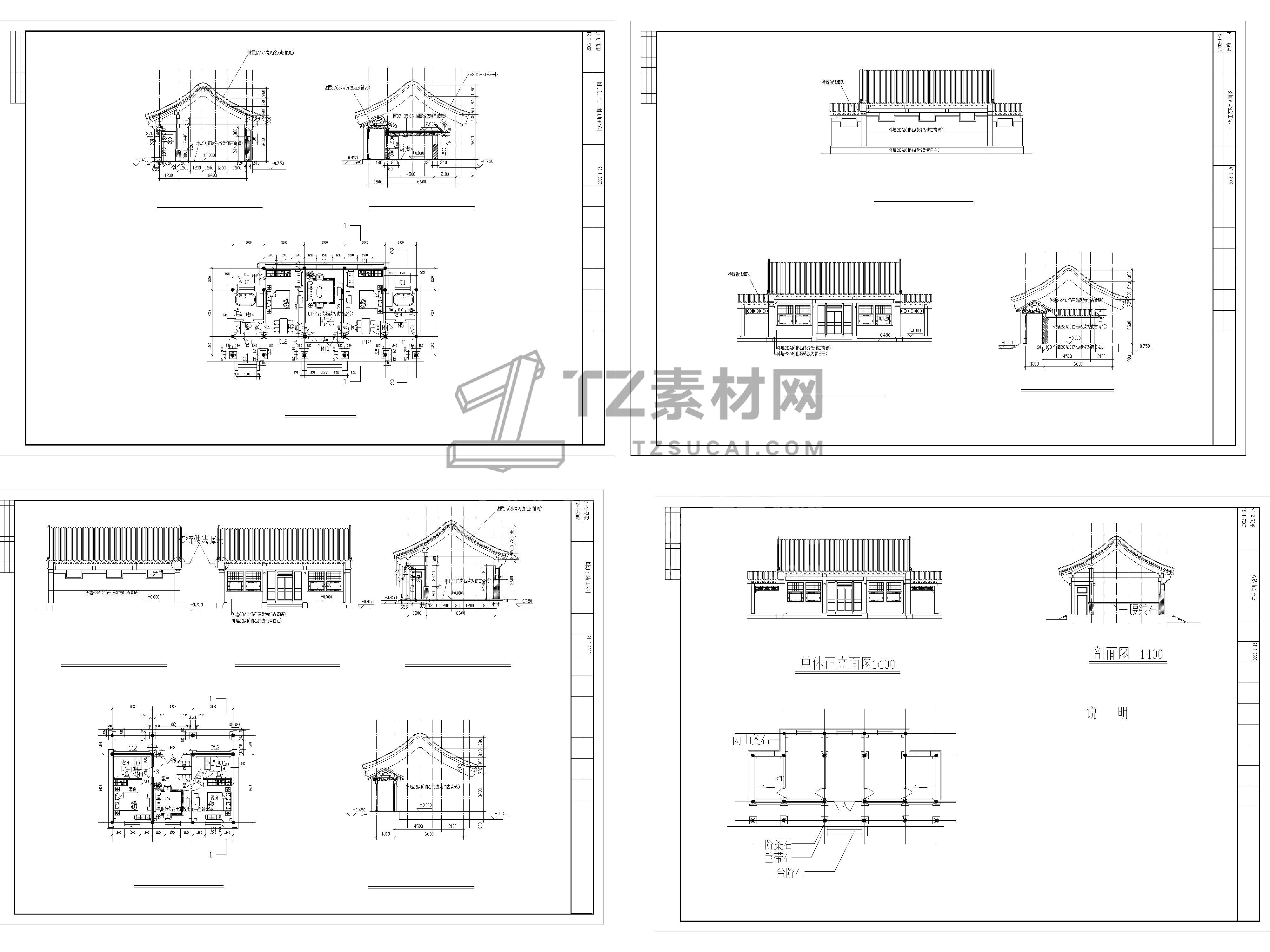 74套新中式徽派四合院建筑CAD施工图CAD四合院CAD四合院建筑CAD自建房CAD乡村别墅CAD