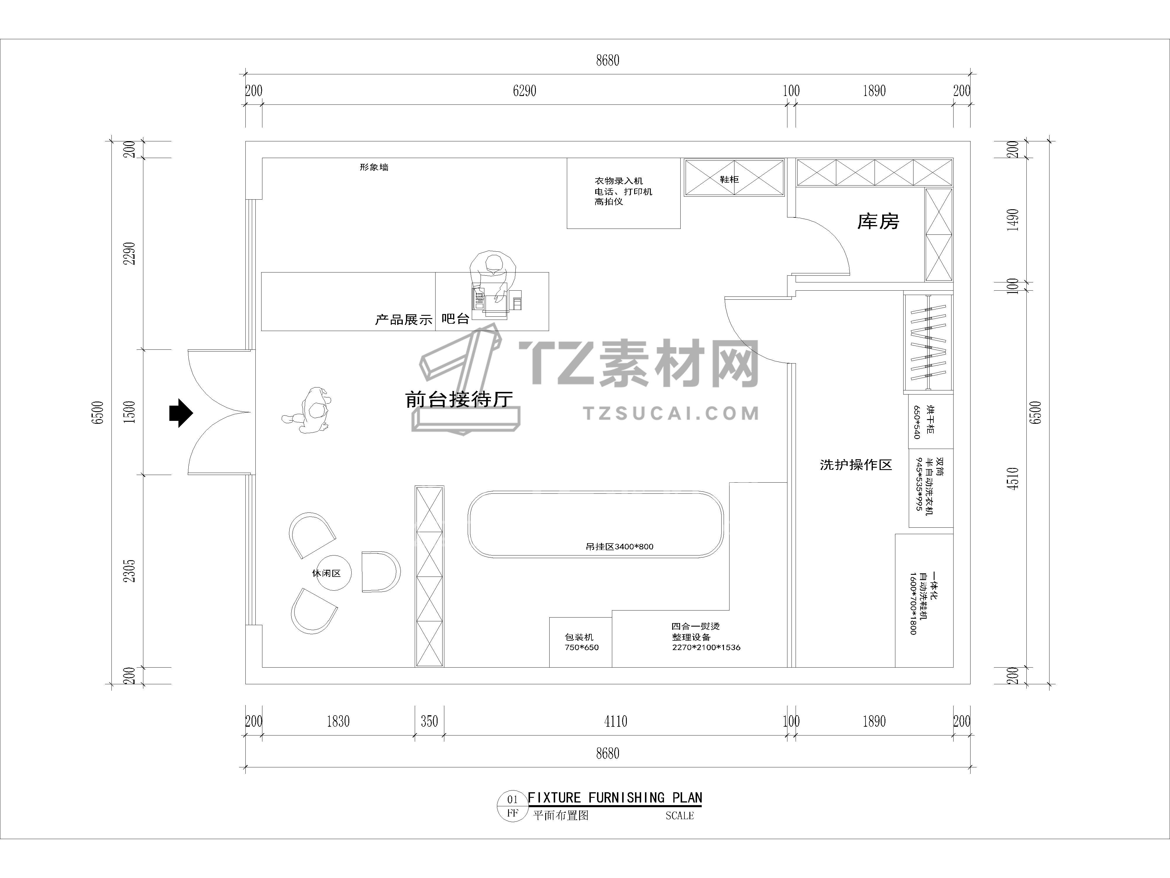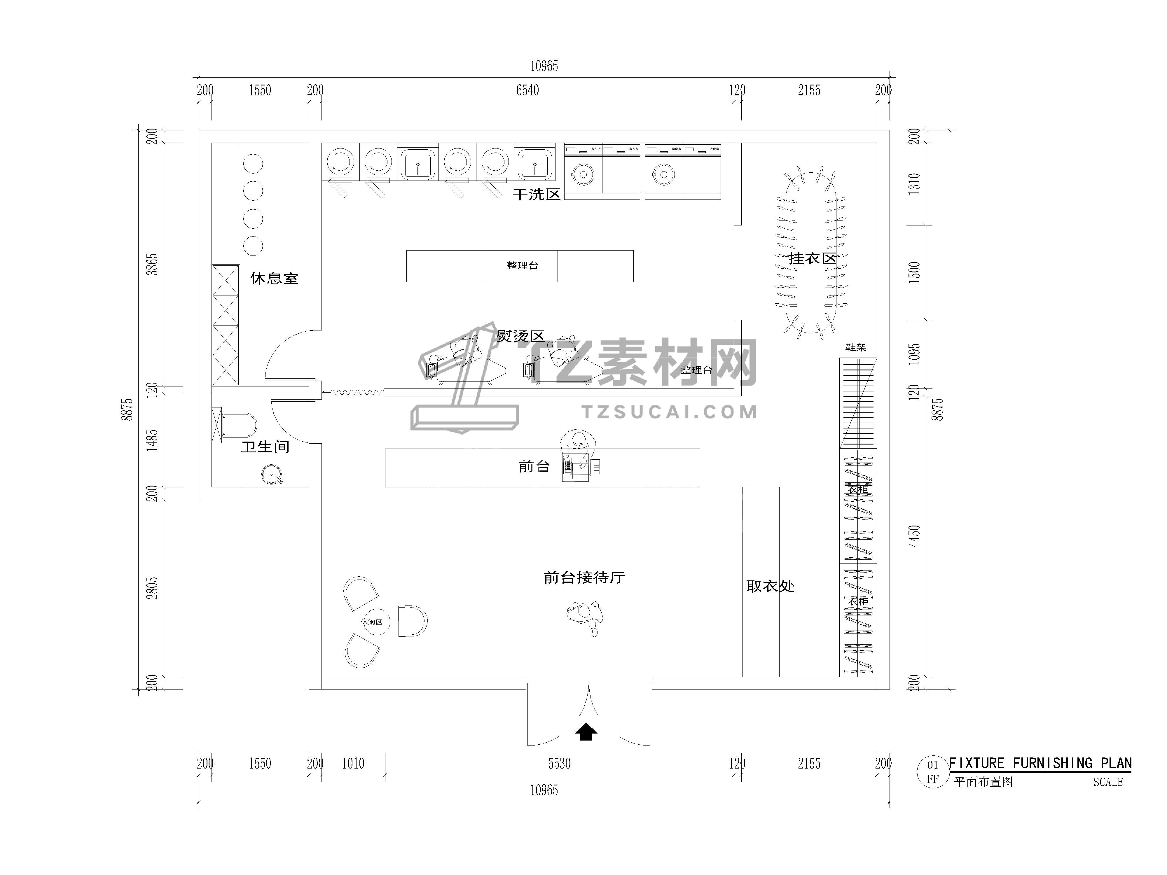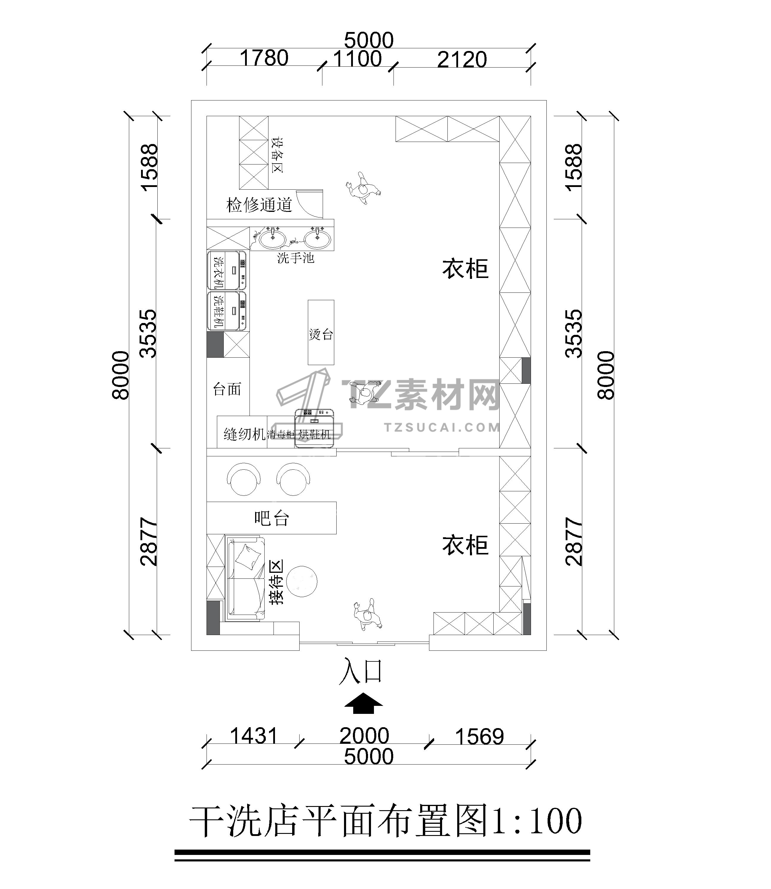 9套干洗店CAD平面布置图CAD干洗店CAD洗衣店CAD洗衣房CAD洗衣馆CAD图纸