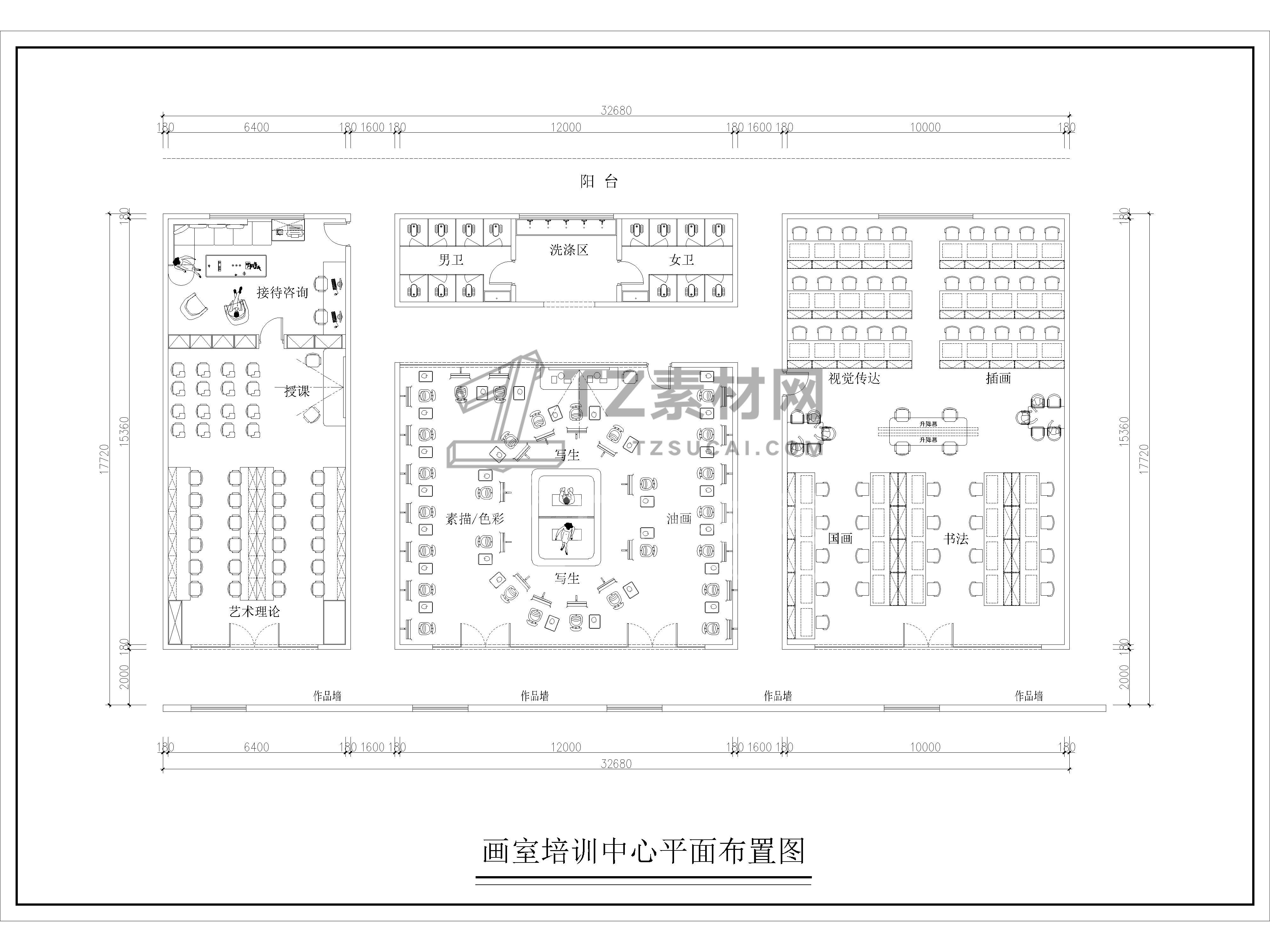 10套书法室美术室CAD书法室CAD美术室CAD绘画室CAD培训教室CAD书法教室CAD美术教室CAD