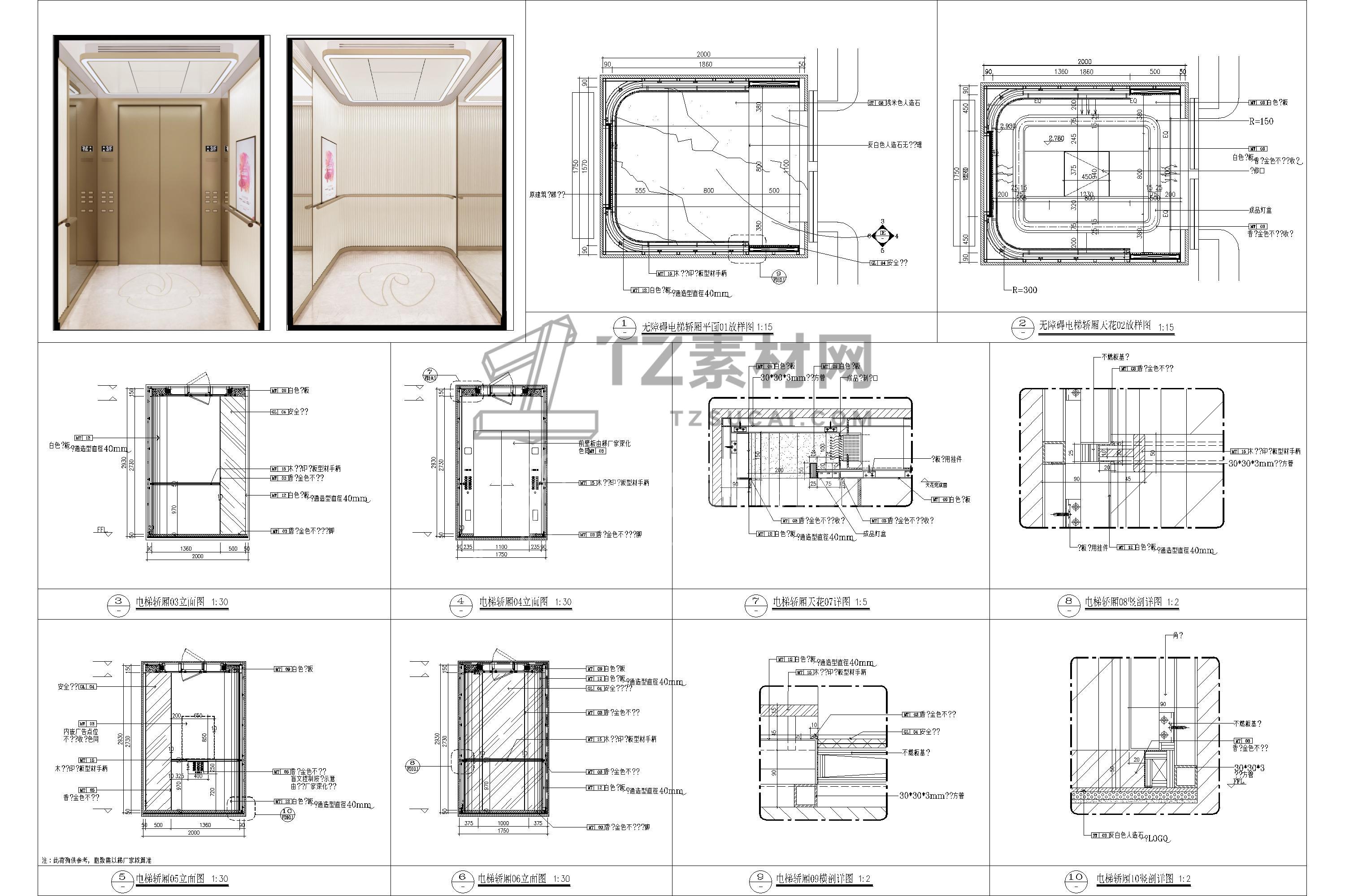 电梯厅CAD 电梯轿厢CAD 电梯CAD 电梯轿厢节点CAD 电梯厅节点CAD