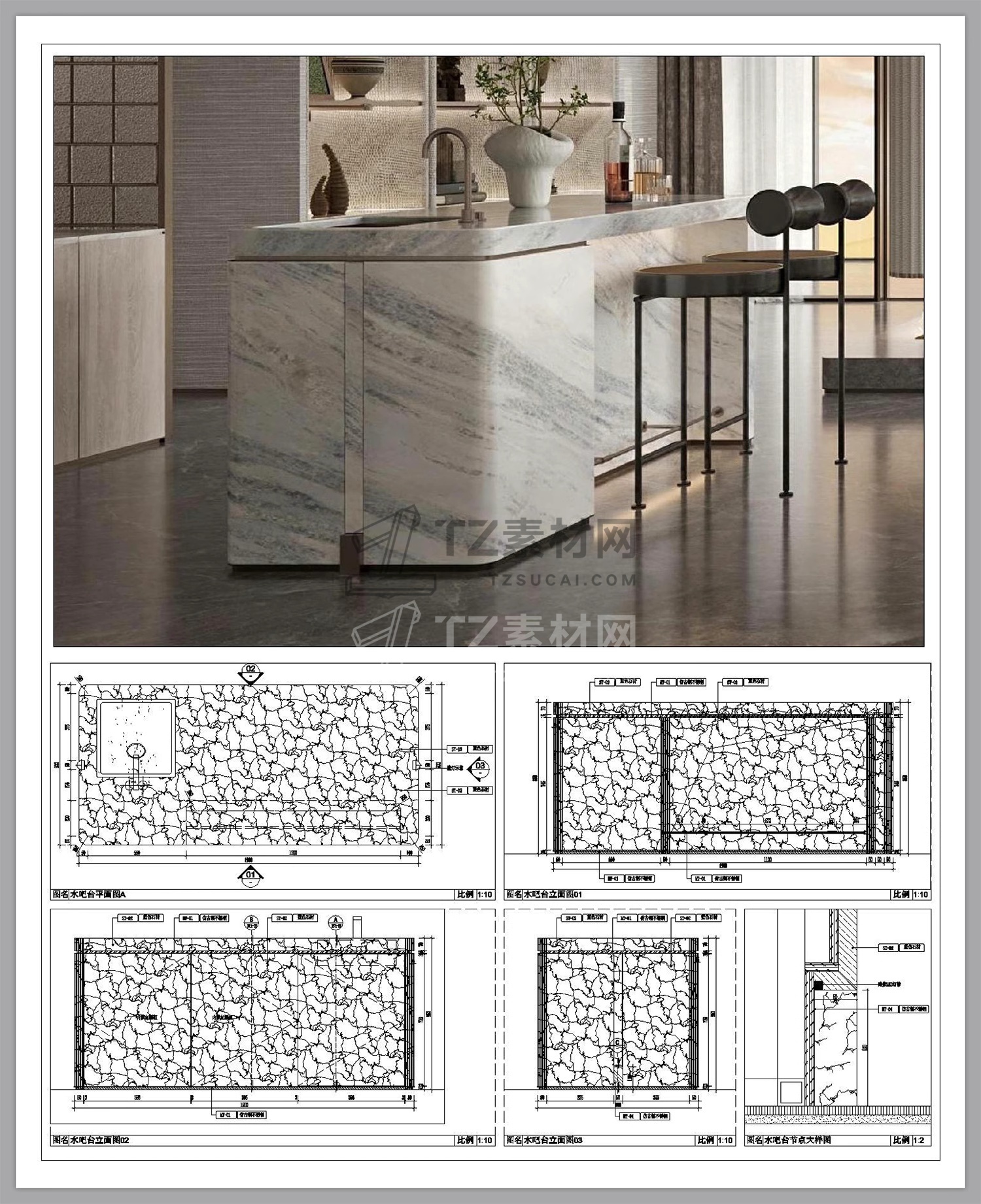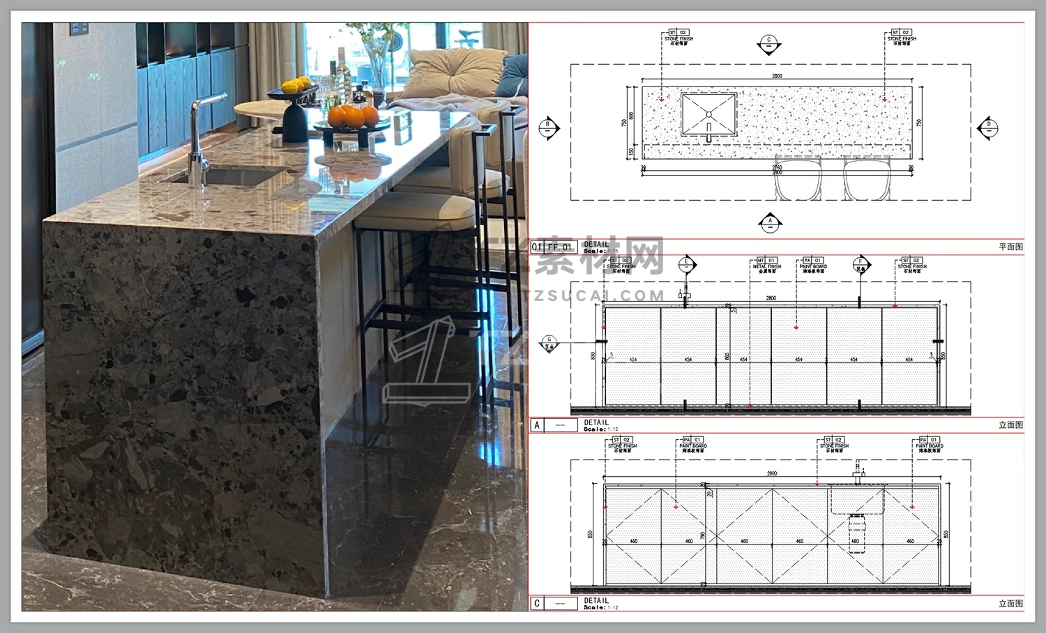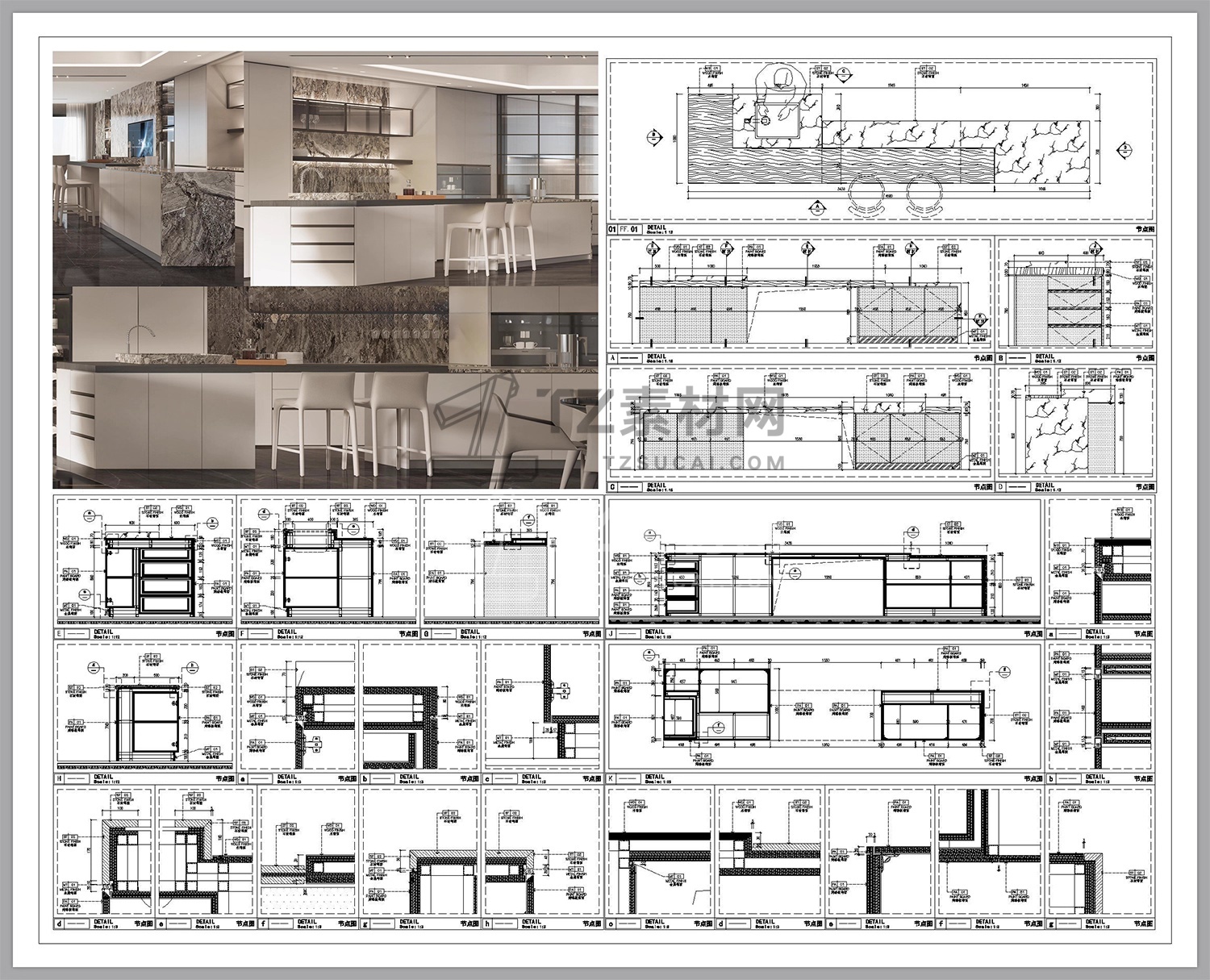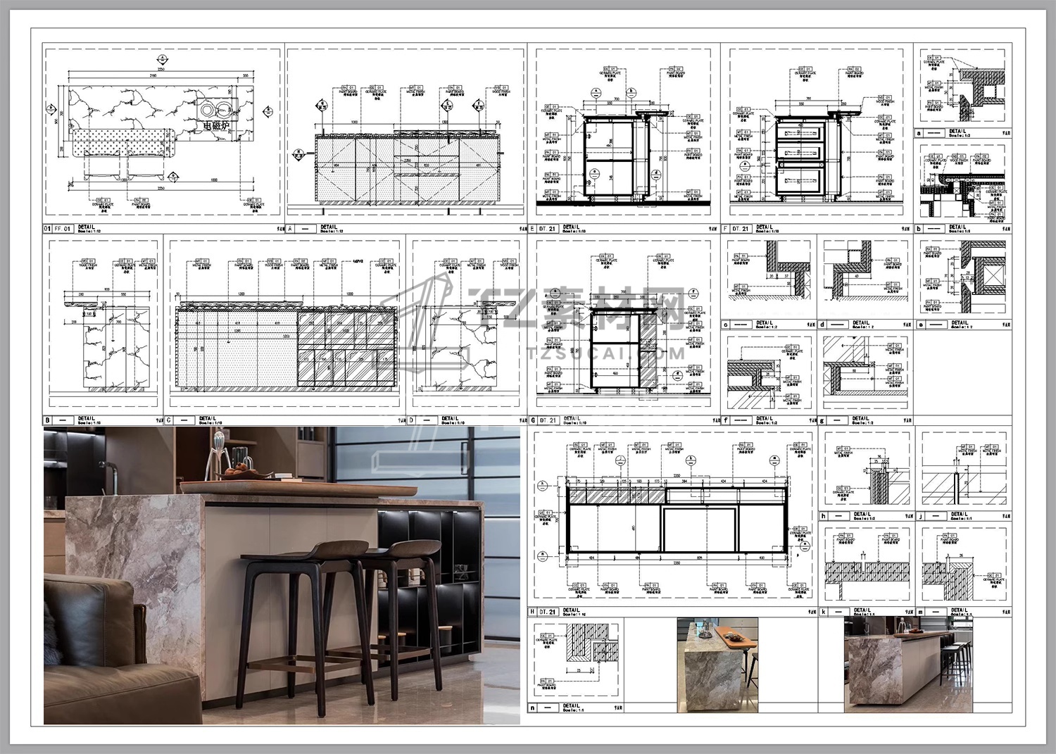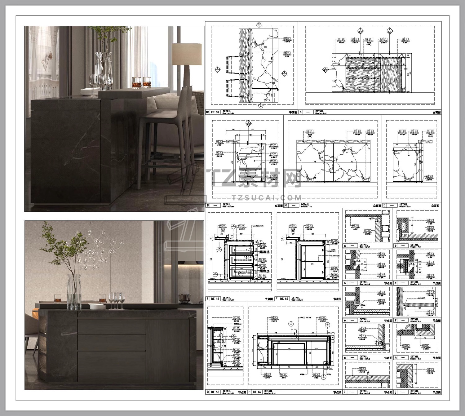 吧台节点CAD 岛台CAD 中岛台CAD 开放式厨房CAD 水吧台CAD 餐厅CAD