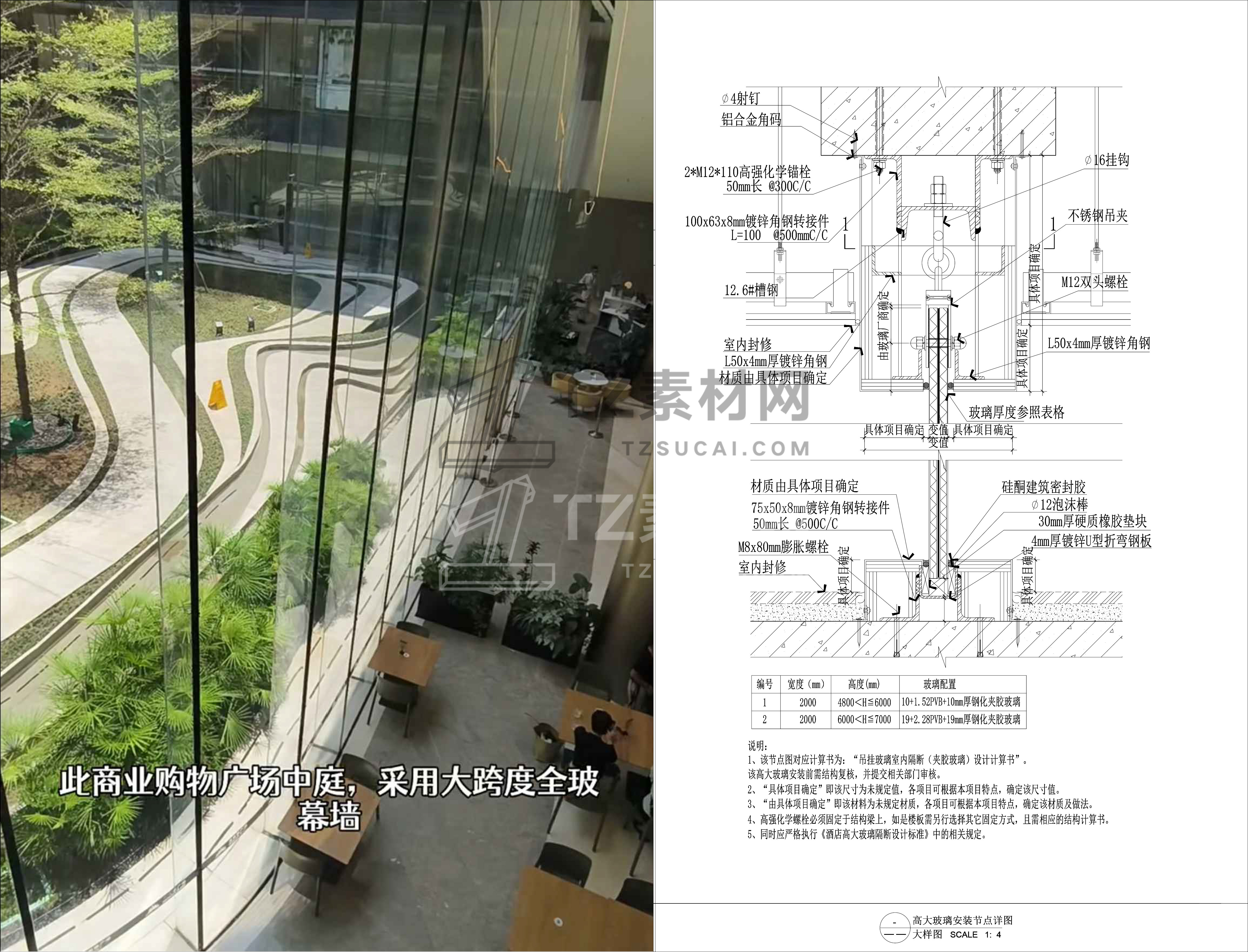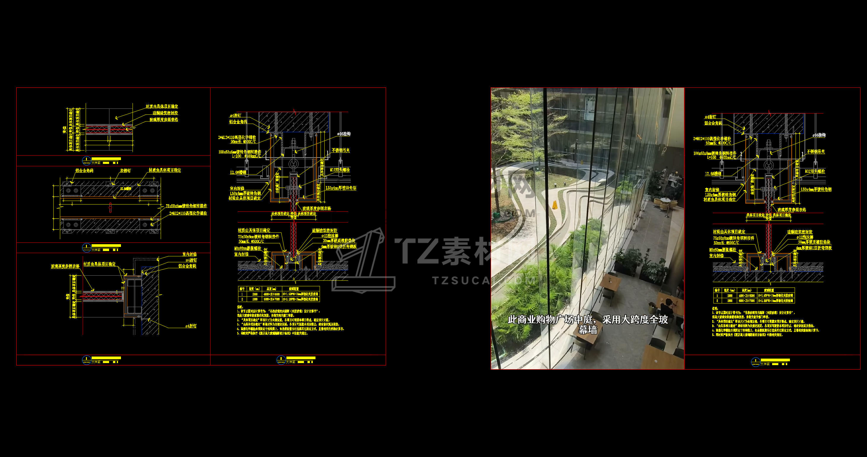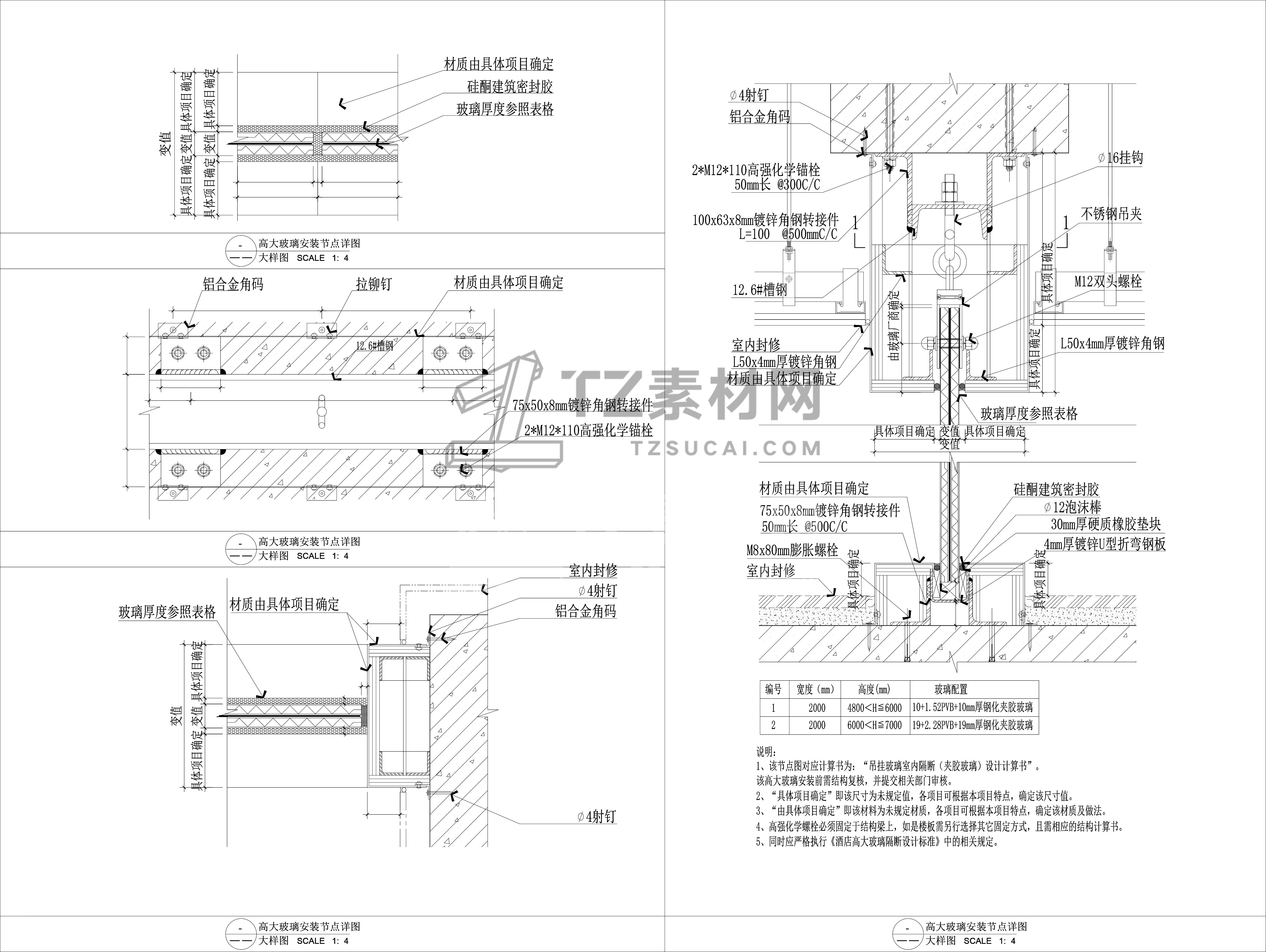 大型玻璃隔断安装节点