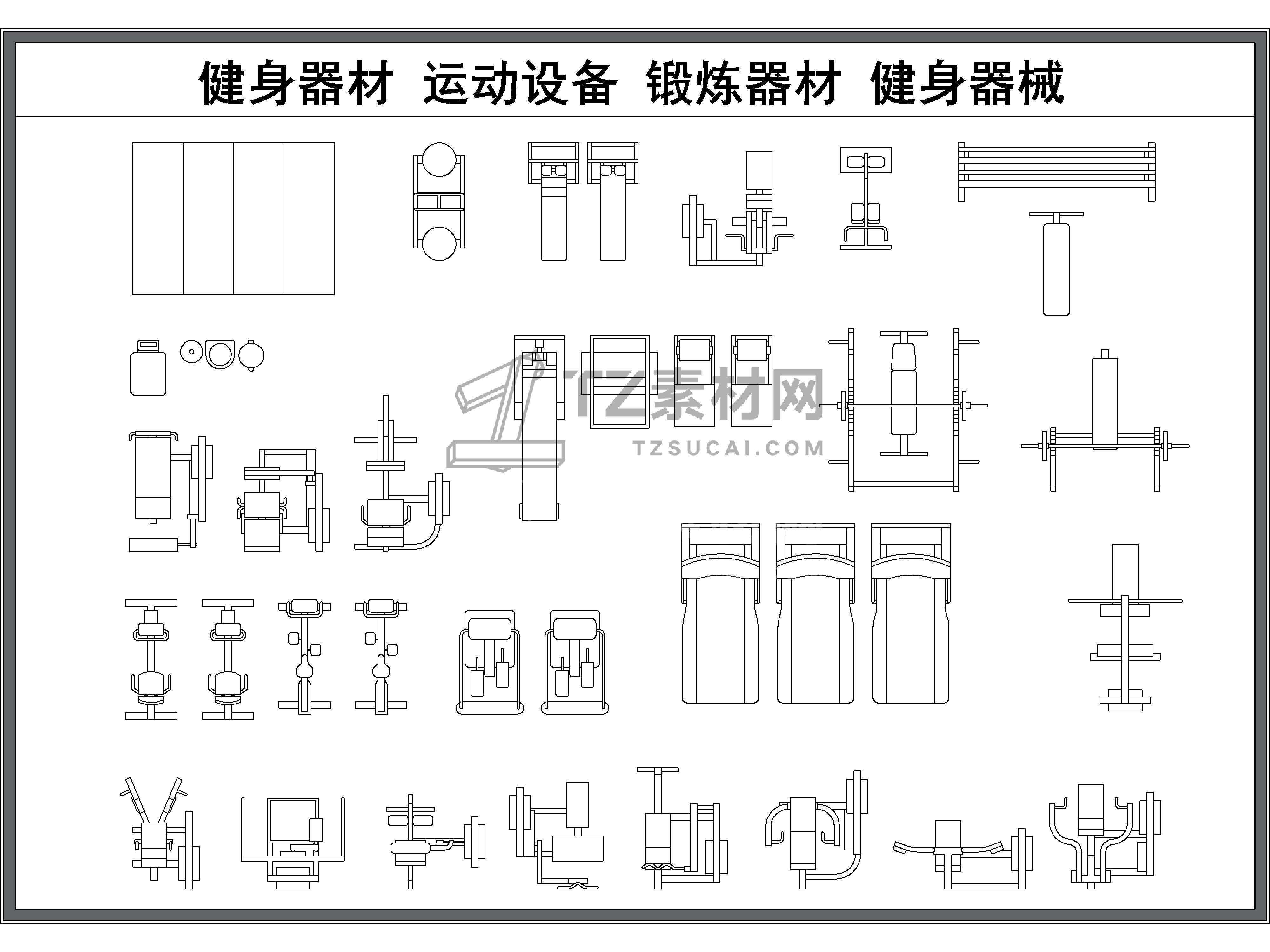 2026年最新超全健身器材CAD图库CAD健身器材CAD运动器材CAD运动器械CAD健身器械CAD
