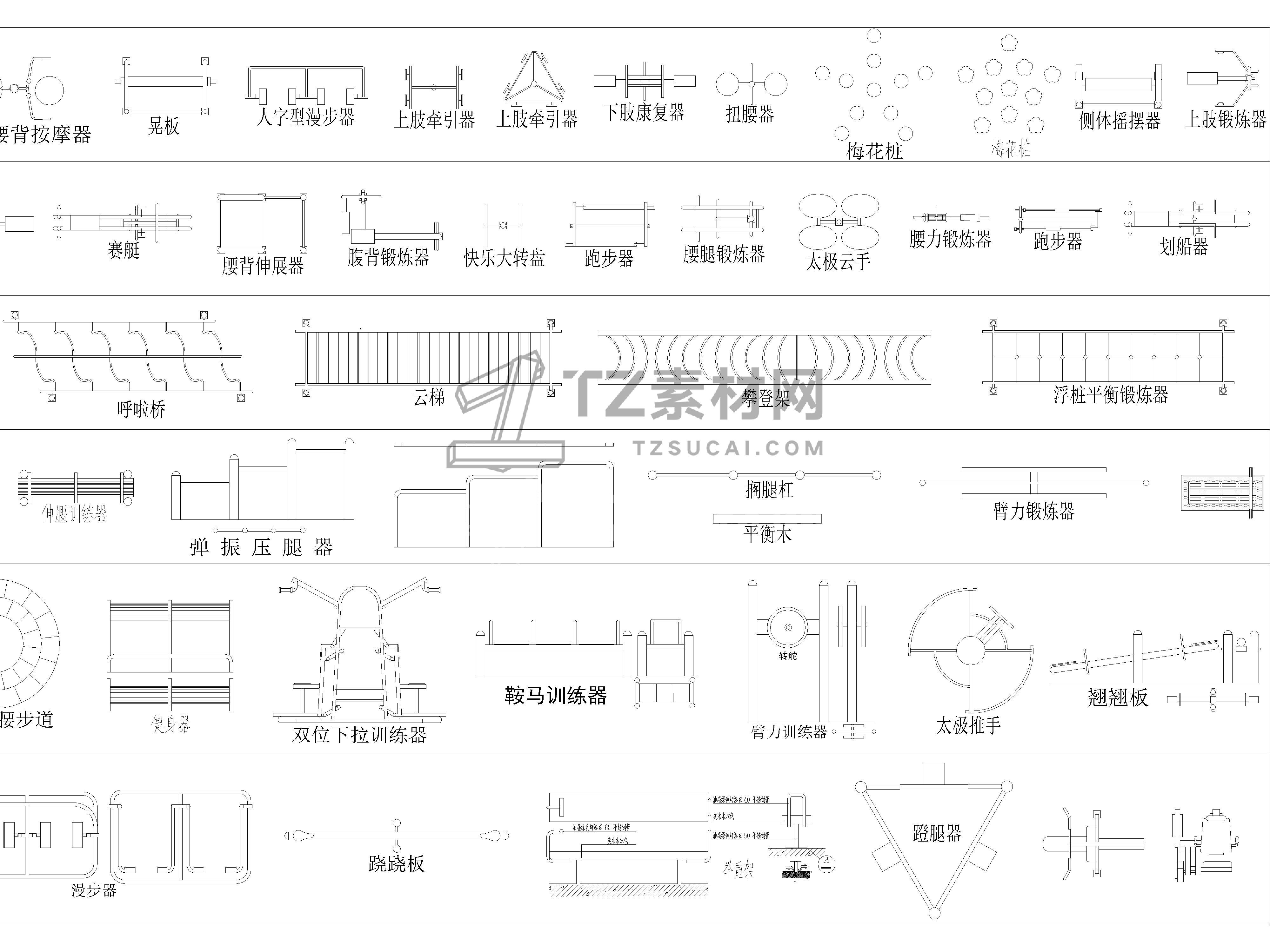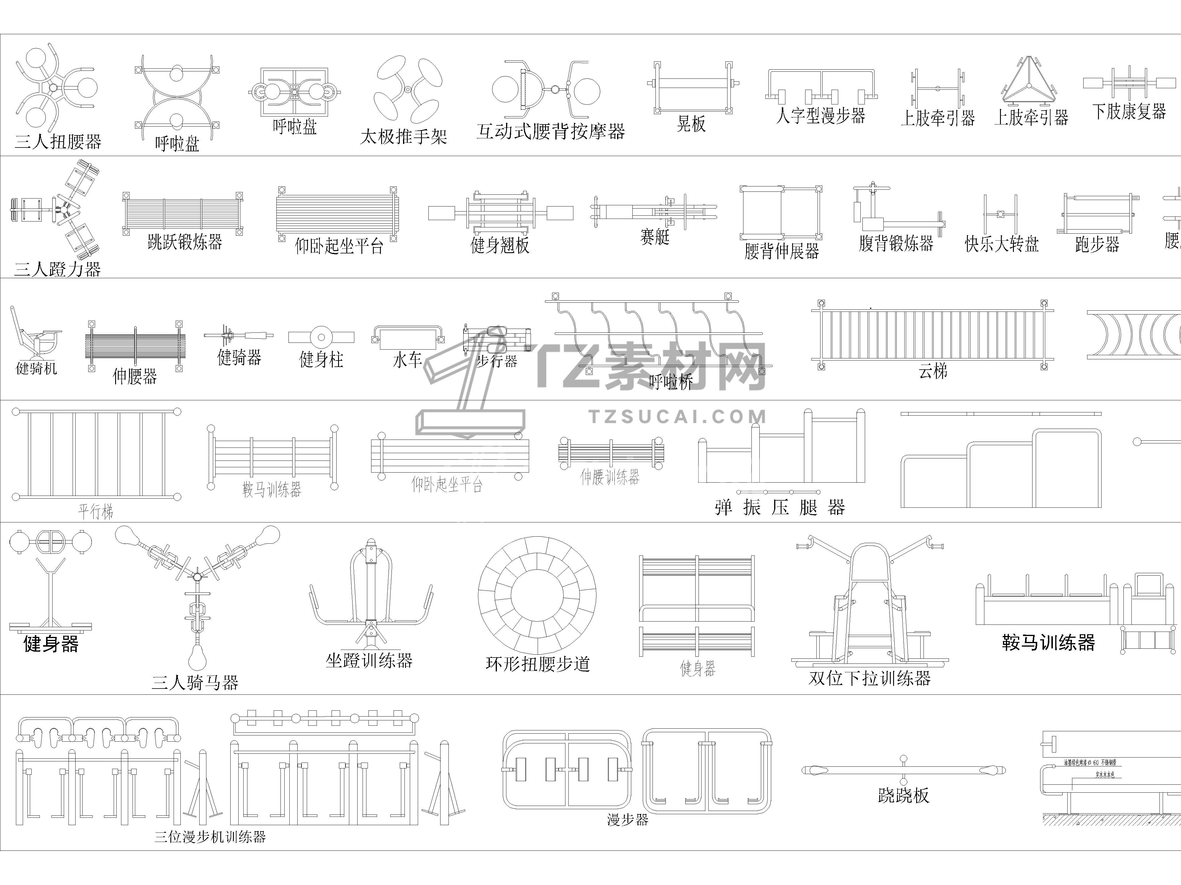 2026年最新户外健身器材CAD图库CAD户外健身器材CAD运动器材CAD健身器械CAD健身设备CAD