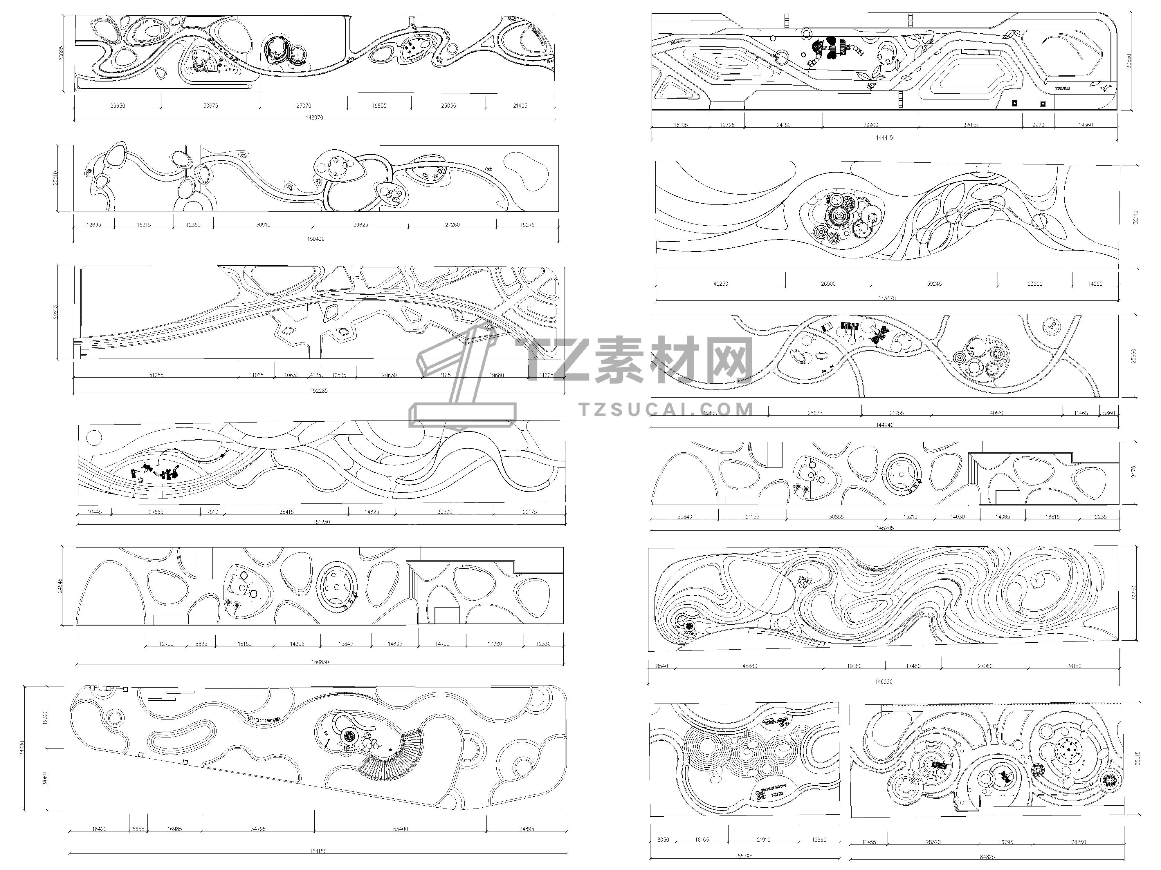 13套线性带状口袋公园CAD带状公园CAD口袋公园CAD线性公园CAD公园景观CAD街角公园CAD